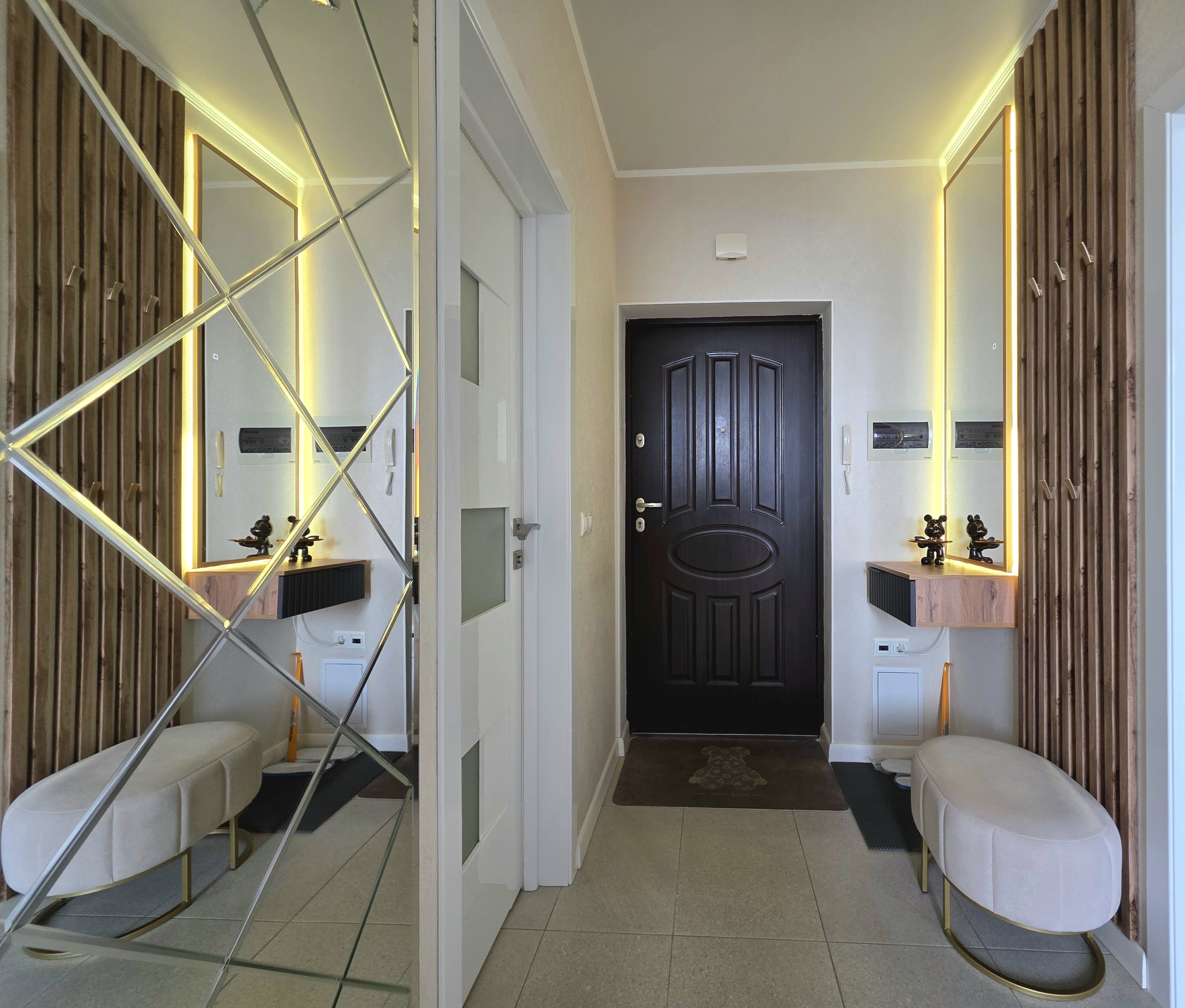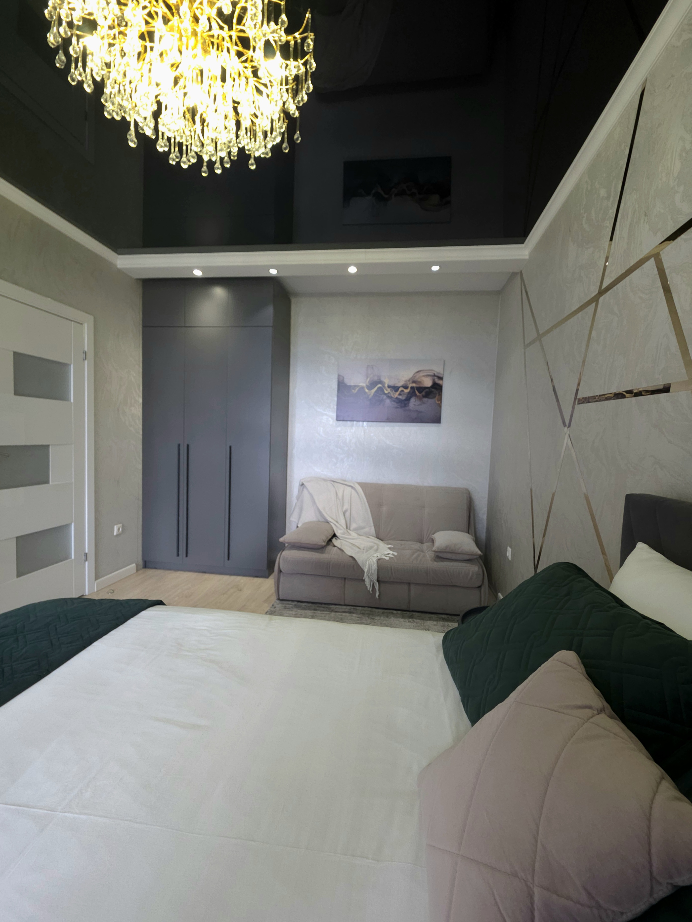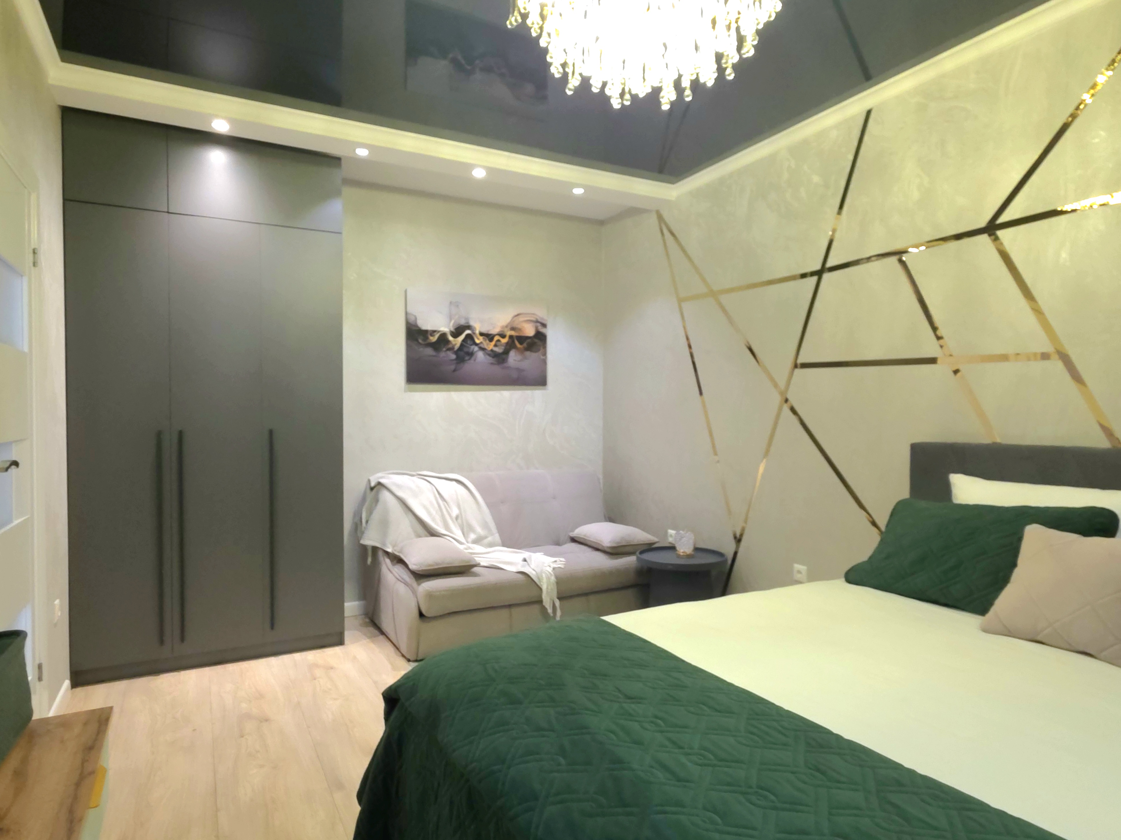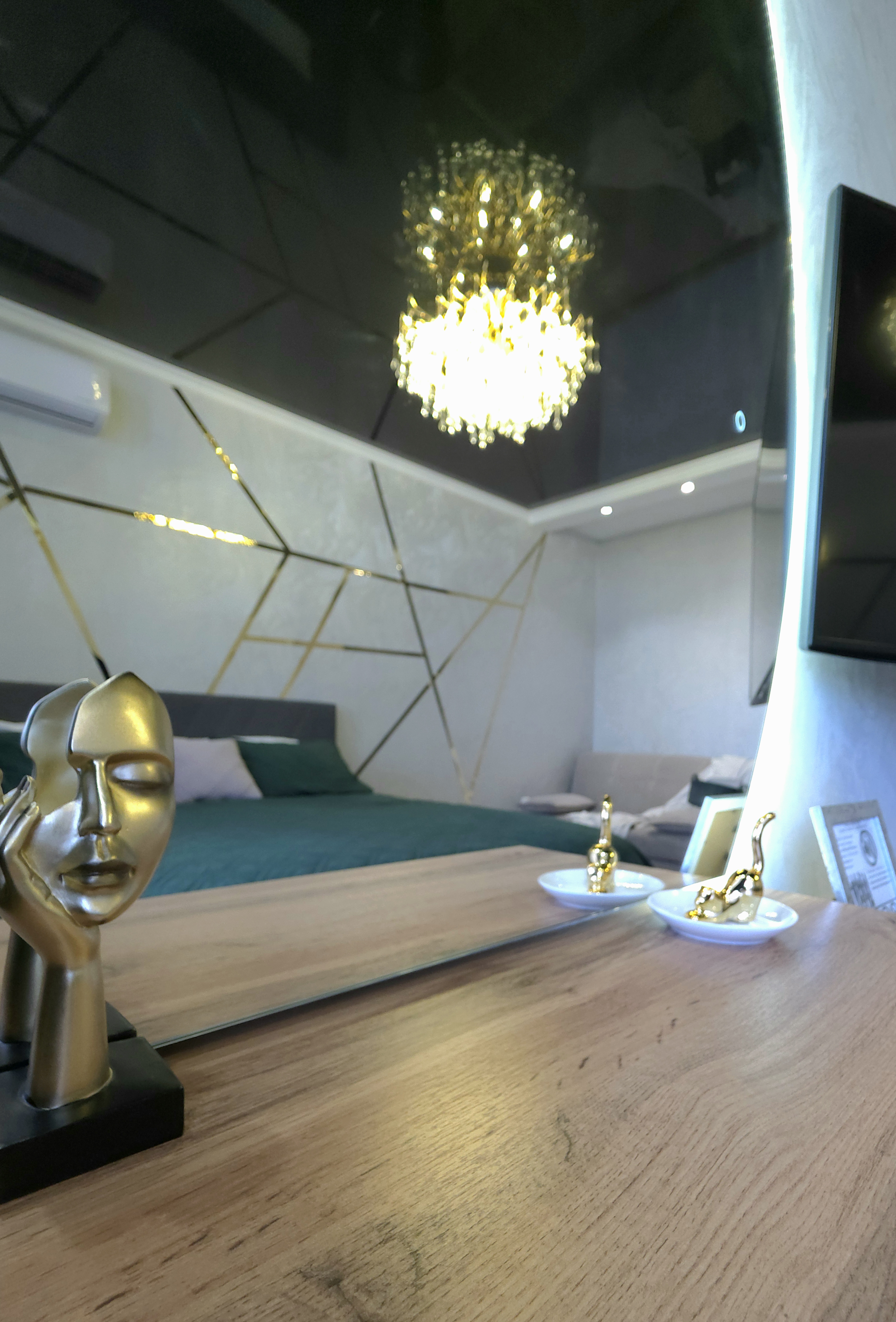 2-х местный номер с кухней, полностью укомплектованный современной бытовой техникой: есть кондиционер, газовая плита, холодильник, посудомоечная машина, микроволновая печь, стиральная машина, утюг, фен, тостер и плазменный телевизор со smаrt-ТВ. Также в номере имеется меблированный балкон, а из окон открываются красивые виды на город.