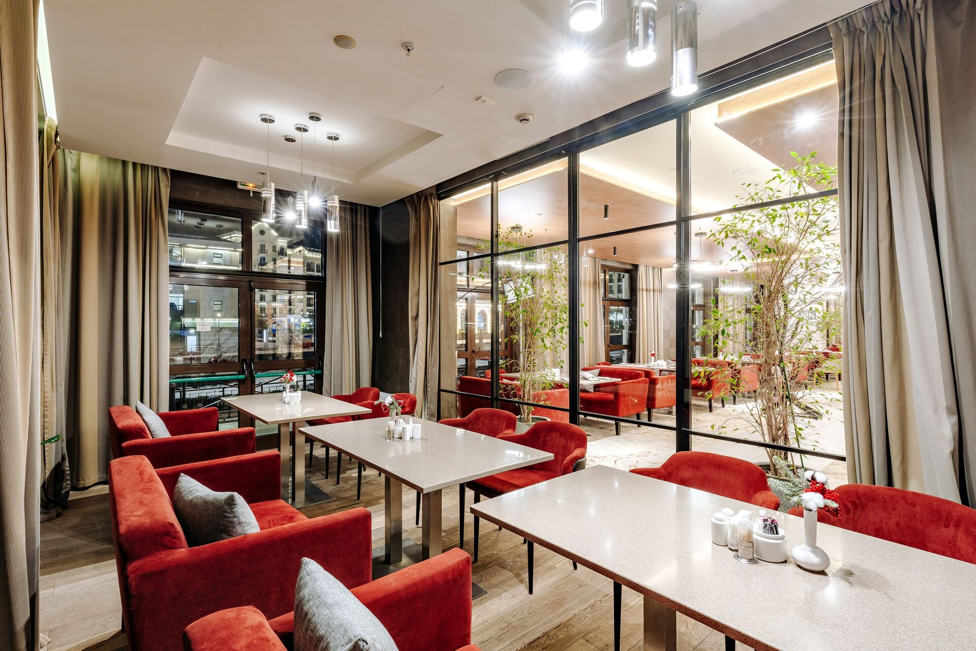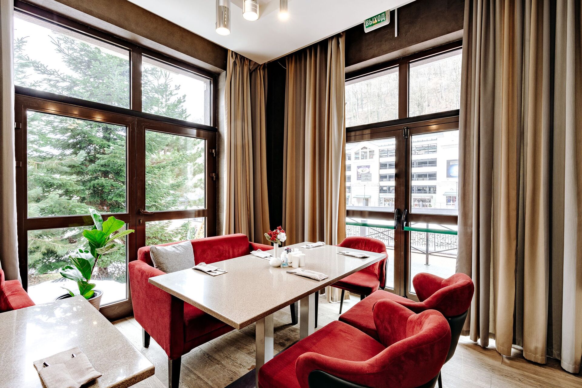 На территории отеля можно посетить ресторан русской, европейской и средиземноморской кухни «Сиблис», а на летней террасе с видом на реку Мзымта можно насладиться меню из сезонных продуктов. В лобби-баре для гостей готовят ароматный кофе и другие вкусные напитки.