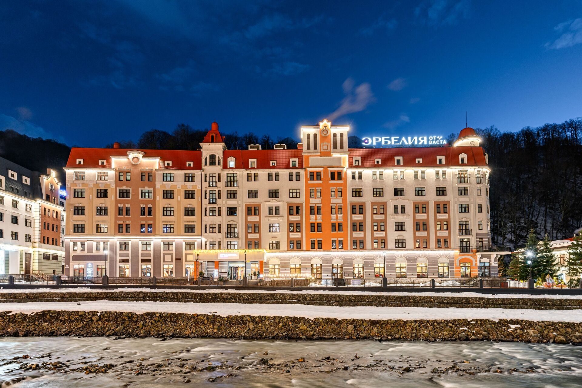Отель «Erbelia by Vasta» располагается на курорте Роза Хутор, на берегу живописной реки. Всего в 5 минутах ходьбы от гостиницы функционируют горнолыжные подъемники «Тироль» и «Стрела». В 1 км от отеля находятся центр санного спорта и биатлонный комплекс «Лаура».