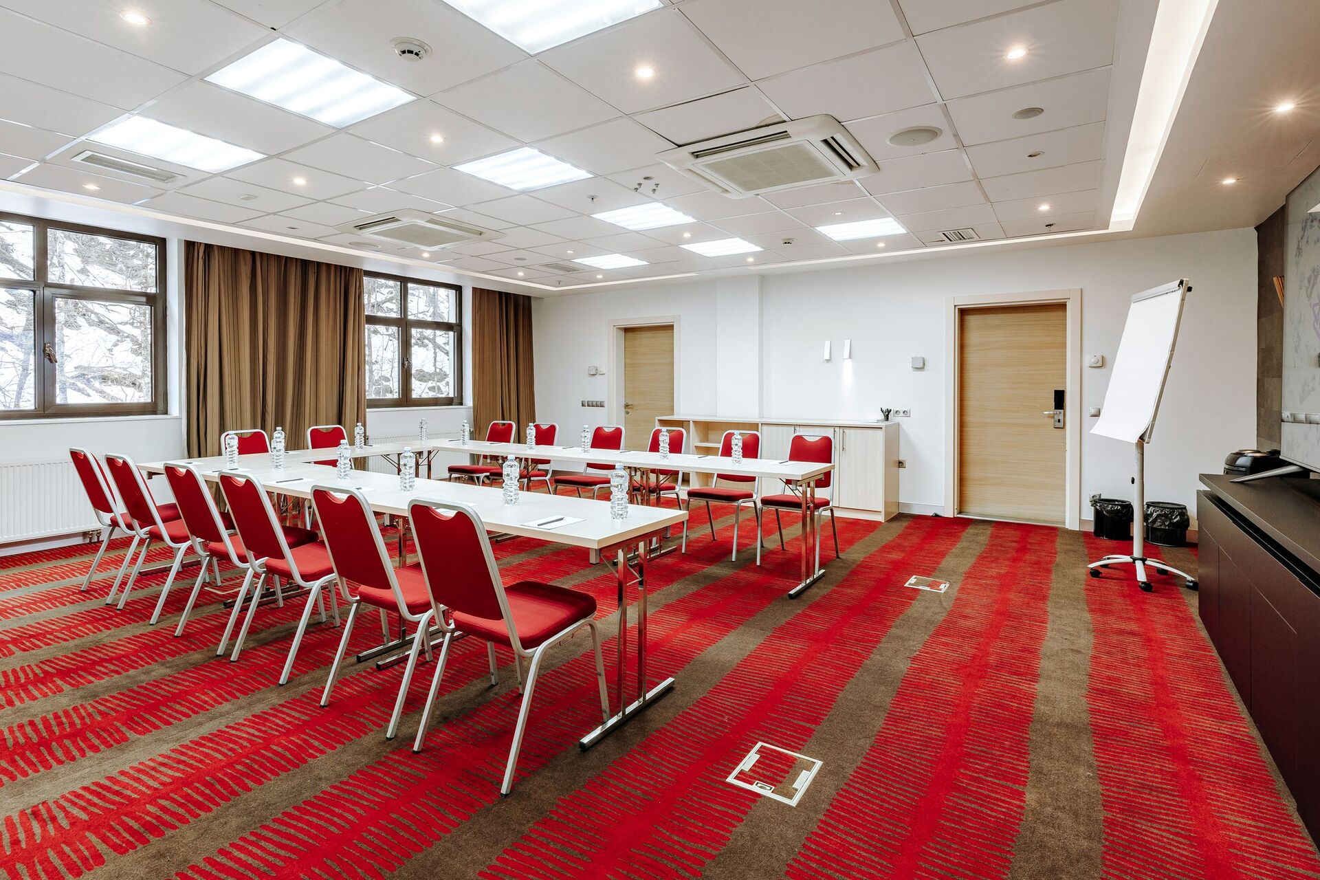 - Конференц-зал Санкт-Мориц. Тип: конференц-зал. Мест: 40-70 (в зависимости от рассадки).
