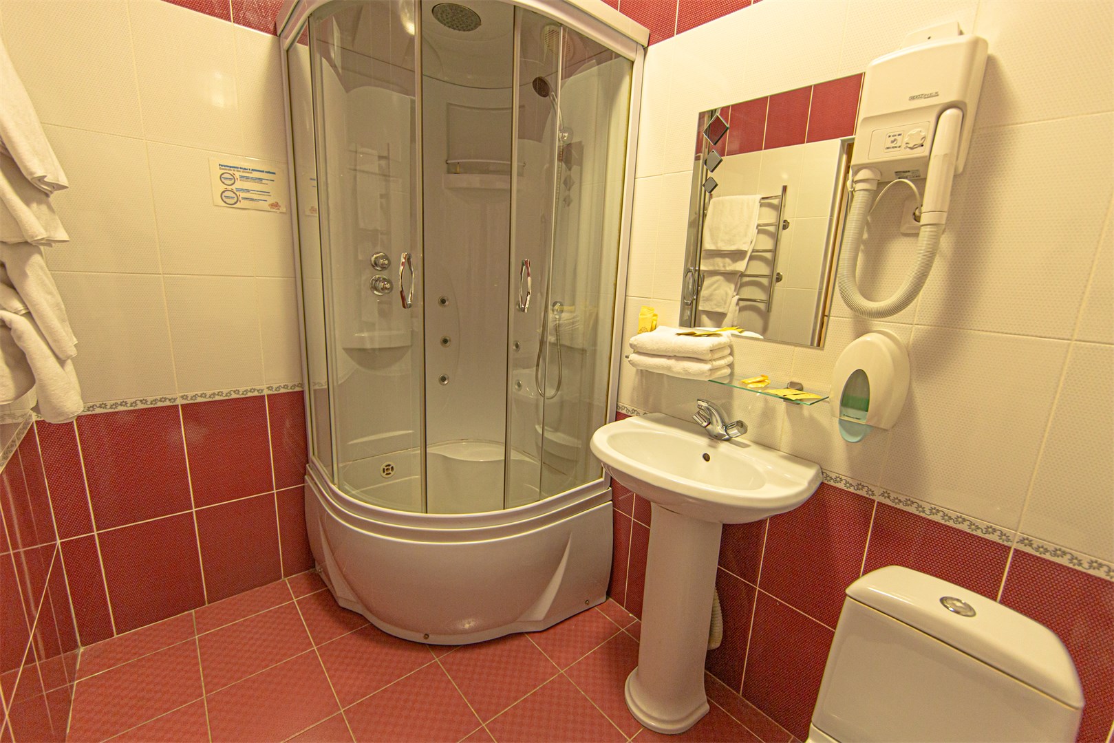 с душем: ; тапочки: ; туалетные принадлежности: ;