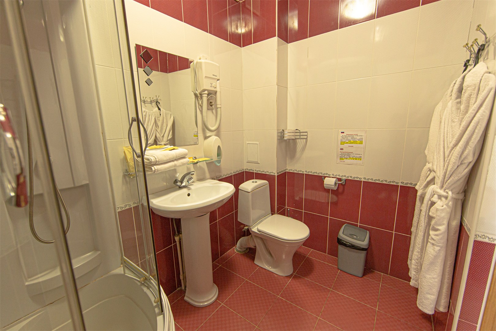 с душевой кабиной: ; тапочки: ; туалетные принадлежности: ; фен: ; халат: ;