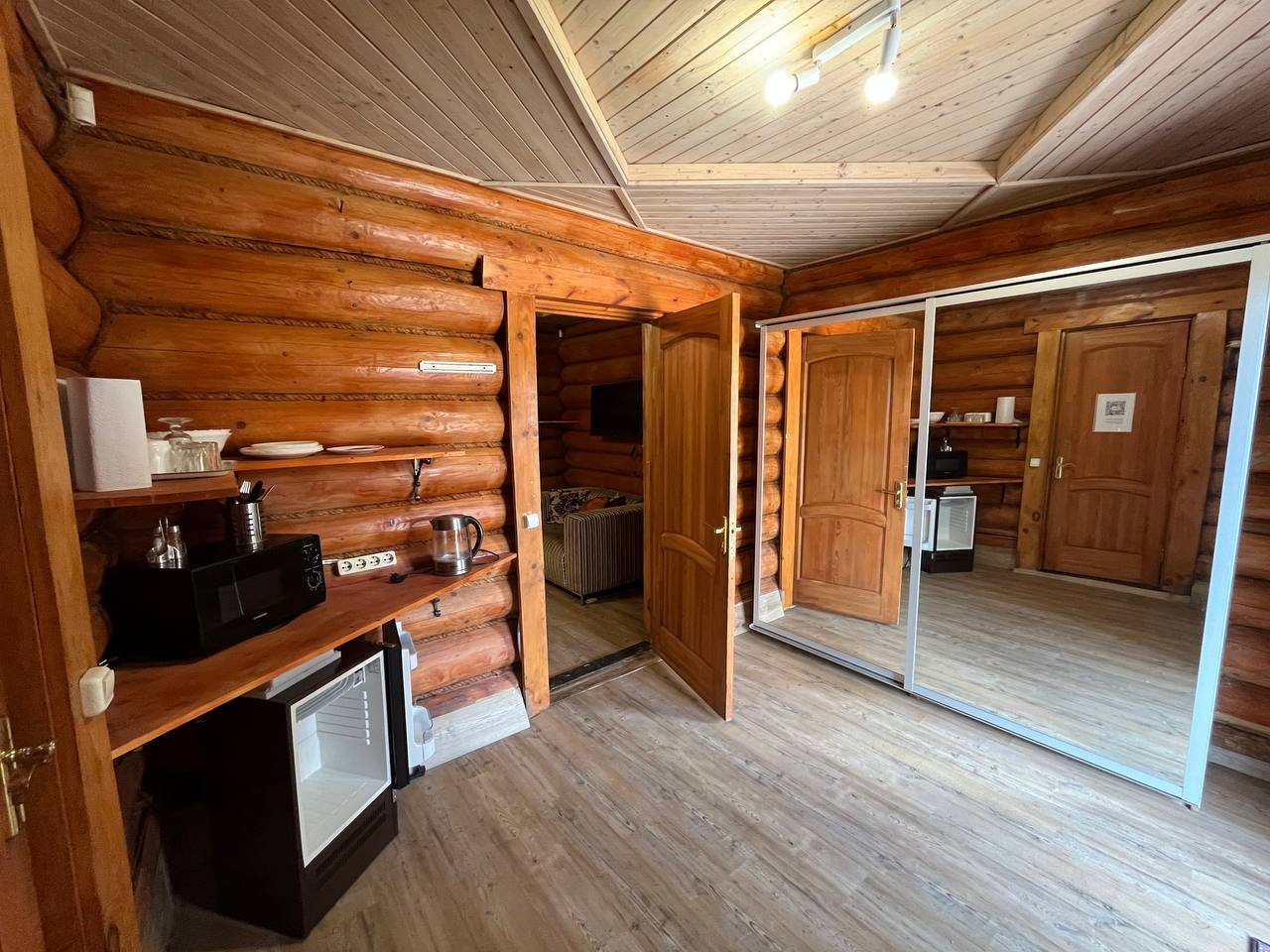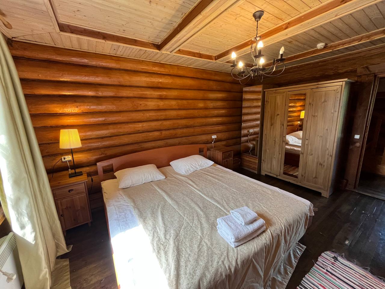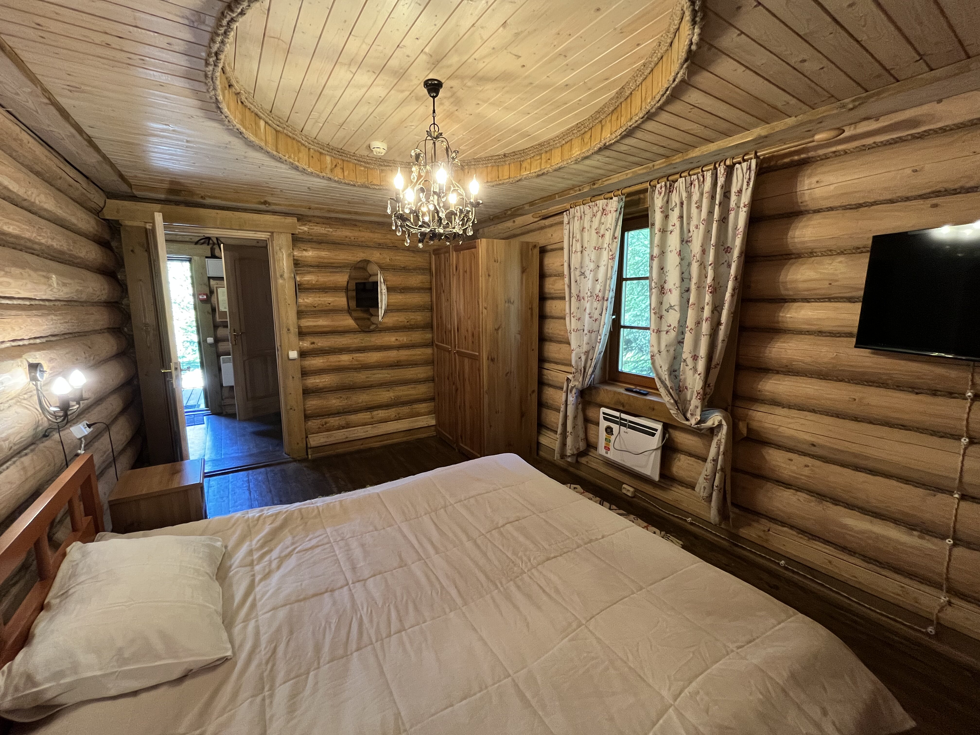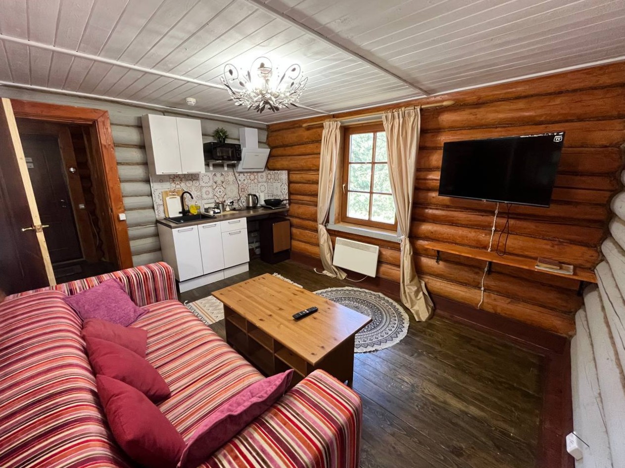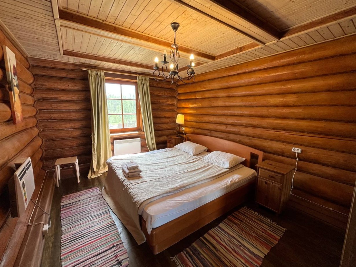 К расположению гостей предлагаются отдельно стоящие 1-этажные и 2-этажные деревянные домики разного уровня вместимости. Внутренняя отделка комнат уютная, выполнена из натуральных материалов. Установлены кровати, раскладные диваны, шкафы, журнальные столики. Из бытовой техники предлагаются микроволновые печи, мини-холодильники, электрические чайники. Санузел индивидуальный, с душевой кабиной. К услугам гостей полотенца и туалетные принадлежности.