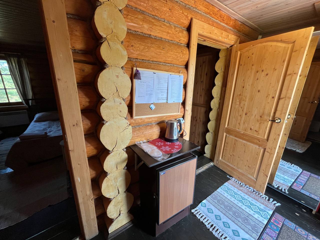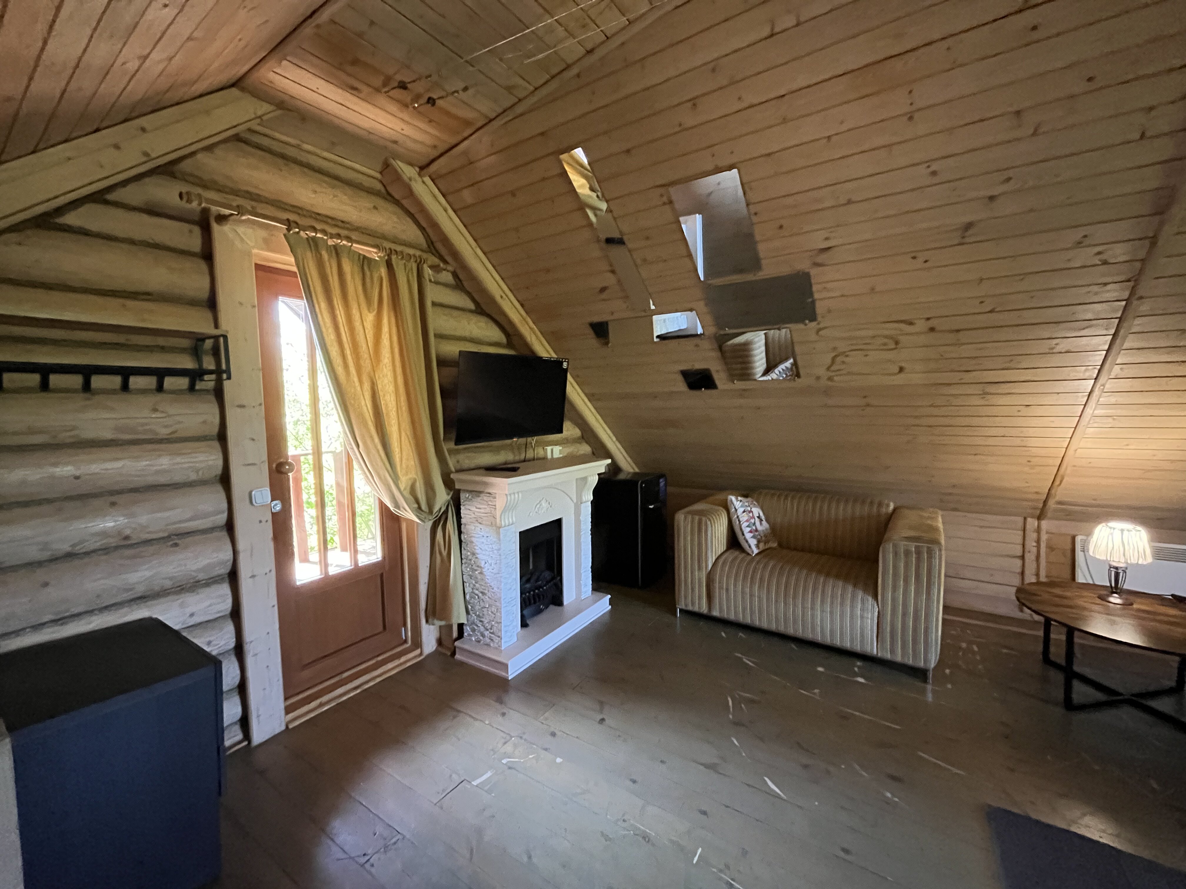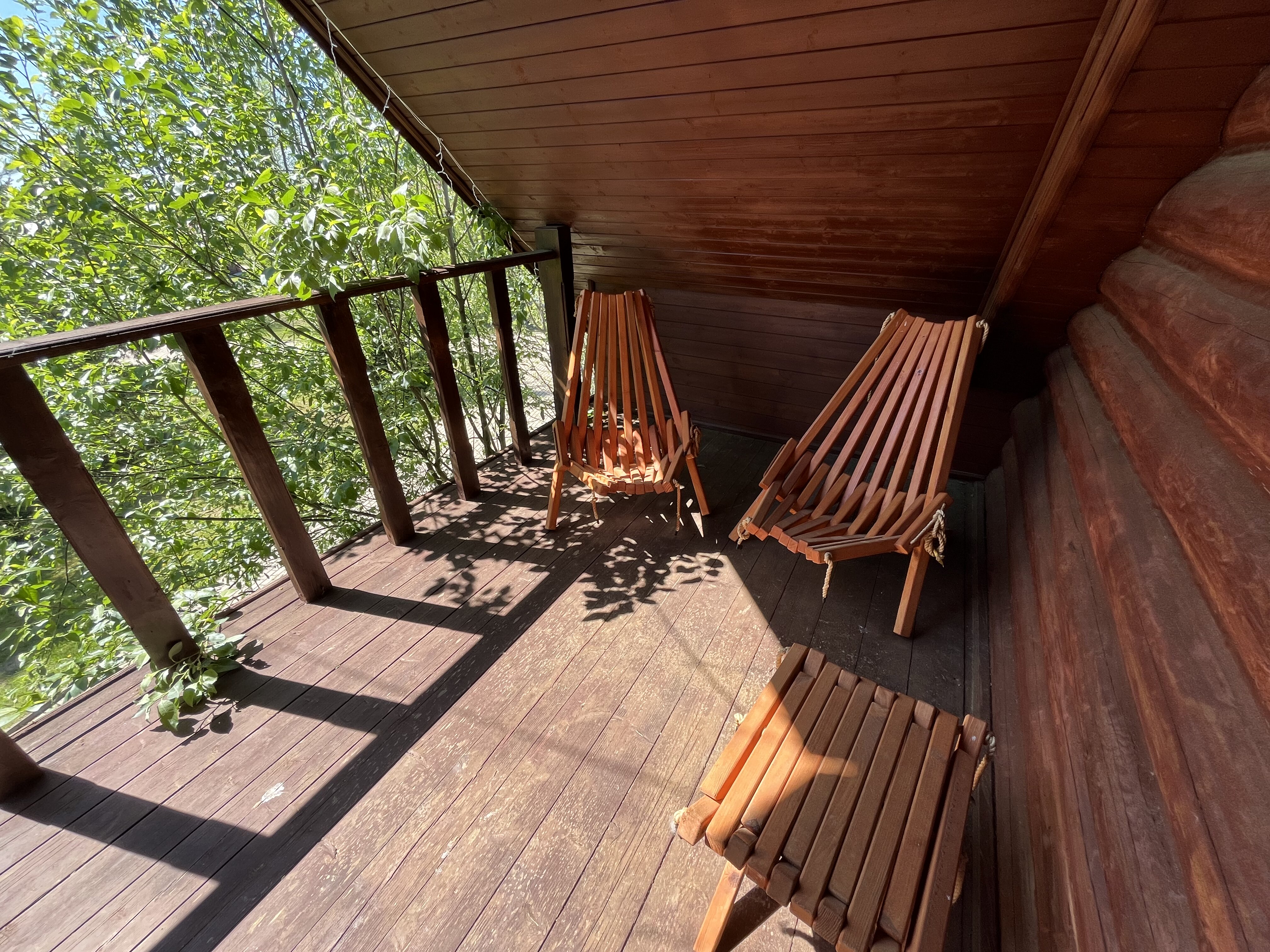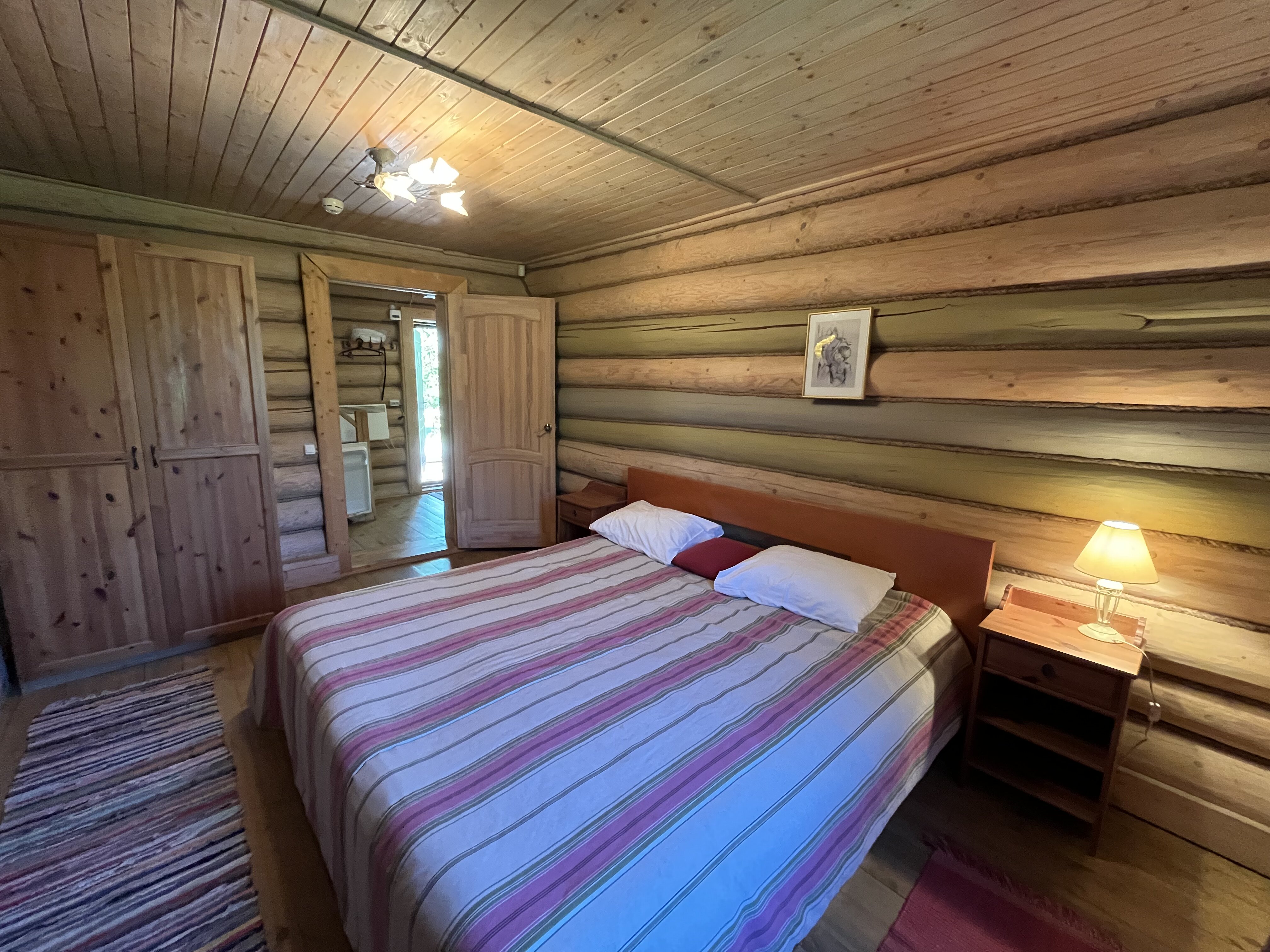 К расположению гостей предлагаются отдельно стоящие 1-этажные и 2-этажные деревянные домики разного уровня вместимости. Внутренняя отделка комнат уютная, выполнена из натуральных материалов. Установлены кровати, раскладные диваны, шкафы, журнальные столики. Из бытовой техники предлагаются микроволновые печи, мини-холодильники, электрические чайники. Санузел индивидуальный, с душевой кабиной. К услугам гостей полотенца и туалетные принадлежности.