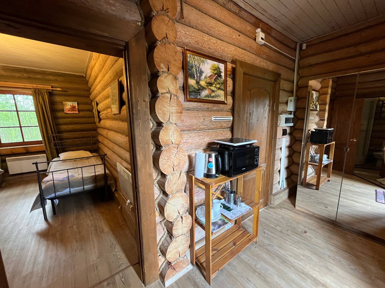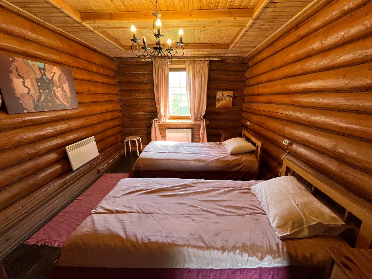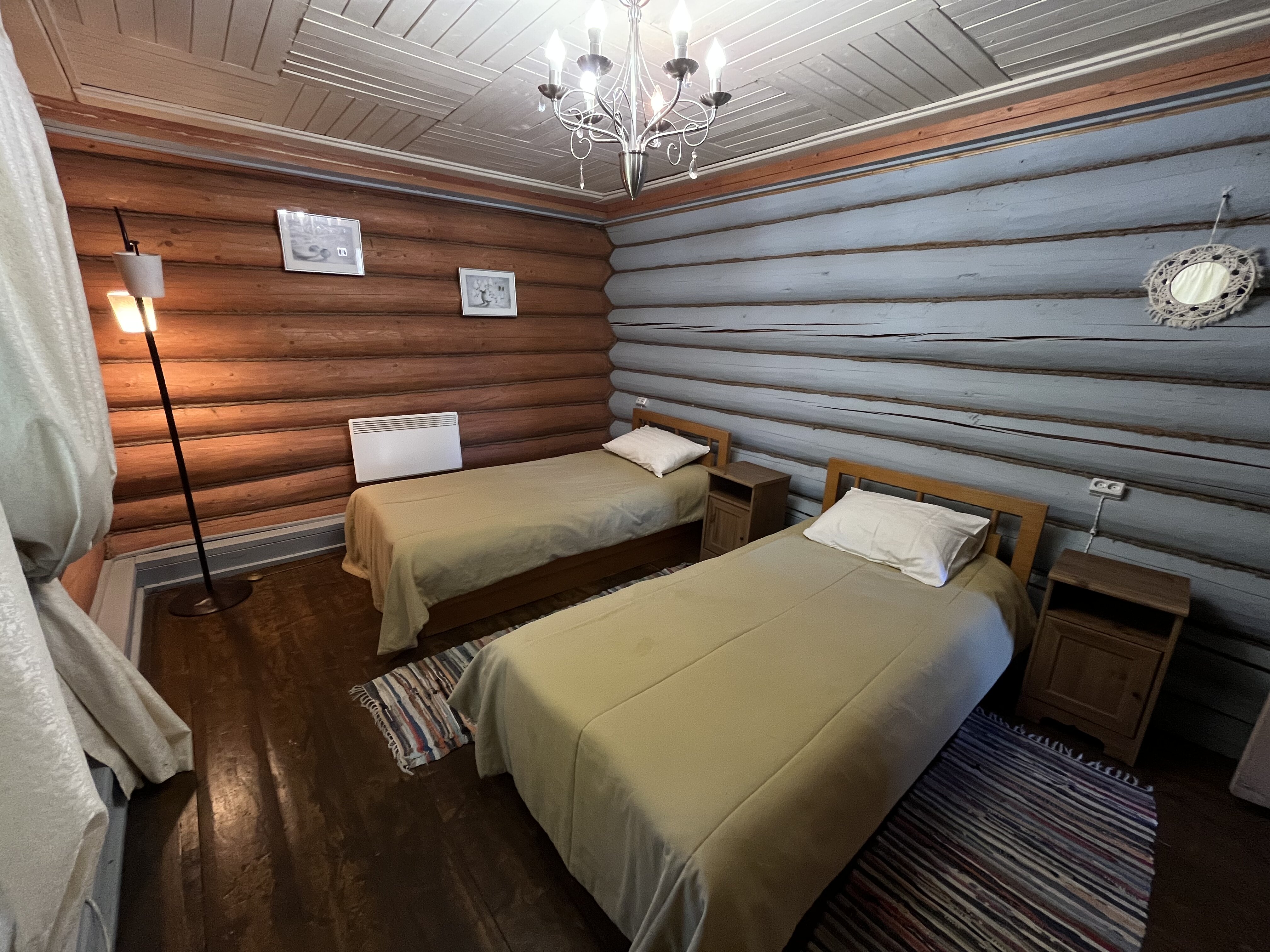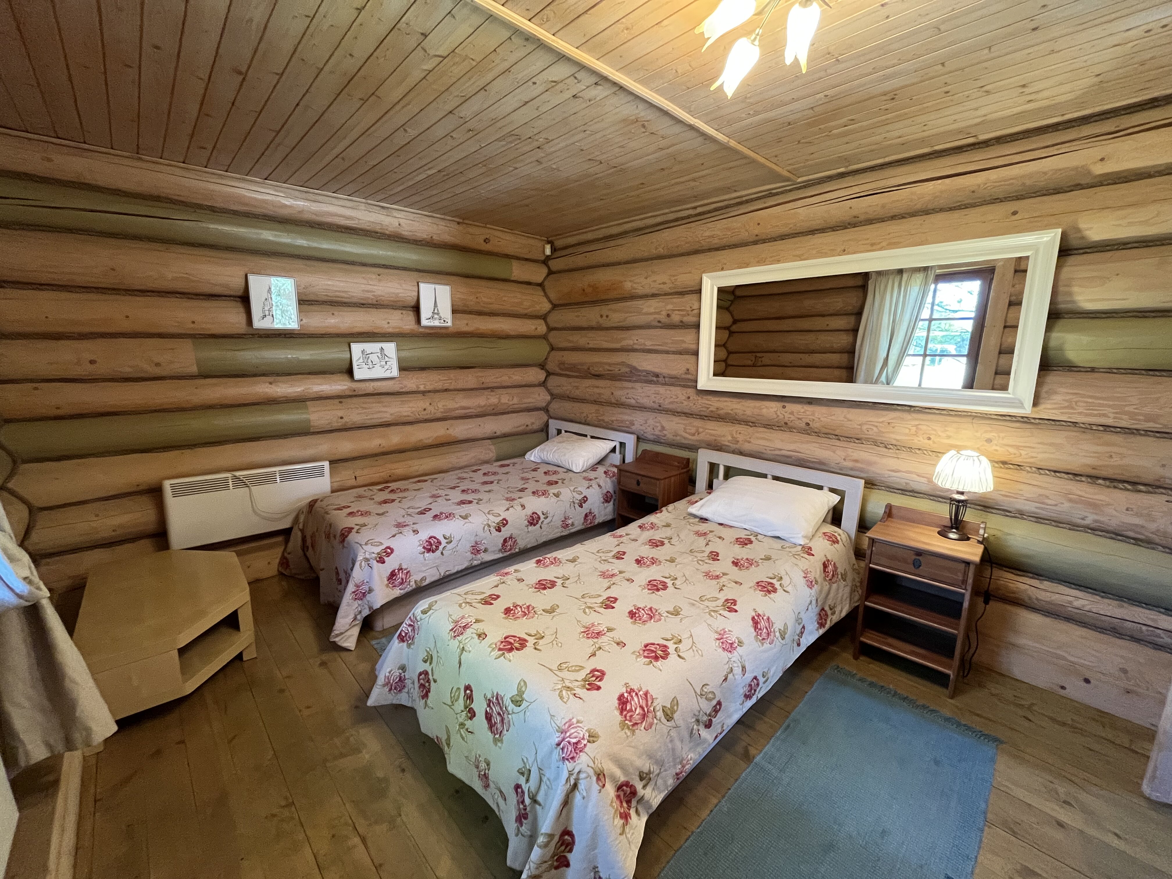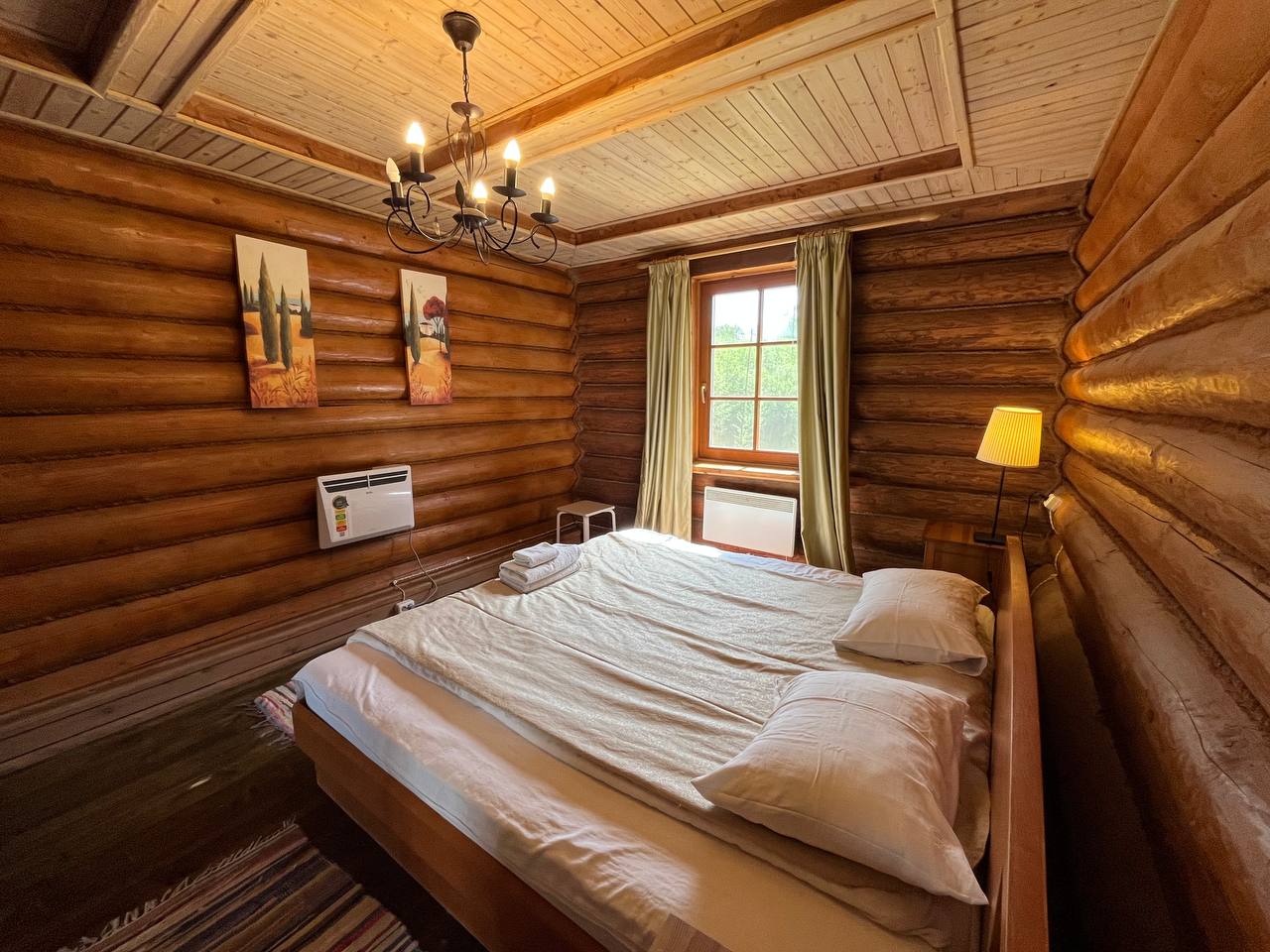 К расположению гостей предлагаются отдельно стоящие 1-этажные и 2-этажные деревянные домики разного уровня вместимости. Внутренняя отделка комнат уютная, выполнена из натуральных материалов. Установлены кровати, раскладные диваны, шкафы, журнальные столики. Из бытовой техники предлагаются микроволновые печи, мини-холодильники, электрические чайники. Санузел индивидуальный, с душевой кабиной. К услугам гостей полотенца и туалетные принадлежности.