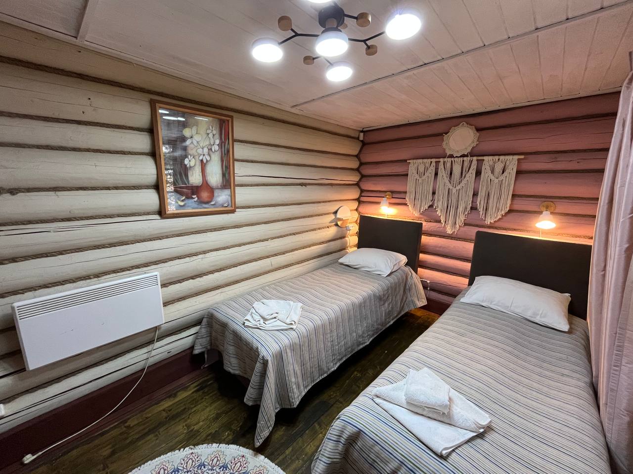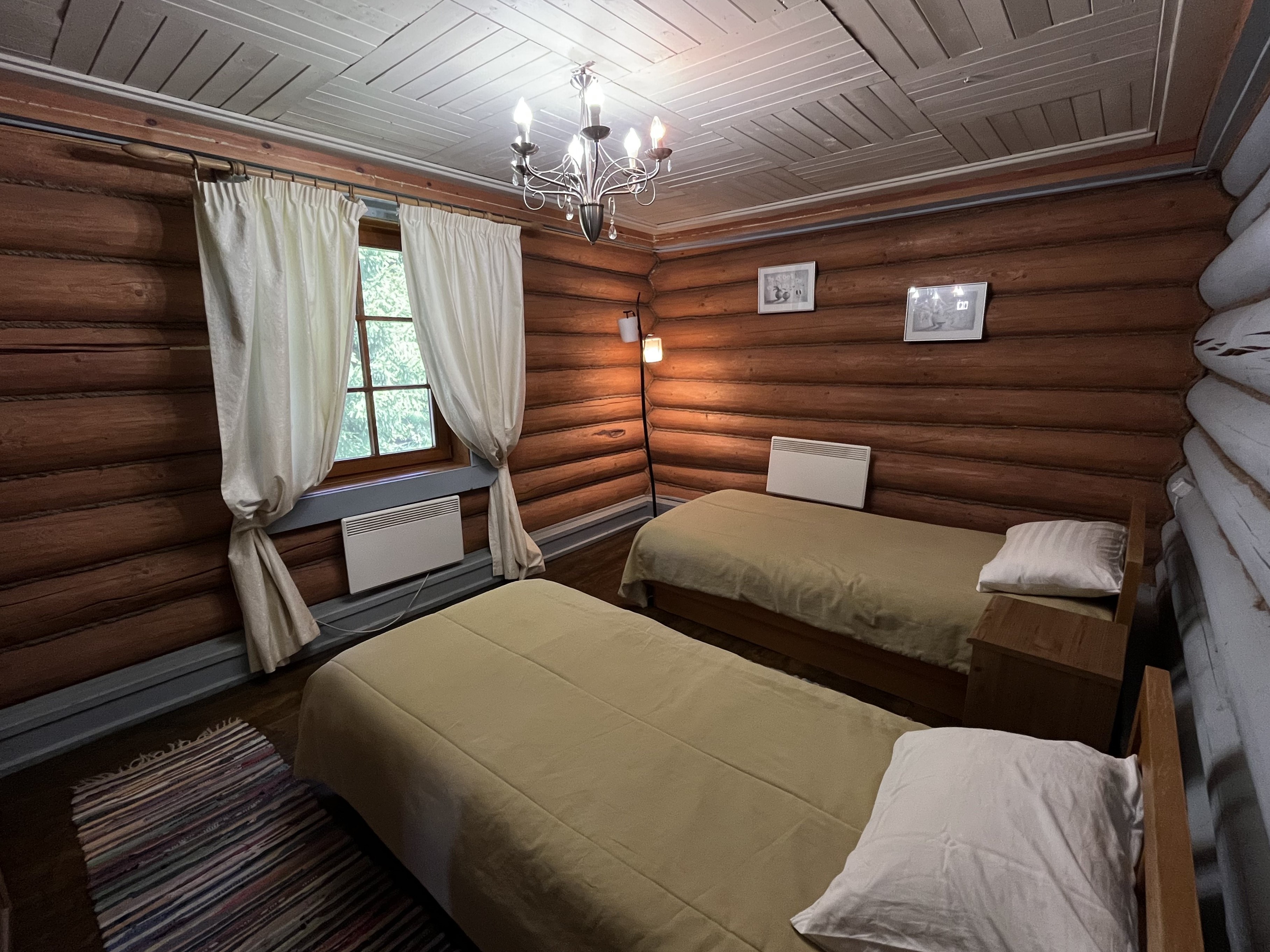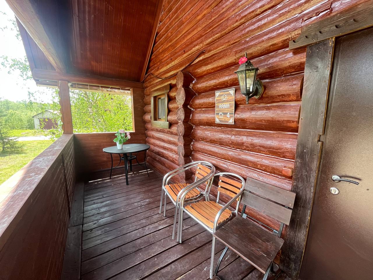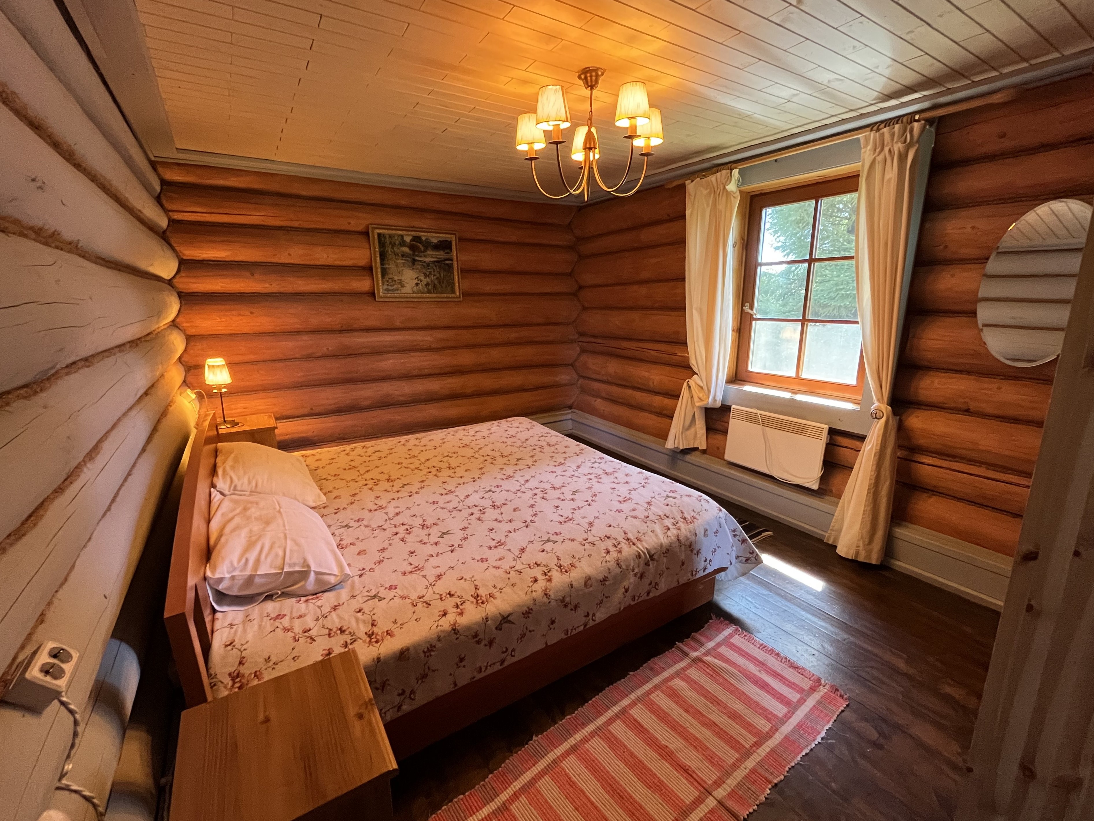 К расположению гостей предлагаются отдельно стоящие 1-этажные и 2-этажные деревянные домики разного уровня вместимости. Внутренняя отделка комнат уютная, выполнена из натуральных материалов. Установлены кровати, раскладные диваны, шкафы, журнальные столики. Из бытовой техники предлагаются микроволновые печи, мини-холодильники, электрические чайники. Санузел индивидуальный, с душевой кабиной. К услугам гостей полотенца и туалетные принадлежности.