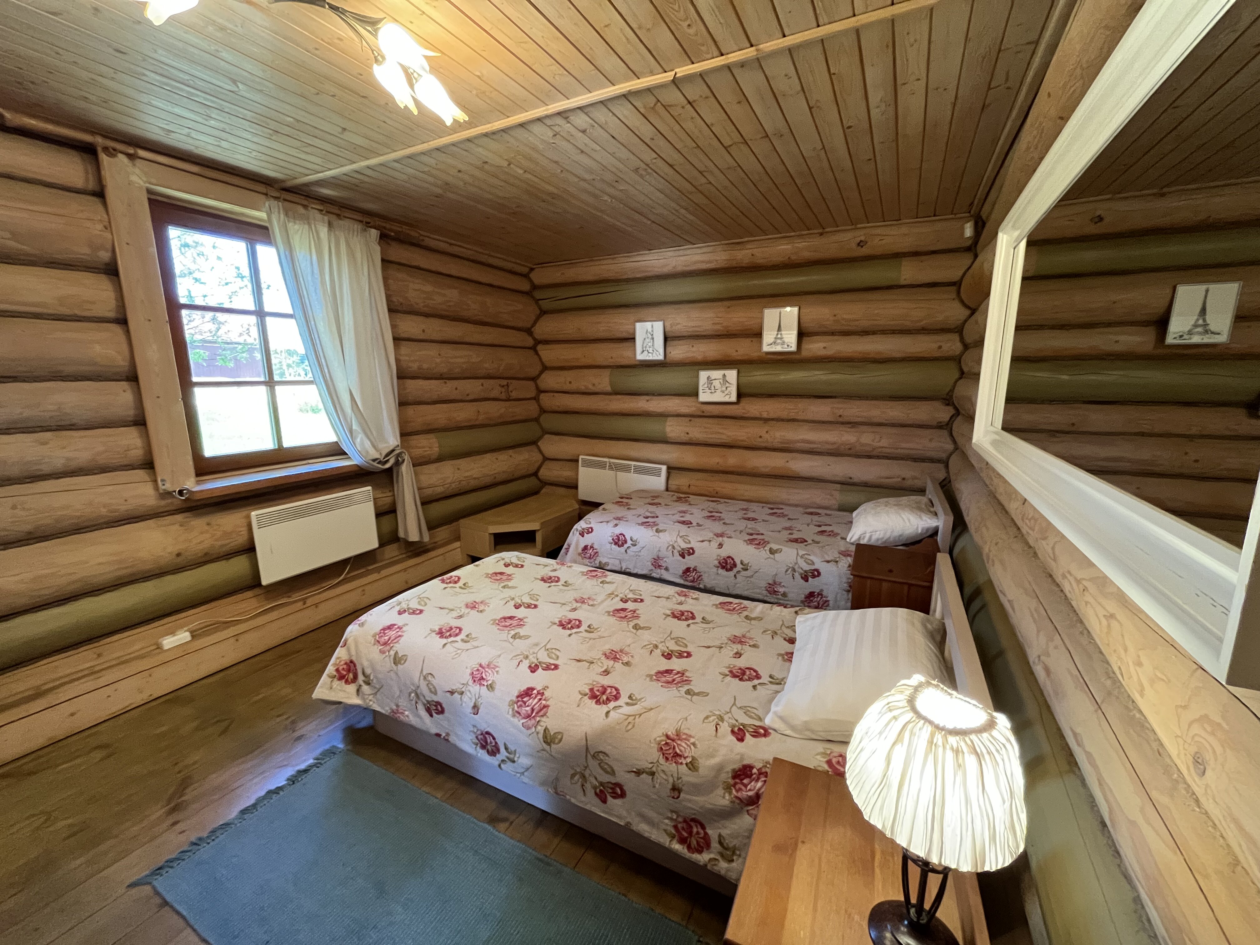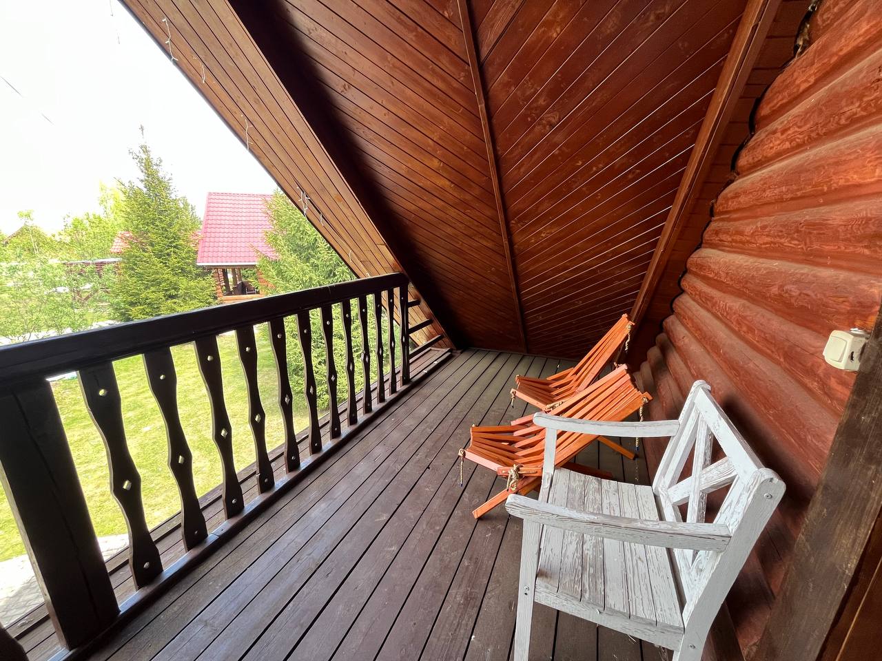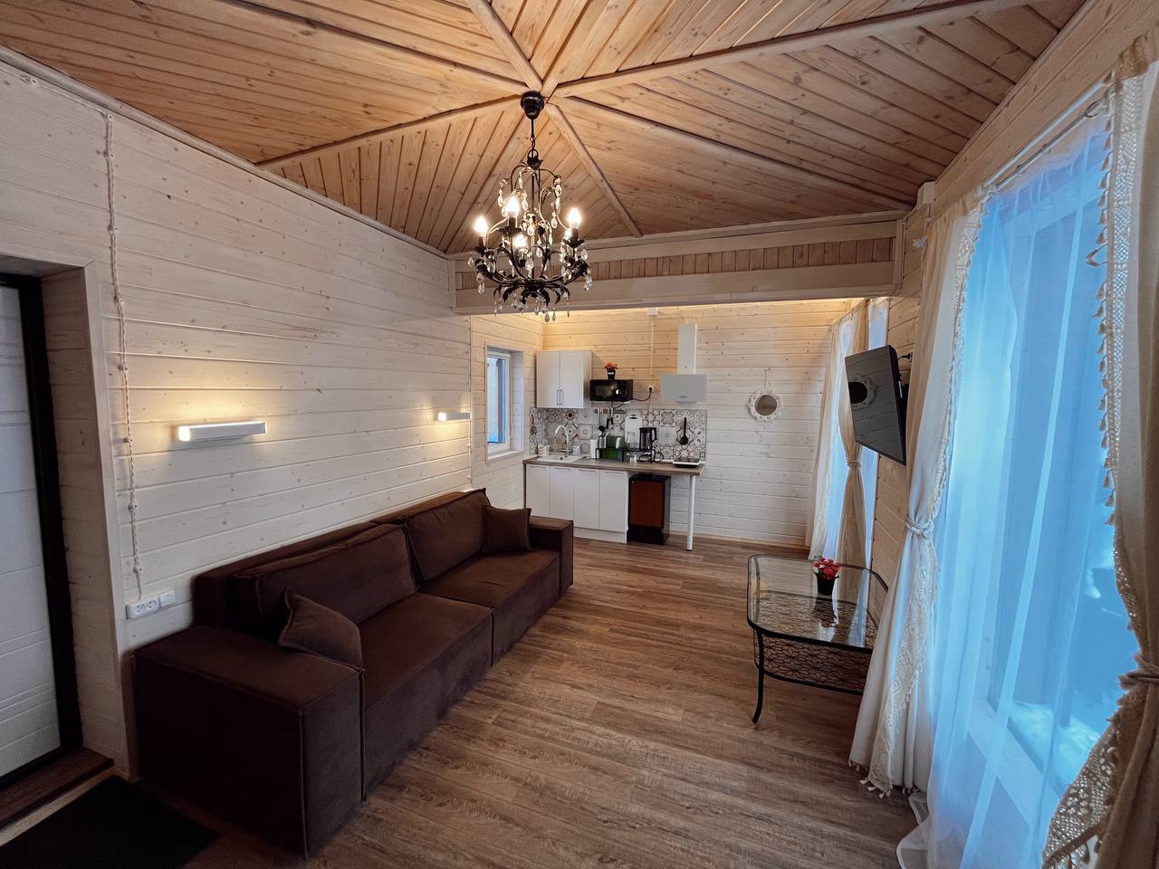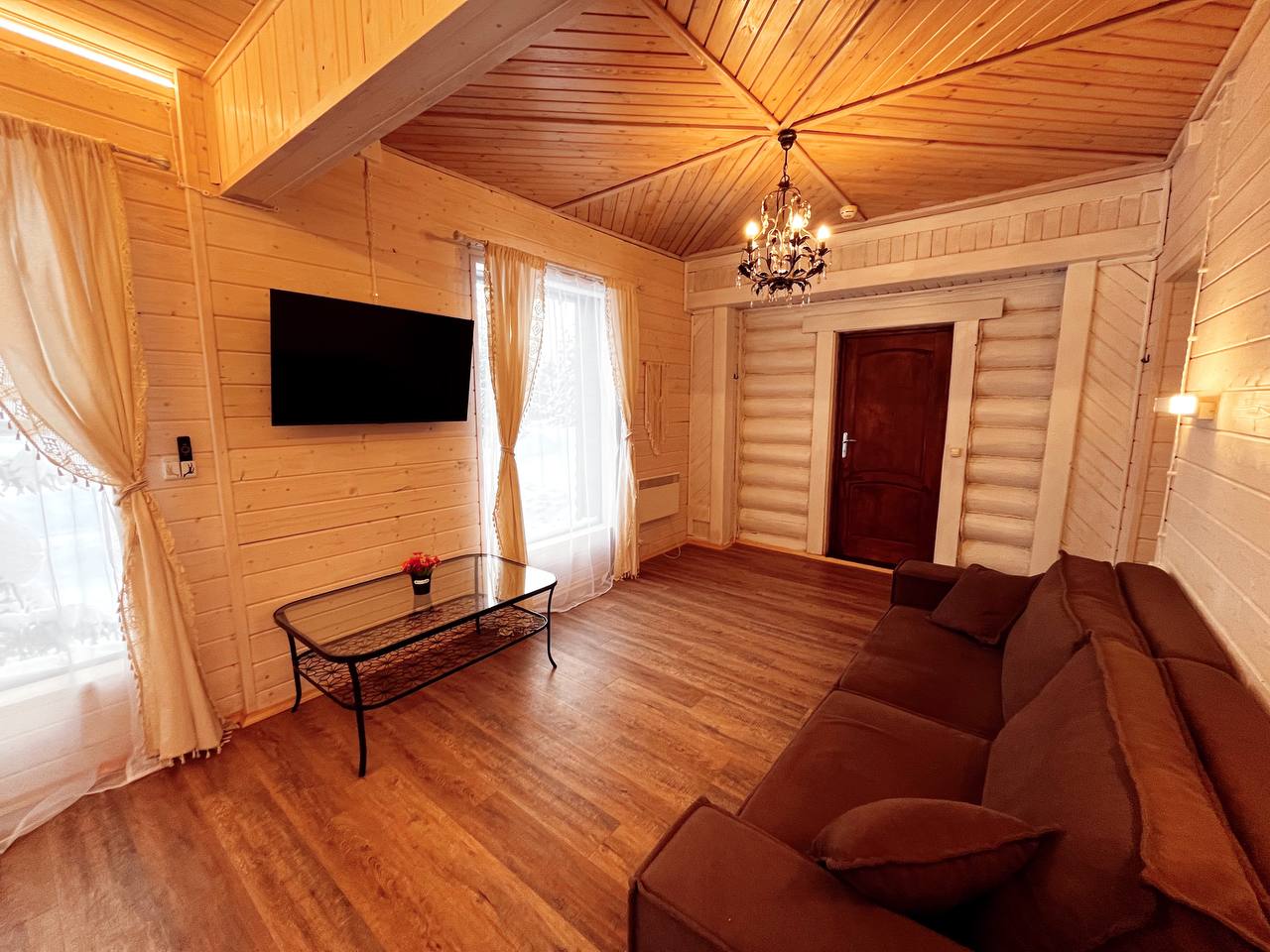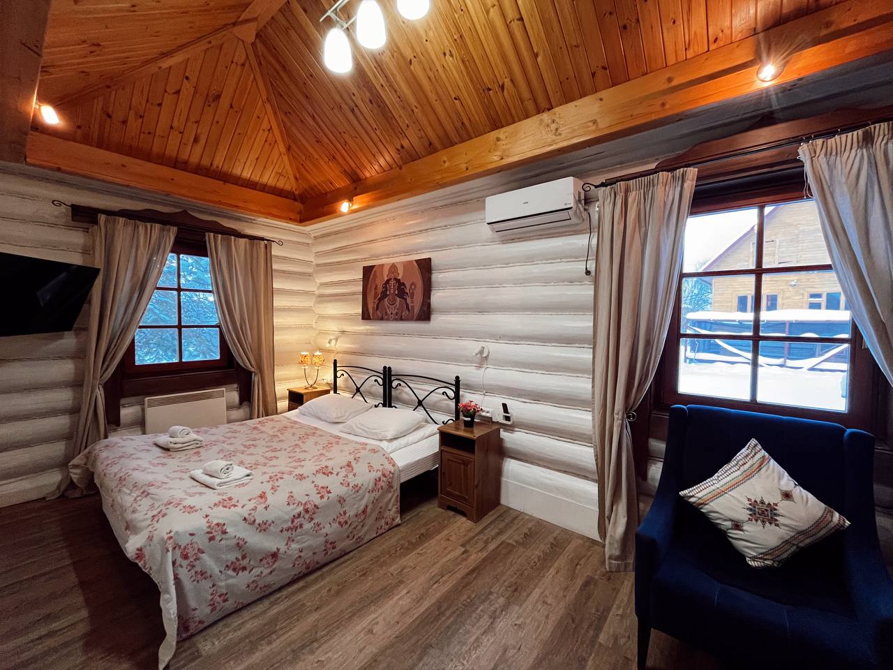 К расположению гостей предлагаются отдельно стоящие 1-этажные и 2-этажные деревянные домики разного уровня вместимости. Внутренняя отделка комнат уютная, выполнена из натуральных материалов. Установлены кровати, раскладные диваны, шкафы, журнальные столики. Из бытовой техники предлагаются микроволновые печи, мини-холодильники, электрические чайники. Санузел индивидуальный, с душевой кабиной. К услугам гостей полотенца и туалетные принадлежности.