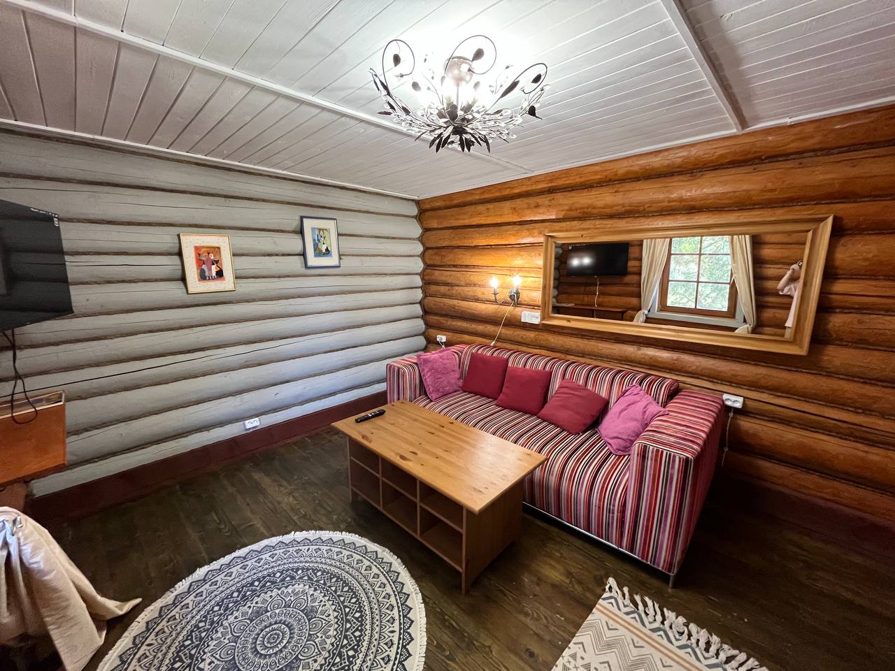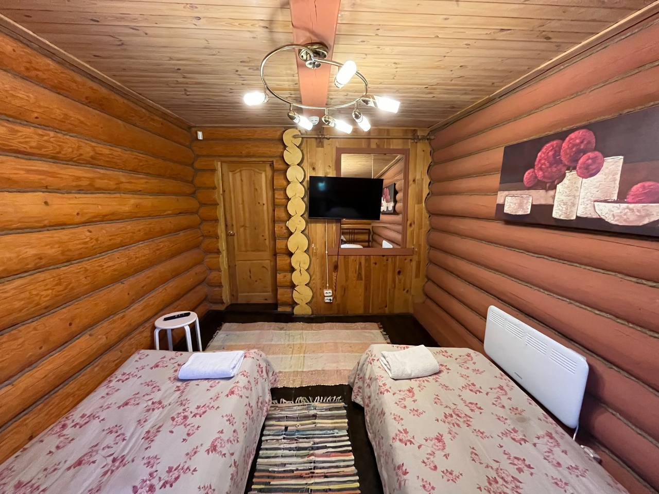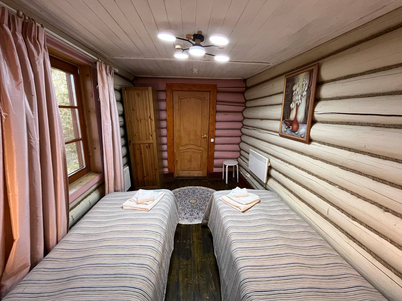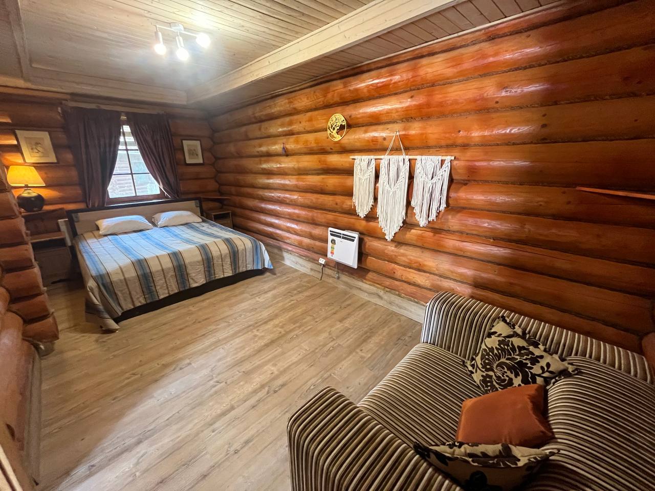 К расположению гостей предлагаются отдельно стоящие 1-этажные и 2-этажные деревянные домики разного уровня вместимости. Внутренняя отделка комнат уютная, выполнена из натуральных материалов. Установлены кровати, раскладные диваны, шкафы, журнальные столики. Из бытовой техники предлагаются микроволновые печи, мини-холодильники, электрические чайники. Санузел индивидуальный, с душевой кабиной. К услугам гостей полотенца и туалетные принадлежности.