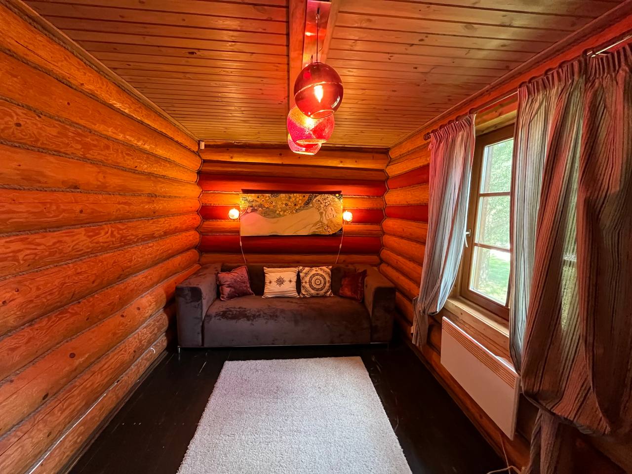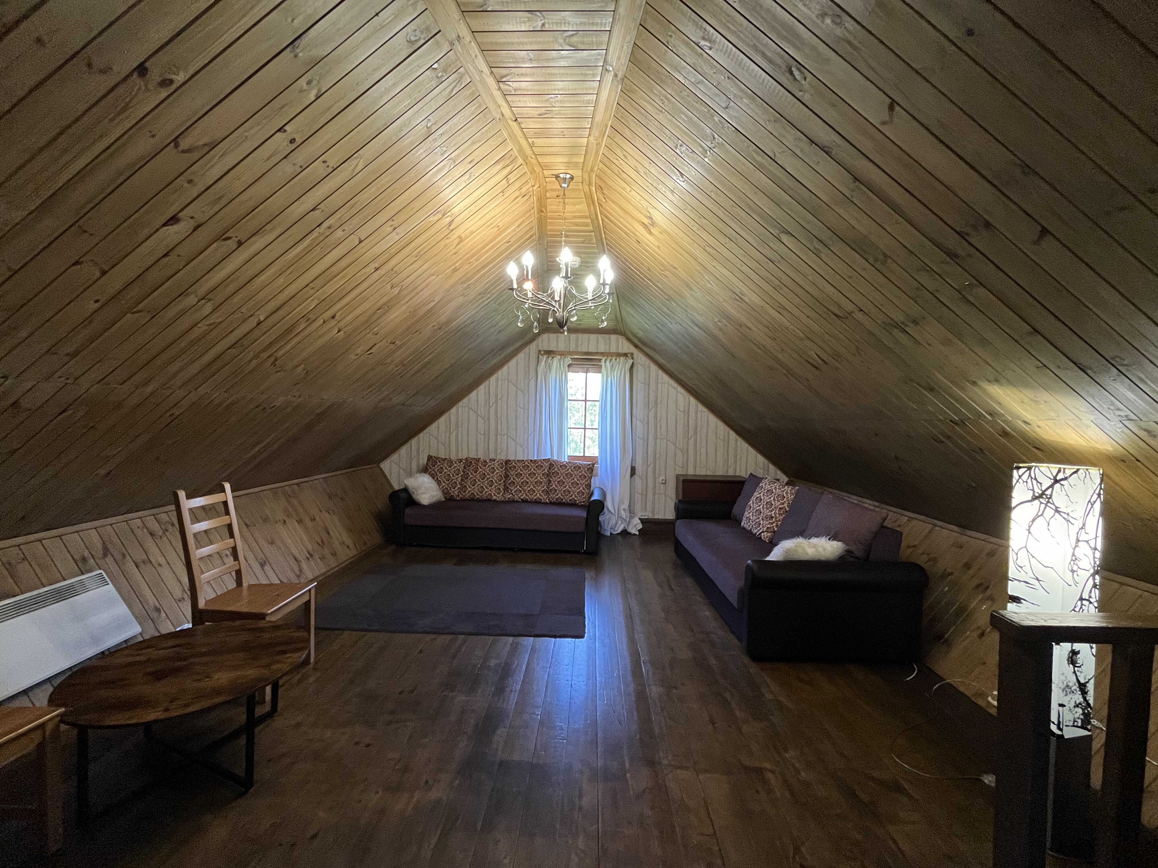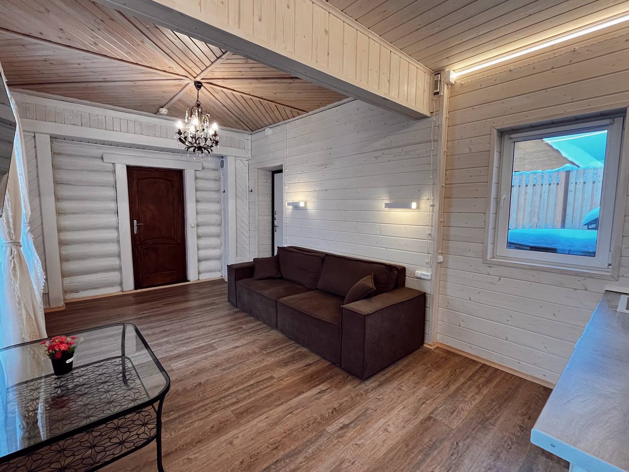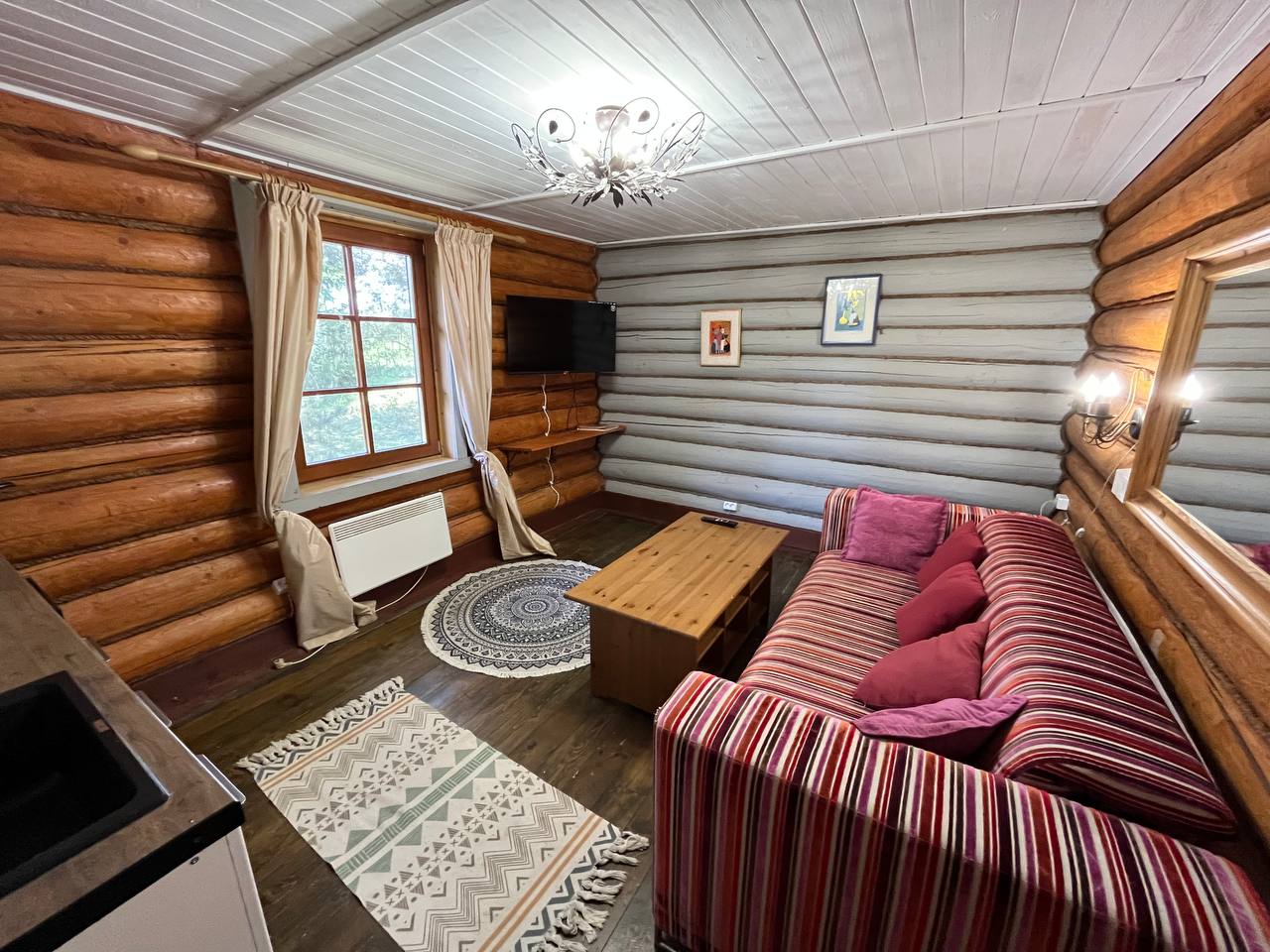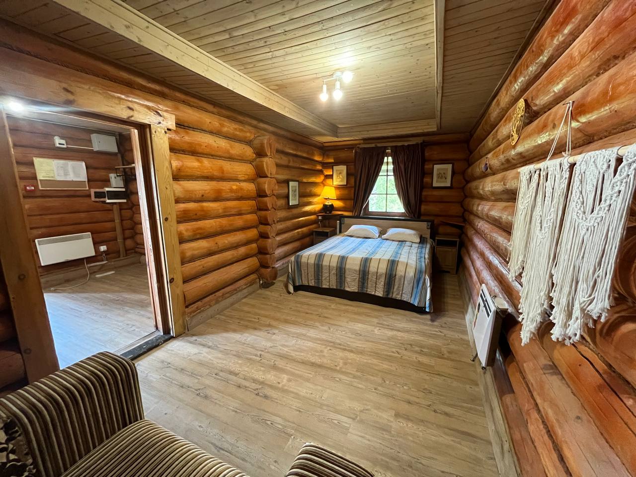 К расположению гостей предлагаются отдельно стоящие 1-этажные и 2-этажные деревянные домики разного уровня вместимости. Внутренняя отделка комнат уютная, выполнена из натуральных материалов. Установлены кровати, раскладные диваны, шкафы, журнальные столики. Из бытовой техники предлагаются микроволновые печи, мини-холодильники, электрические чайники. Санузел индивидуальный, с душевой кабиной. К услугам гостей полотенца и туалетные принадлежности.