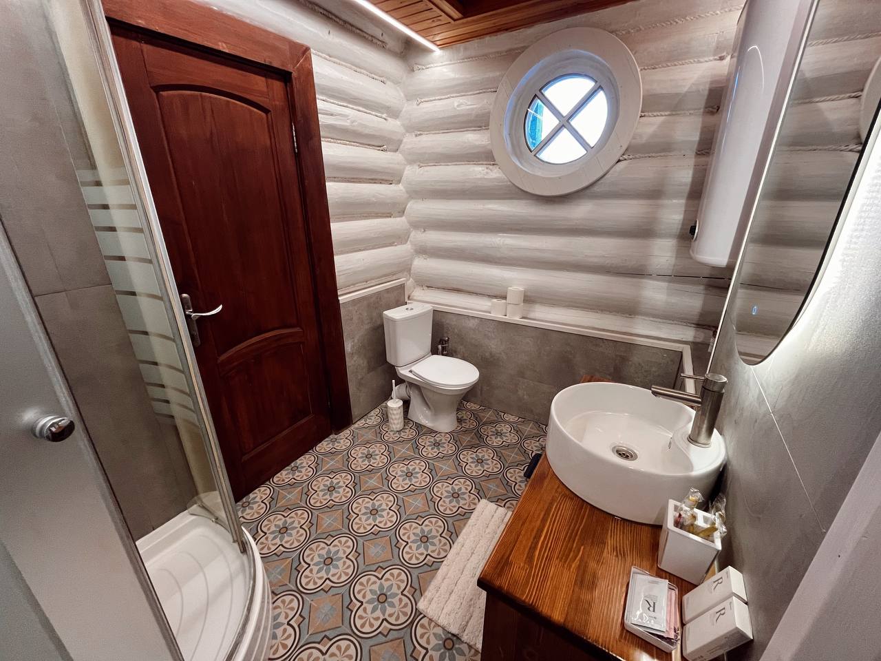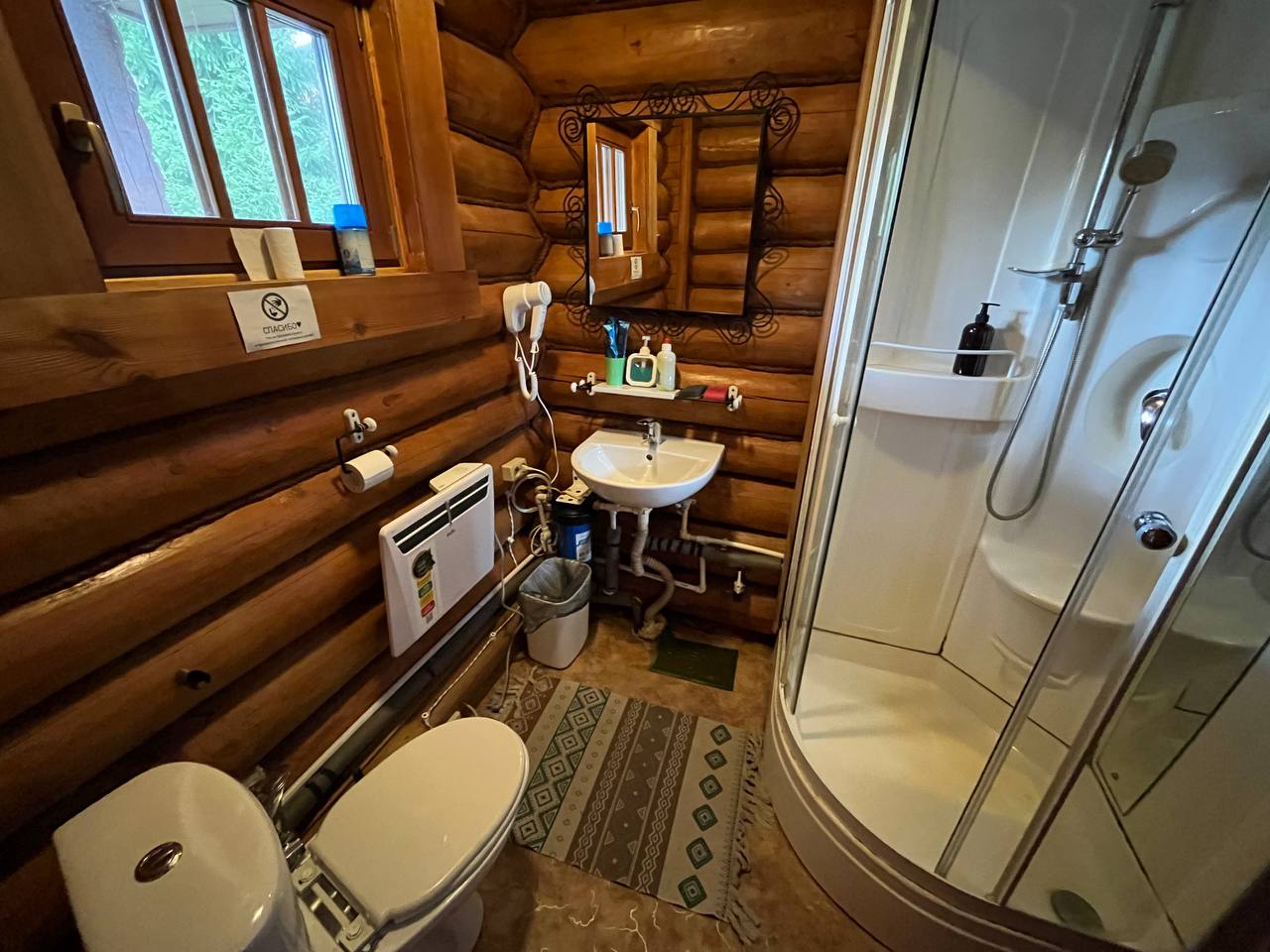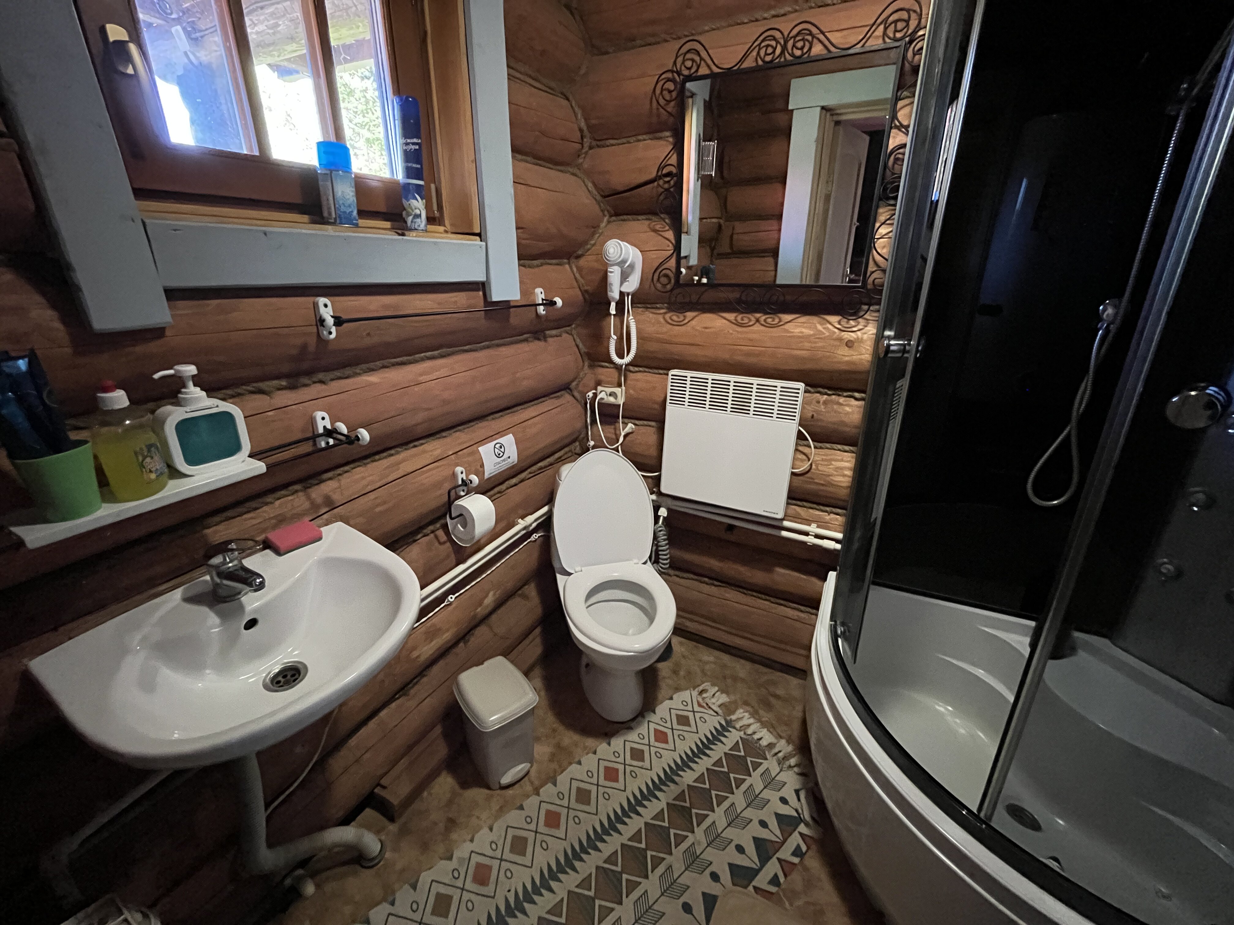 с душевой кабиной: ; туалетные принадлежности: ;