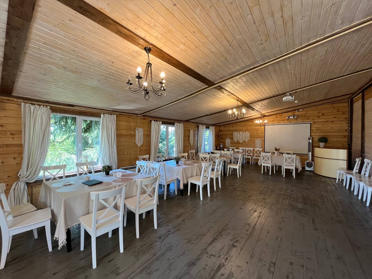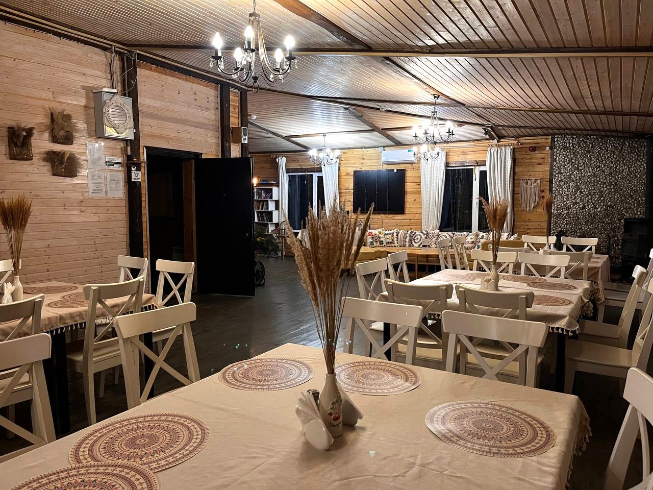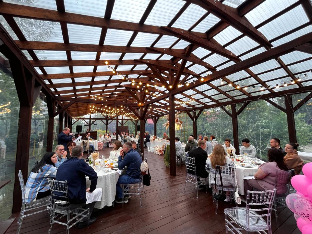 Экоусадьба предлагает различные услуги по проведению мероприятий на открытом воздухе. Здесь можно организовать банкеты, праздники, корпоративы, свадьбы, встречи с друзьями или семейные торжества. В распоряжении отдыхающих для аренды, мангал-зоны, шатры для мероприятий, зал под банкет и другие услуги, включая BBQ зону, баню-бочку и японскую чан-баню. На территории отеля также есть бесплатный Wi-Fi, парковка и зарыбленный пруд, где можно провести время на рыбалке.