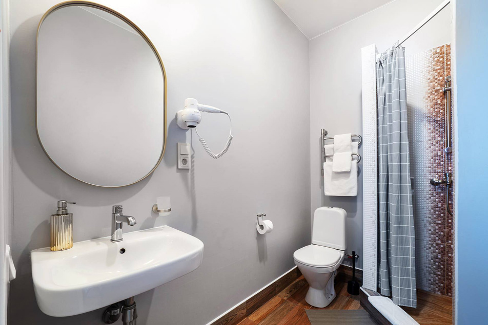 с ванной или душевой кабиной: ; туалетные принадлежности: ; фен: ;