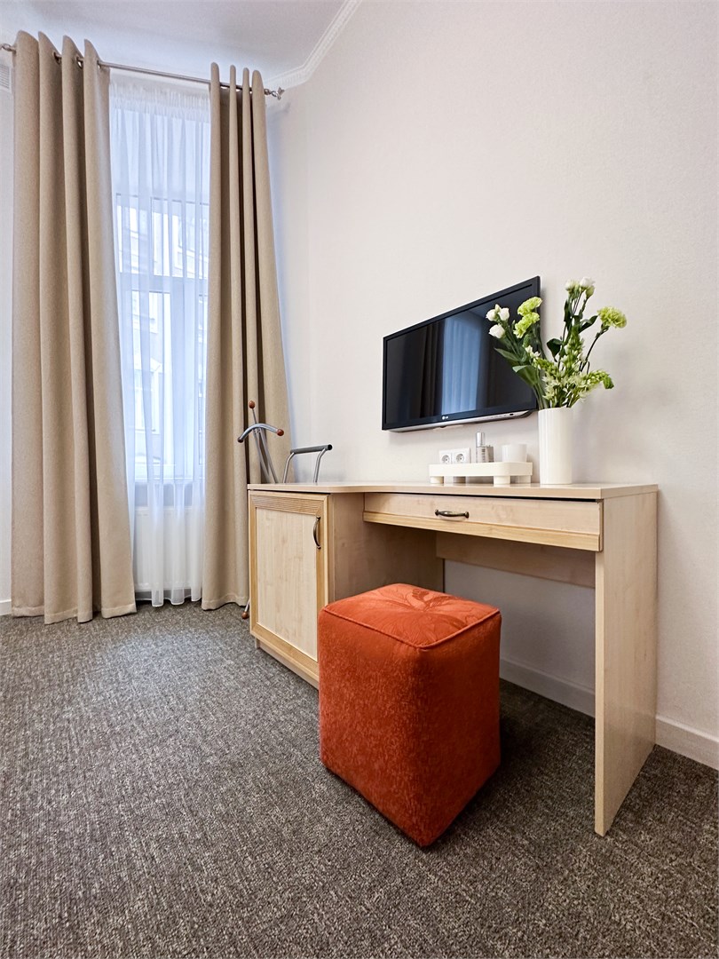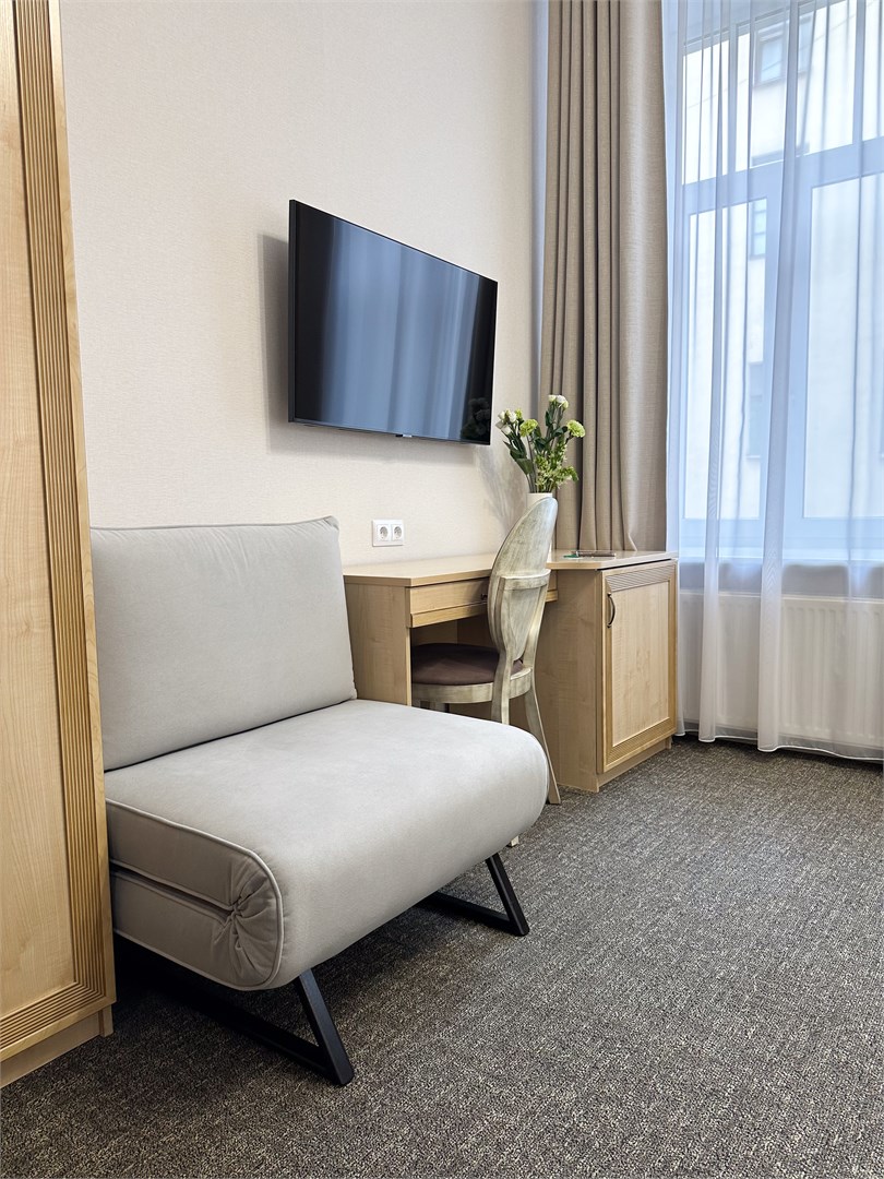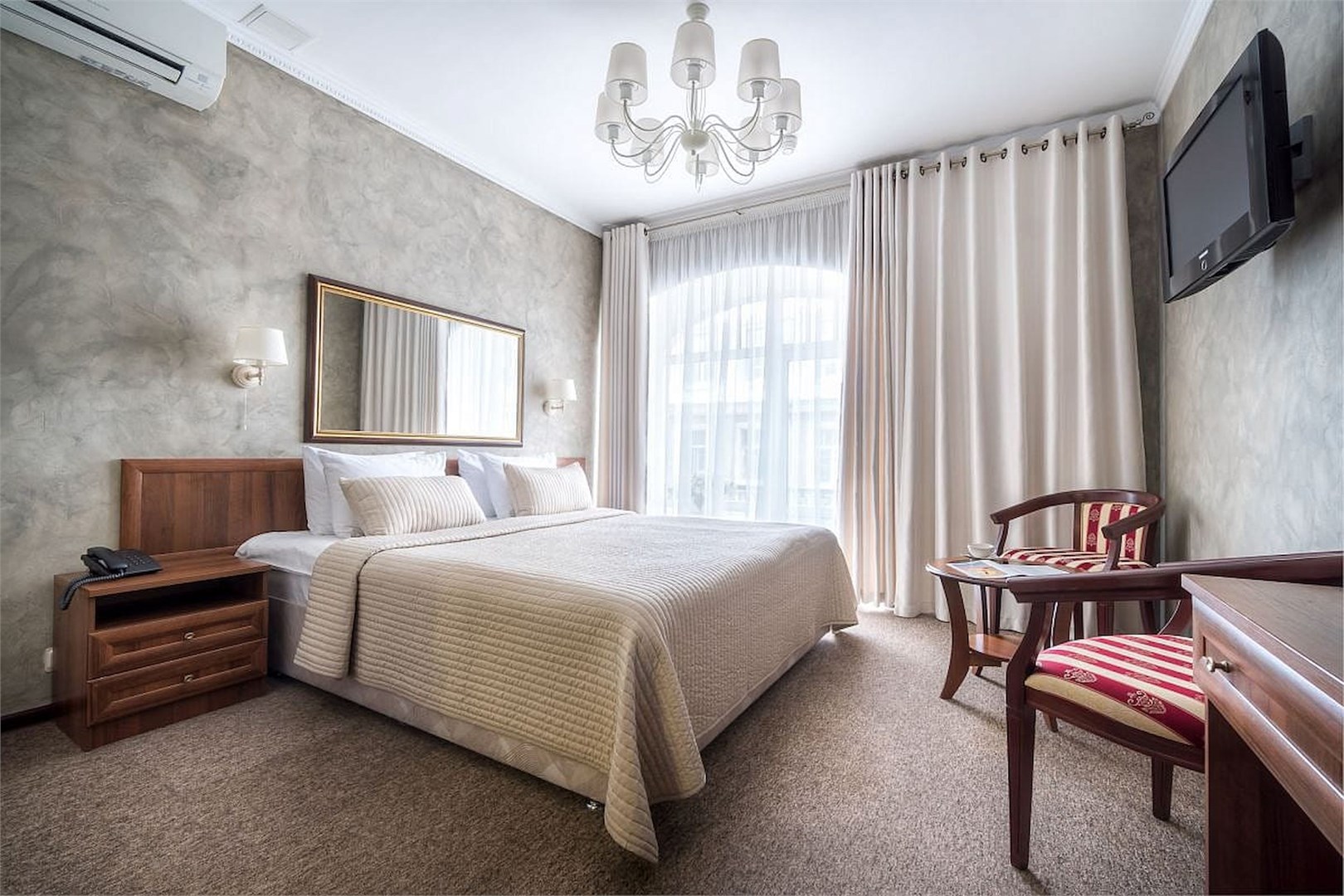 В каждом номере предусмотрен собственный санузел, есть кондиционер, телевизор с плоским экраном и беспроводной интернет. Из окон открывается вид во внутренний двор, а для автовладельцев организована охраняемая парковка.
