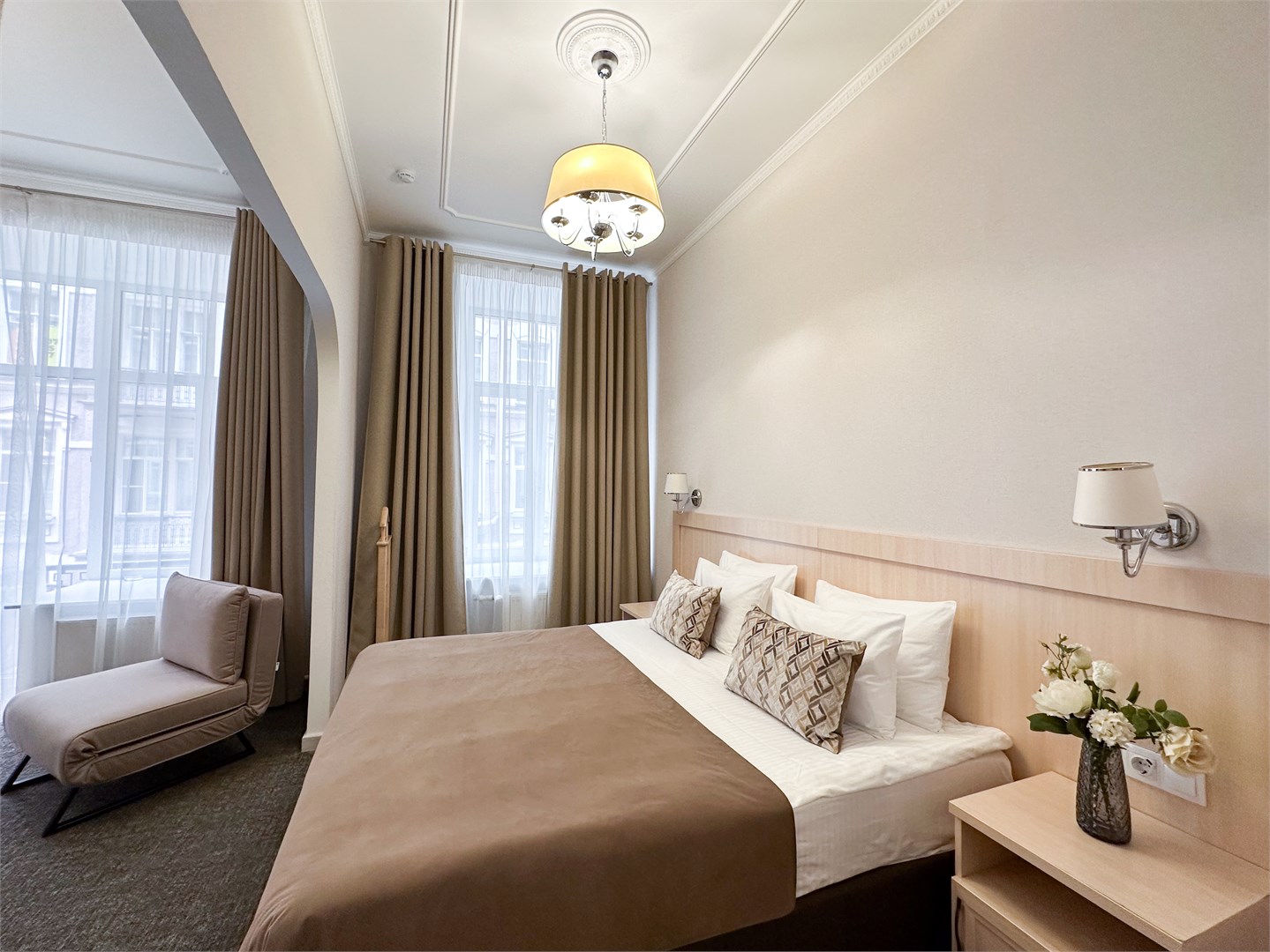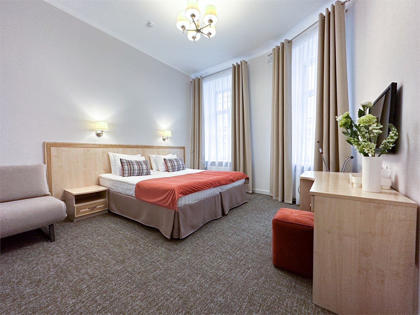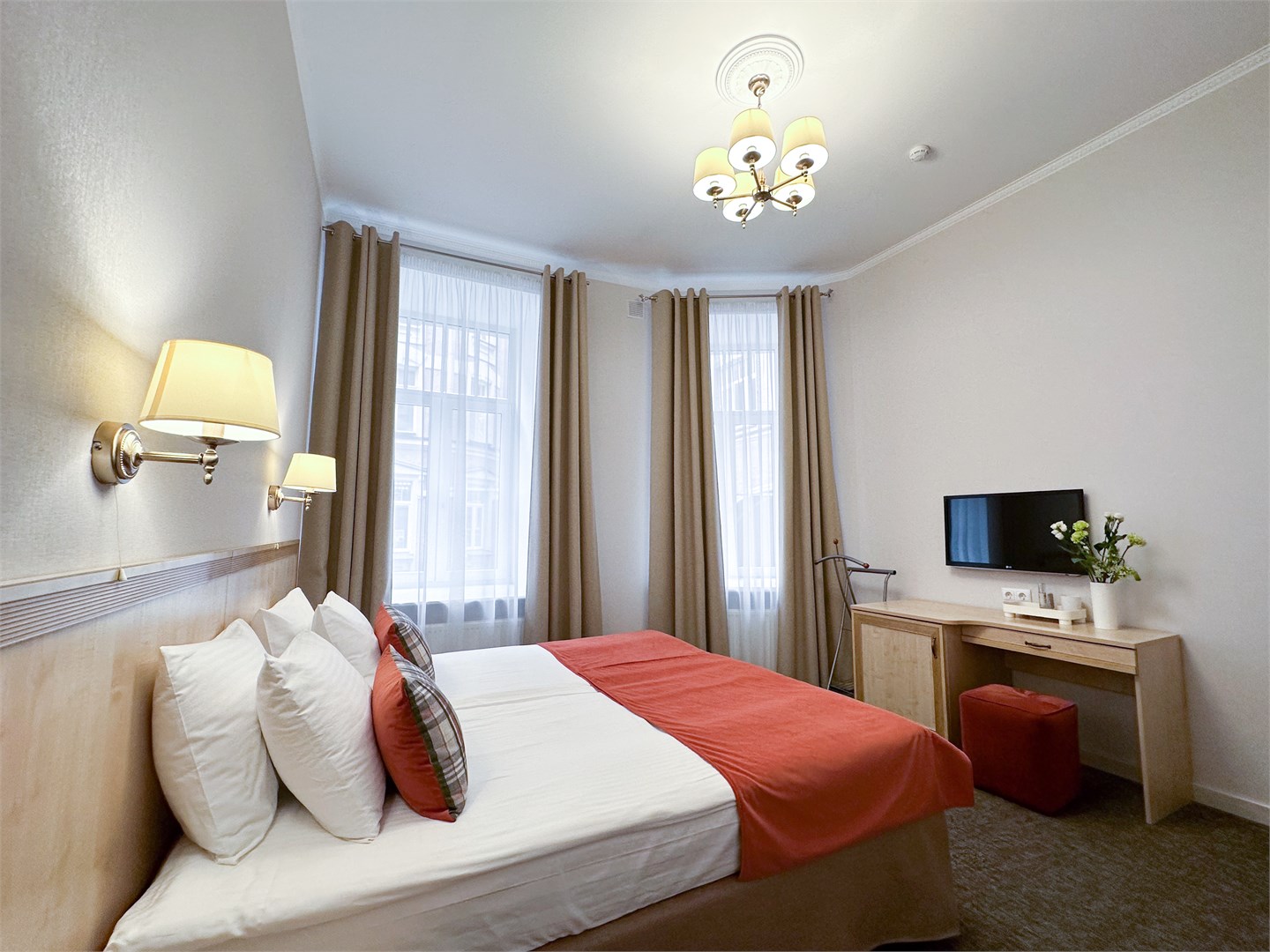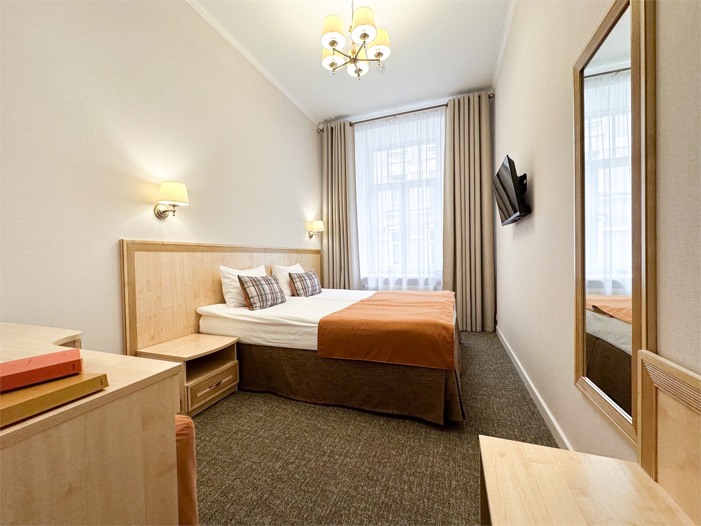 Отель разместились в историческом шестиэтажном здании с мансардой, расположенном прямо на Невском проспекте. В распоряжении гостей номера разных категорий комфорта – есть стандартные комнаты, а есть просторные вместительные Апартаменты с собственной кухней и гостиной зоной.