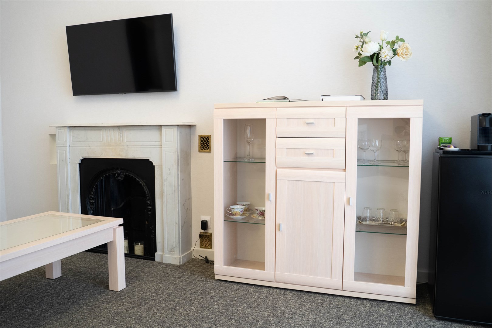 вешалка: ; зеркало: ; кресло-кровать: 2; кровать двуспальная: ; прикроватные тумбочки: ; стол: ; столик журнальный: ; столик туалетный: ; стул: ; шкаф: ;
