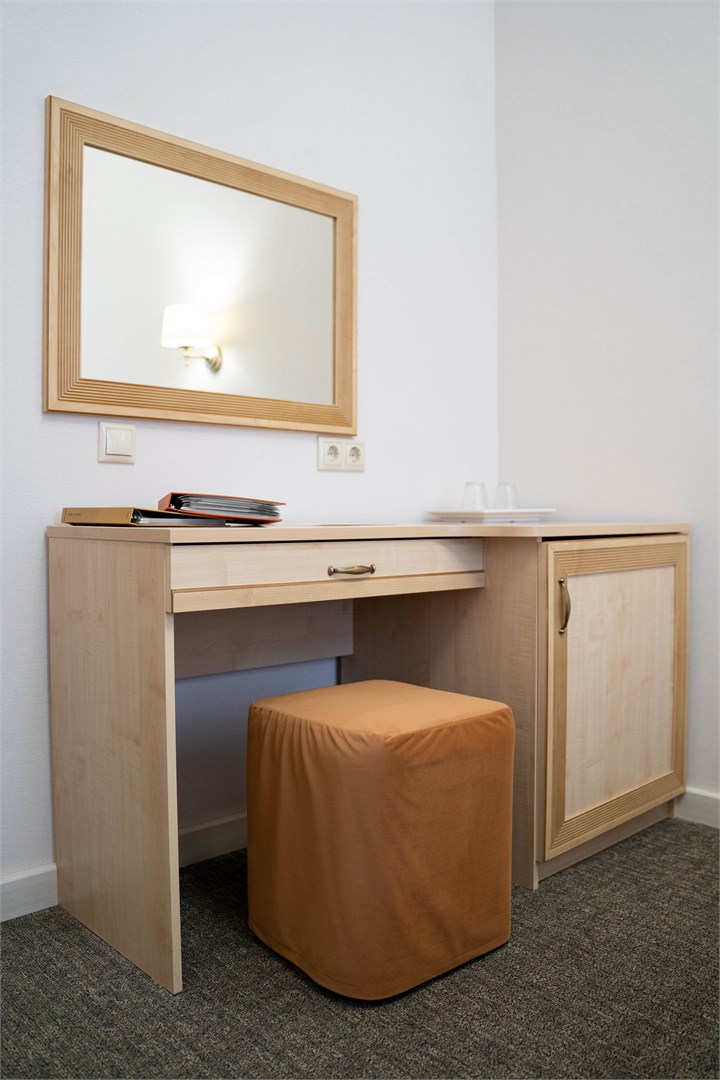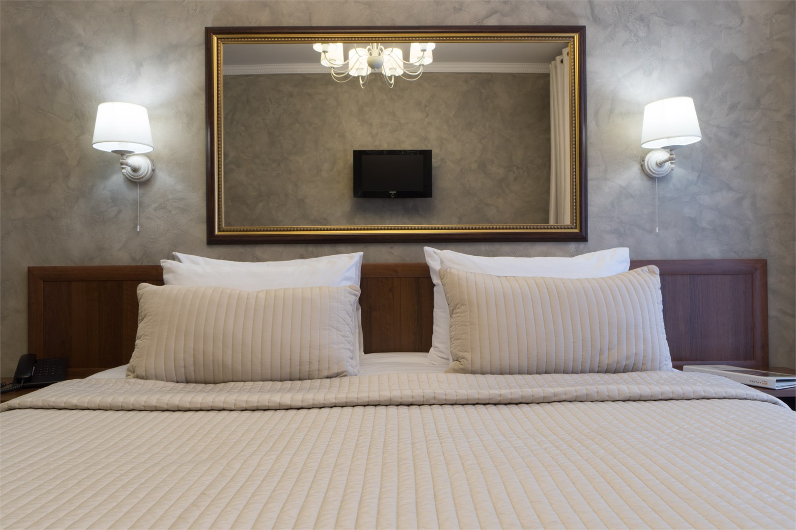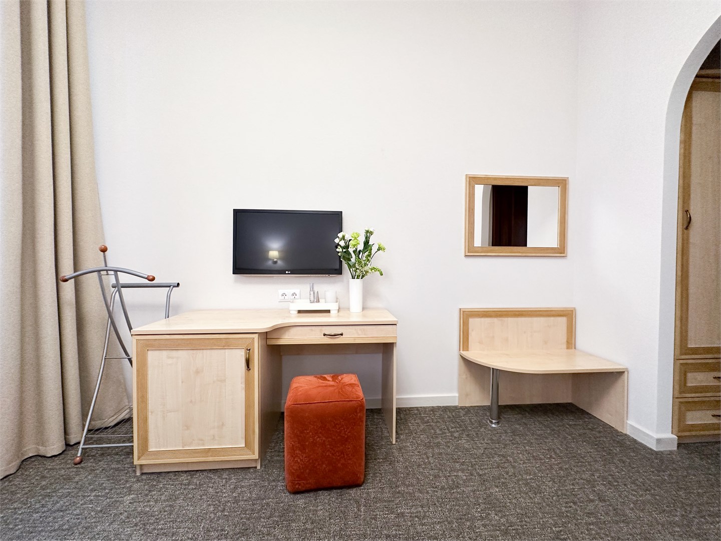 вешалка: ; зеркало: ; кровати односпальные /одна двуспальная кровать: ; прикроватные тумбочки: ; стол: ; стул: ; шкаф: ;
