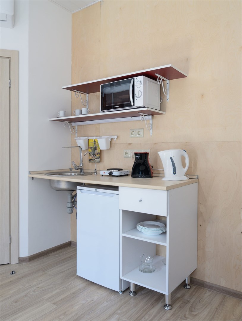 кондиционер: ; микроволновая печь: ; набор посуды: ; плита электрическая: ; телевизор: ; холодильник: ; электрочайник: ;