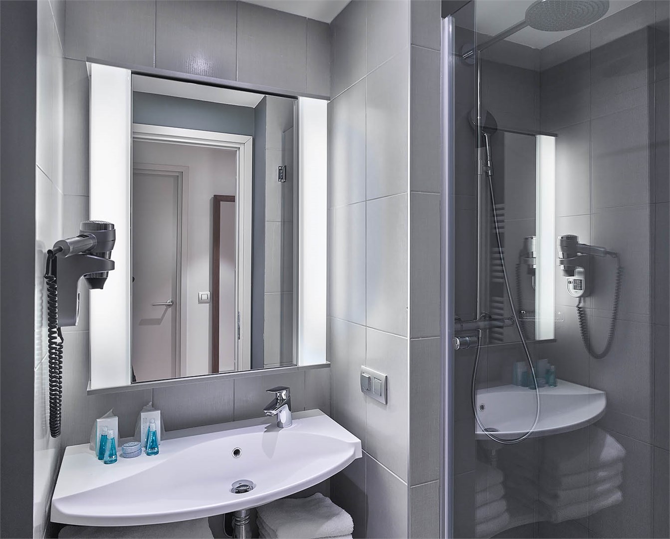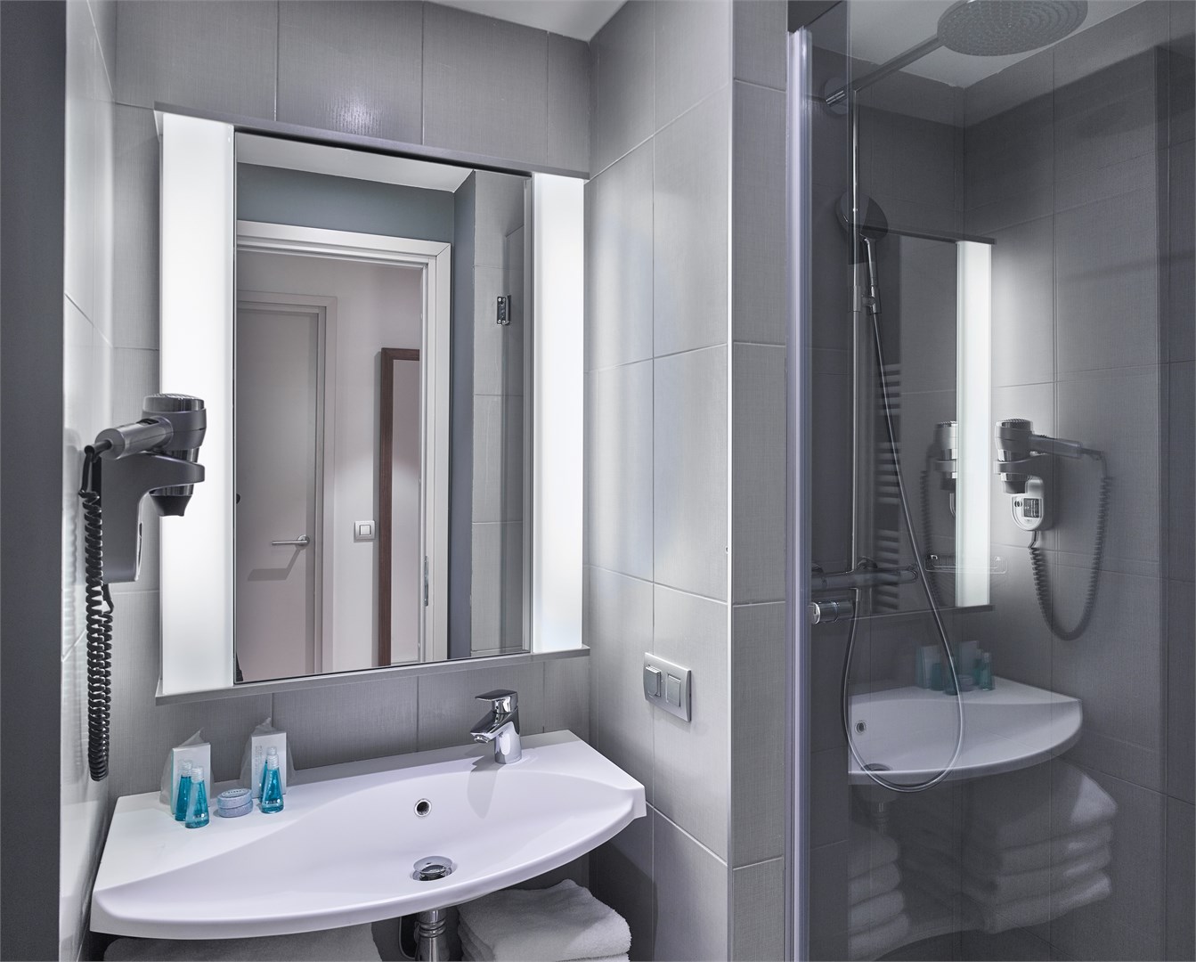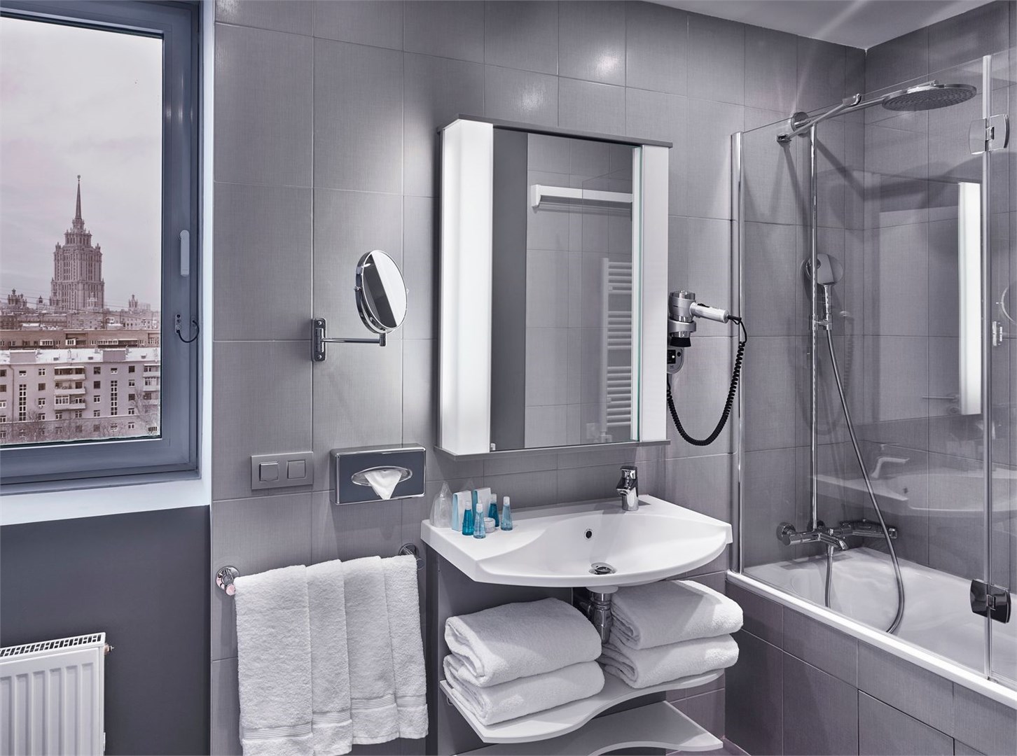 с душем или ванной: ; туалетные принадлежности: ; фен: ;