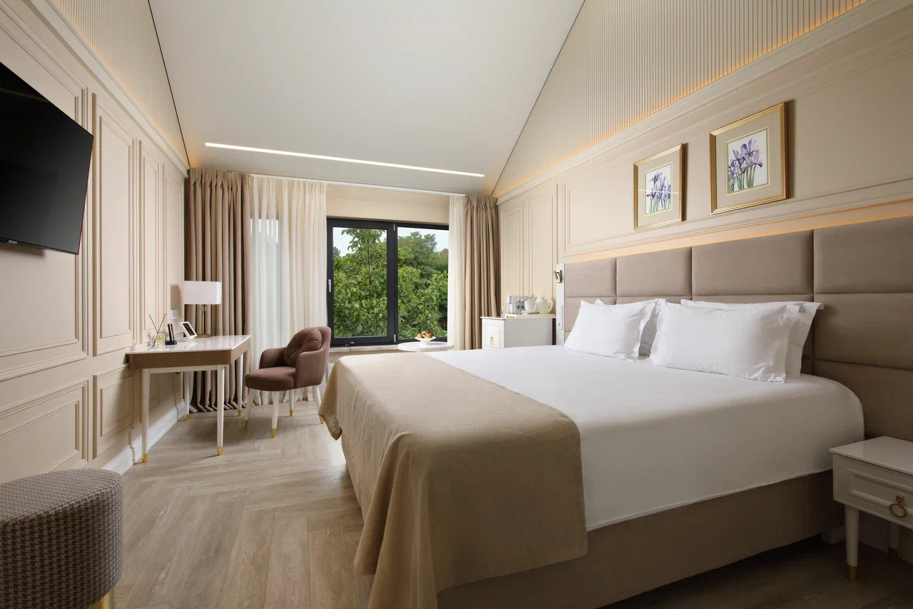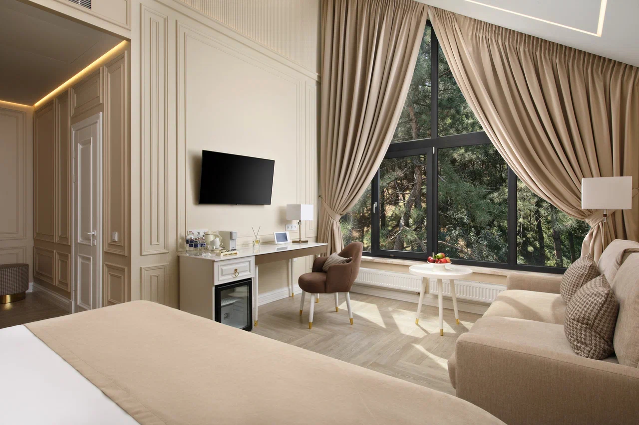 На территории отеля работает ресторан, к услугам отдыхающих – банный комплекс с крытым бассейном с джакузи и хаммамом, а также медицинский центр. В числе удобств – охраняемая парковка и беспроводной интернет.