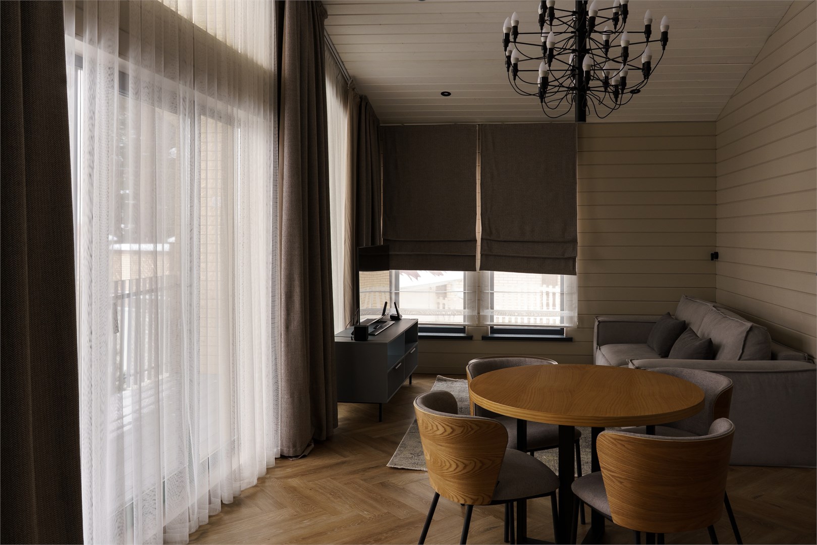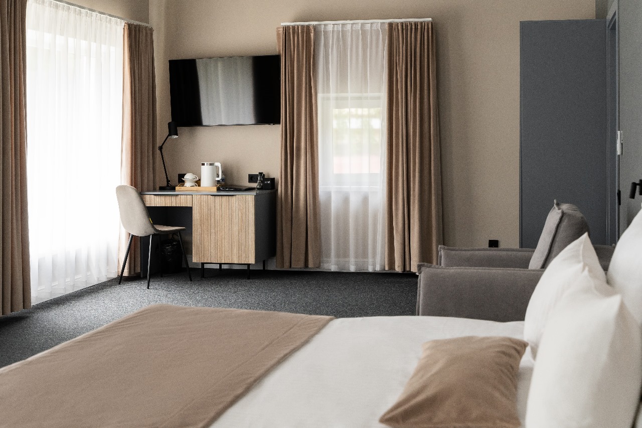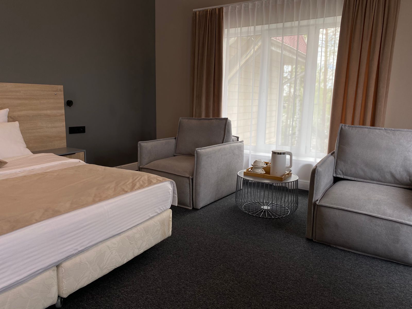 Отель занимает закрытую территорию, разместившуюся среди смешанного леса. Для размещения предлагаются комфортабельный гостиничный корпус и уютные отдельно стоящие барнхаусы. Гостей ожидают номера с классическими и функциональными интерьерами. Во всех номерах персональный санузел с душем, мини-холодильник, кондиционер и другая бытовая техника.