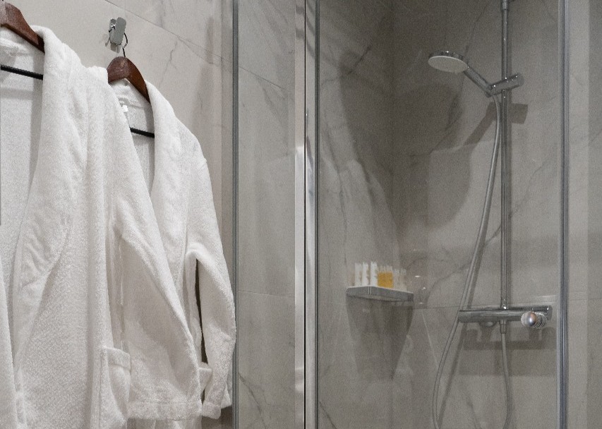 с душевой кабиной: ; тапочки: ; туалетные принадлежности: ; фен: ; халат: ;