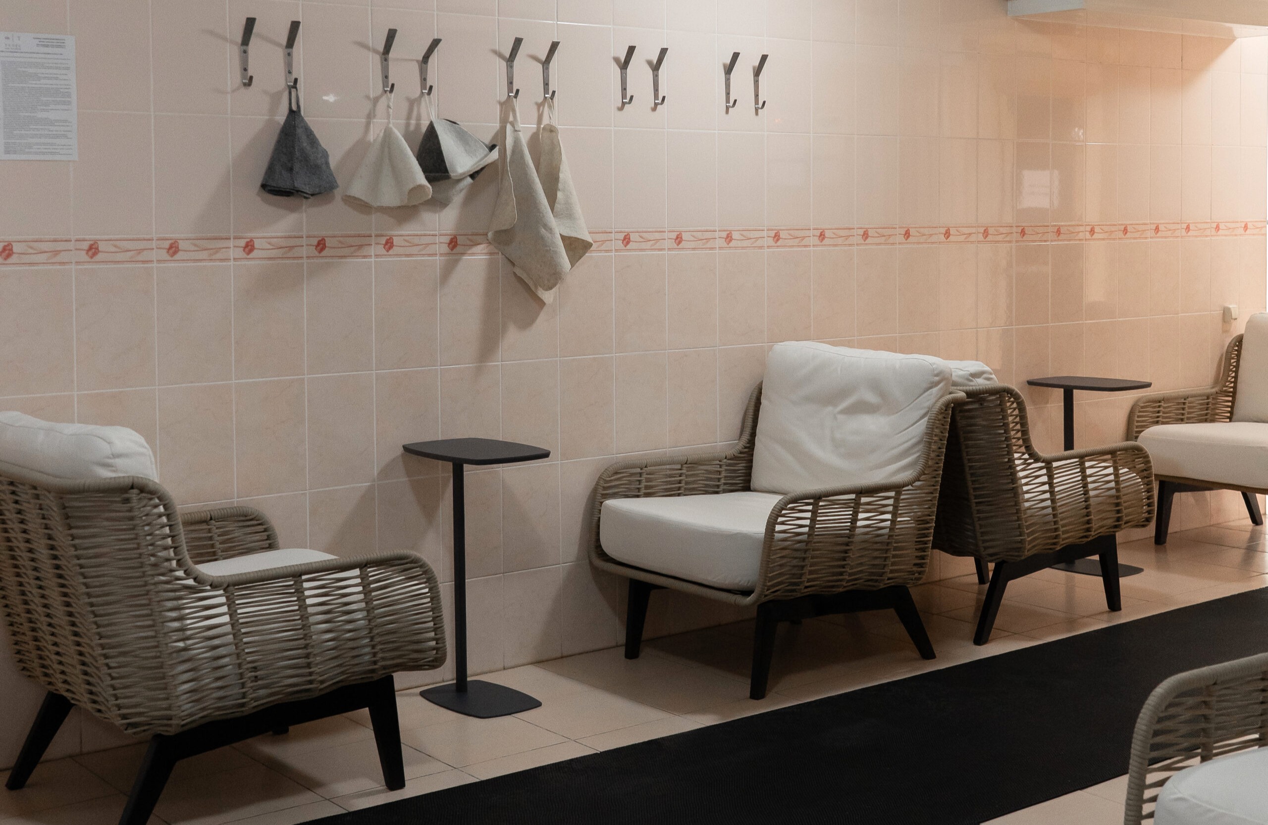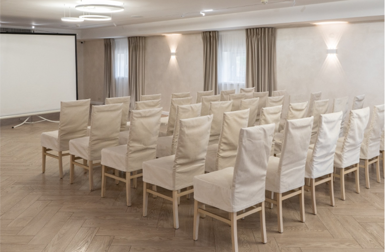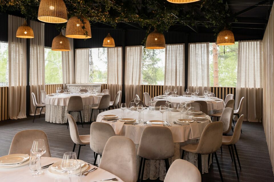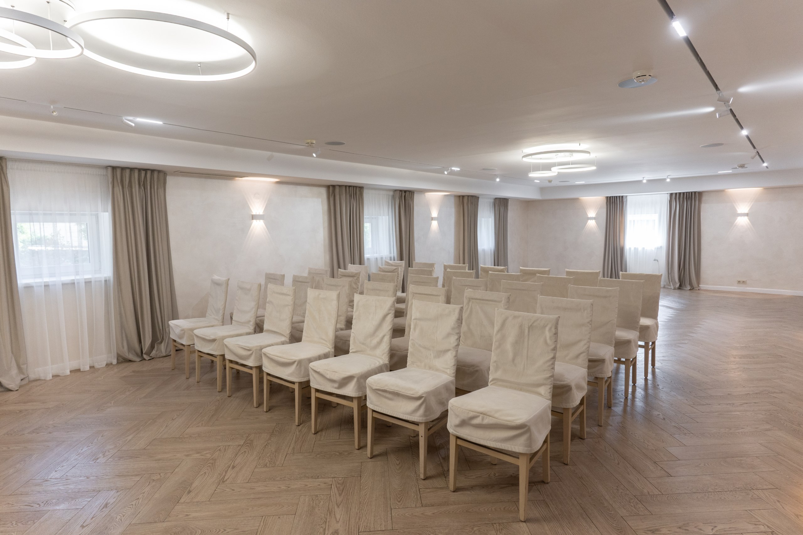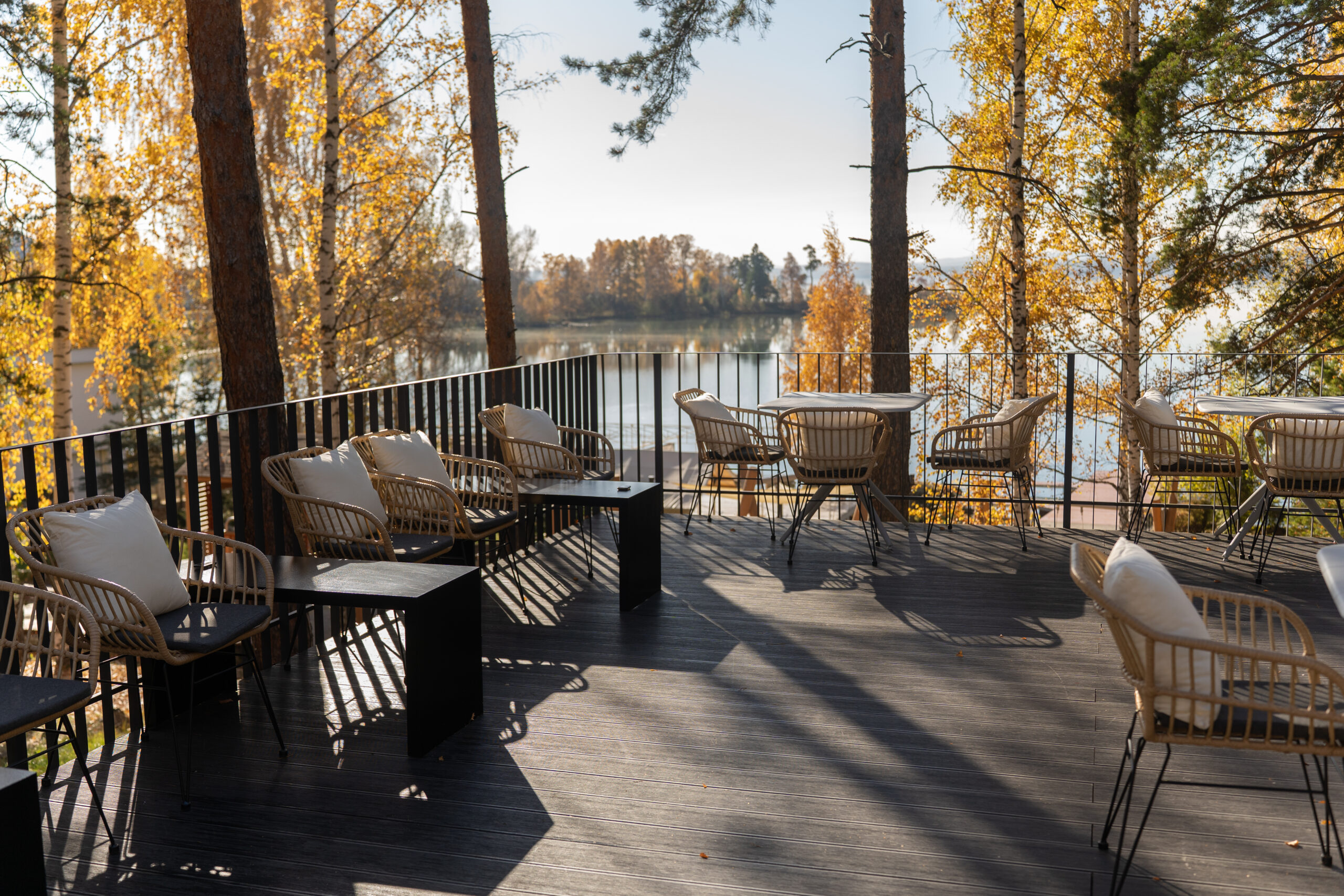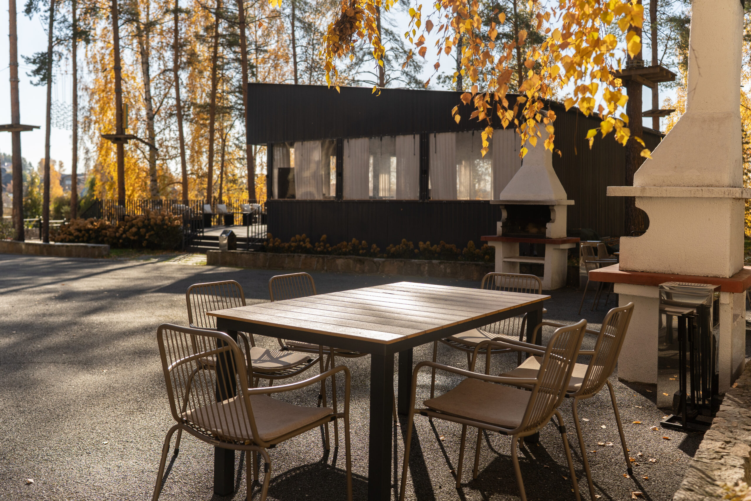 На территории работает ресторан с летней террасой и банкетным залом, где можно провести любое торжественное мероприятие. Для любителей барбекю предусмотрена зона с мангалом. В распоряжении гостей два крытых бассейна — теплый и прохладный, две финские сауны. Желающие могут отправиться на конные прогулки или арендовать спортивный инвентарь: летом — велосипеды, квадроциклы и серф-борды для прогулок по озеру, зимой — лыжи, коньки, тюбинги.