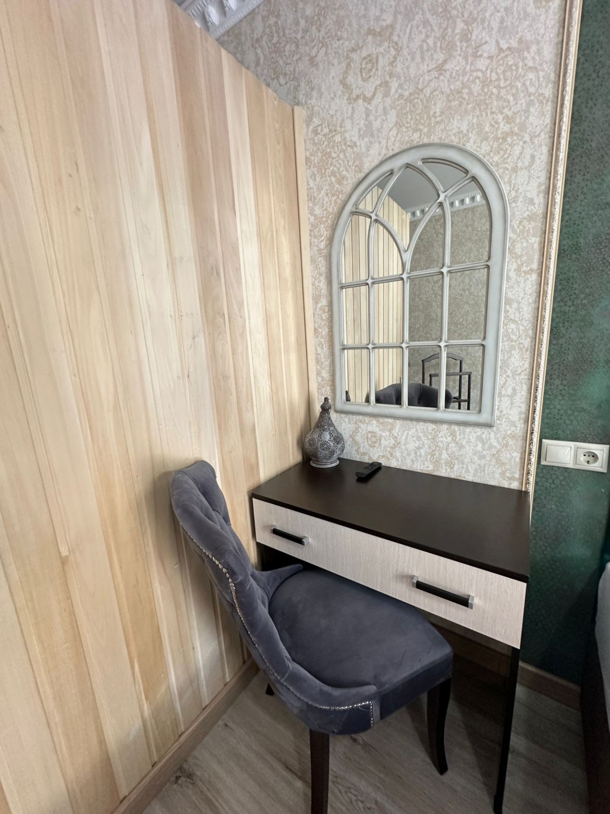 вешалка: ; зеркало: ; кровати односпальные: ; кровать двуспальная: ; прикроватные тумбочки: ; стол: ; стулья: ; шкаф: ;