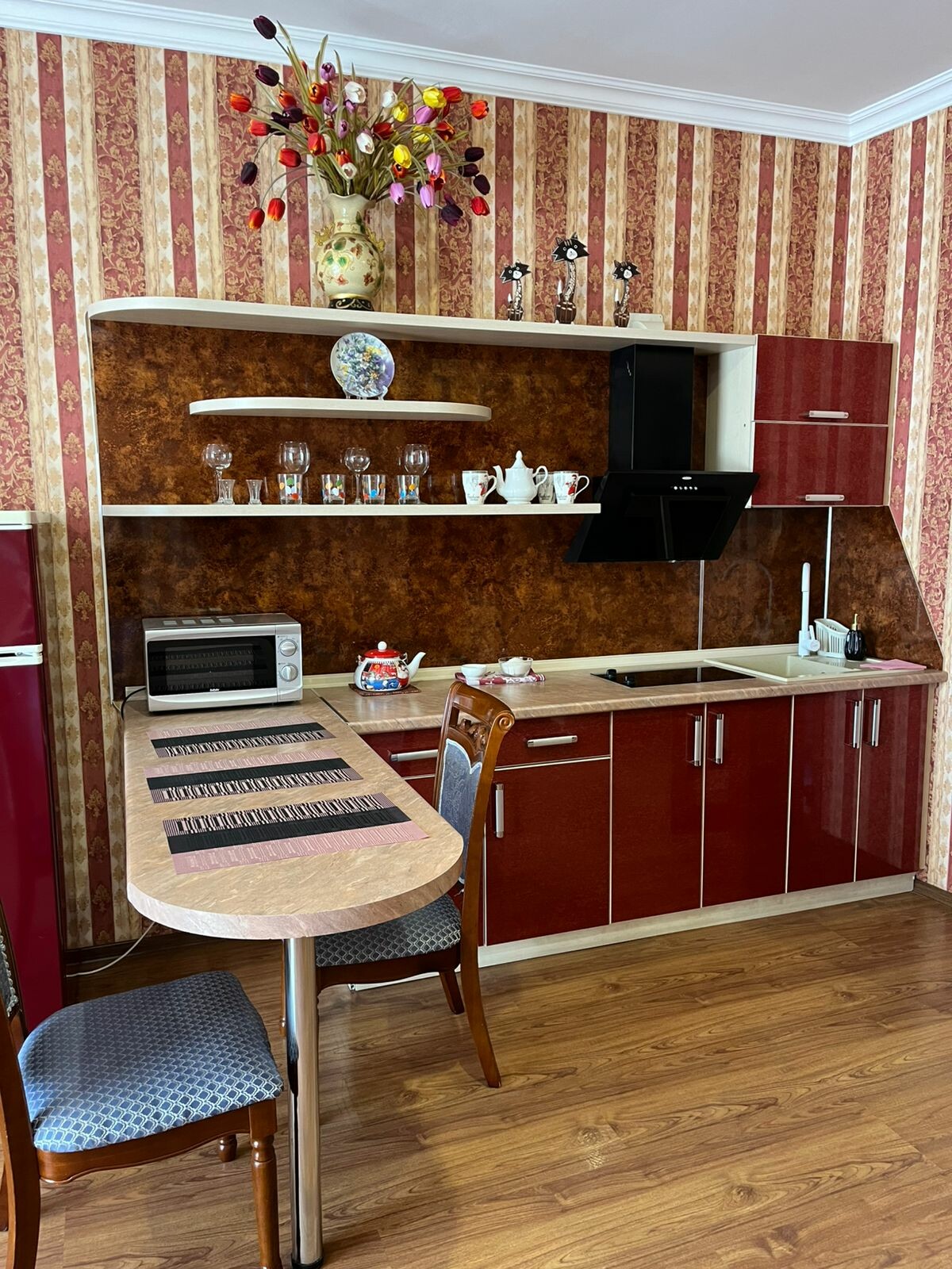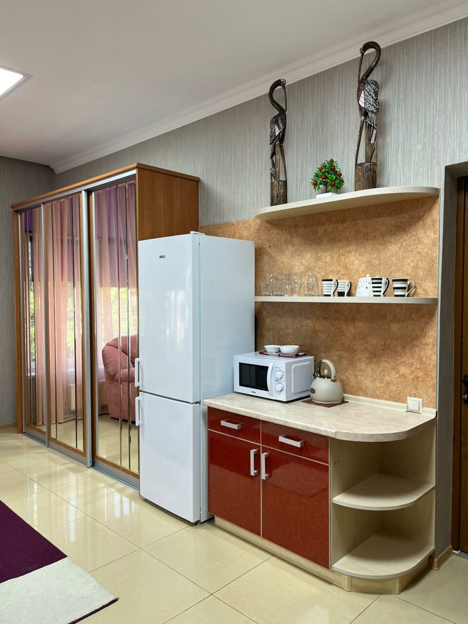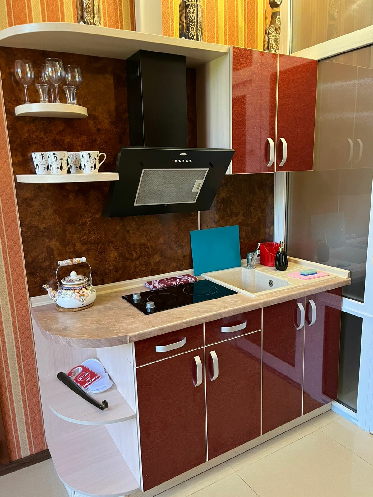 кондиционер: ; микроволновая печь: ; набор посуды: ; плита электрическая: ; телевизор: ; холодильник: ; чайник: ;