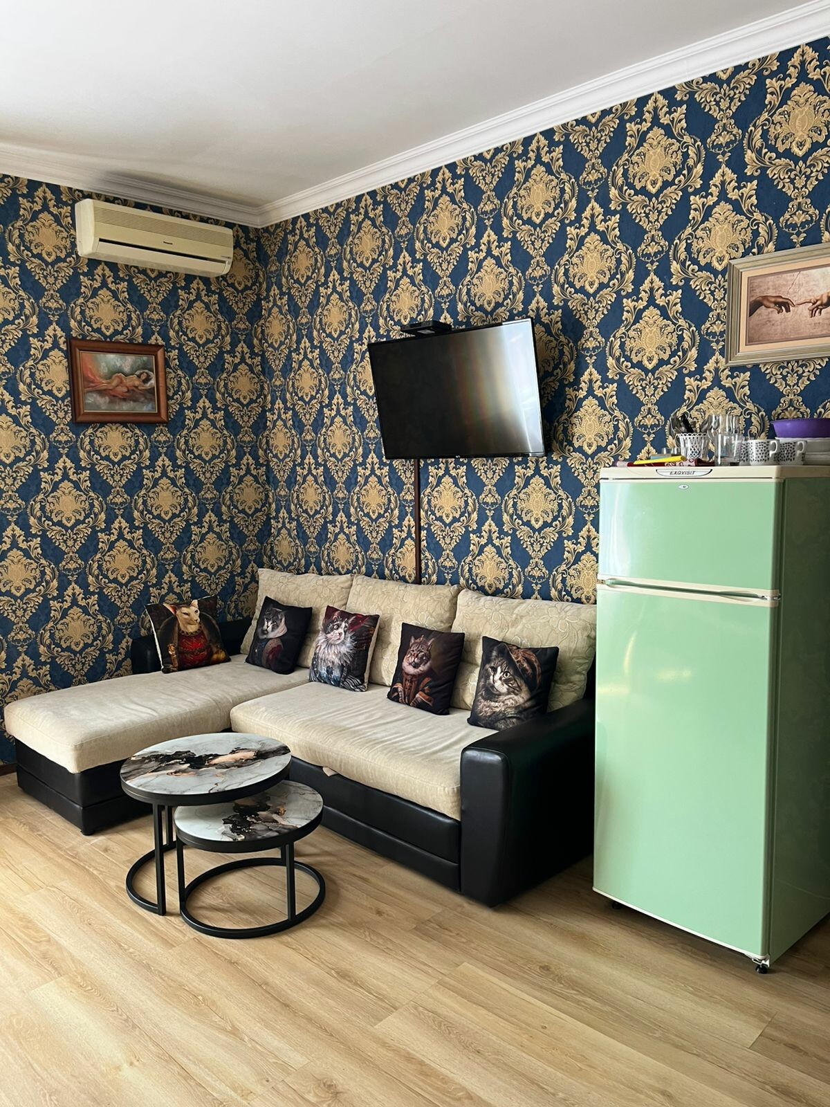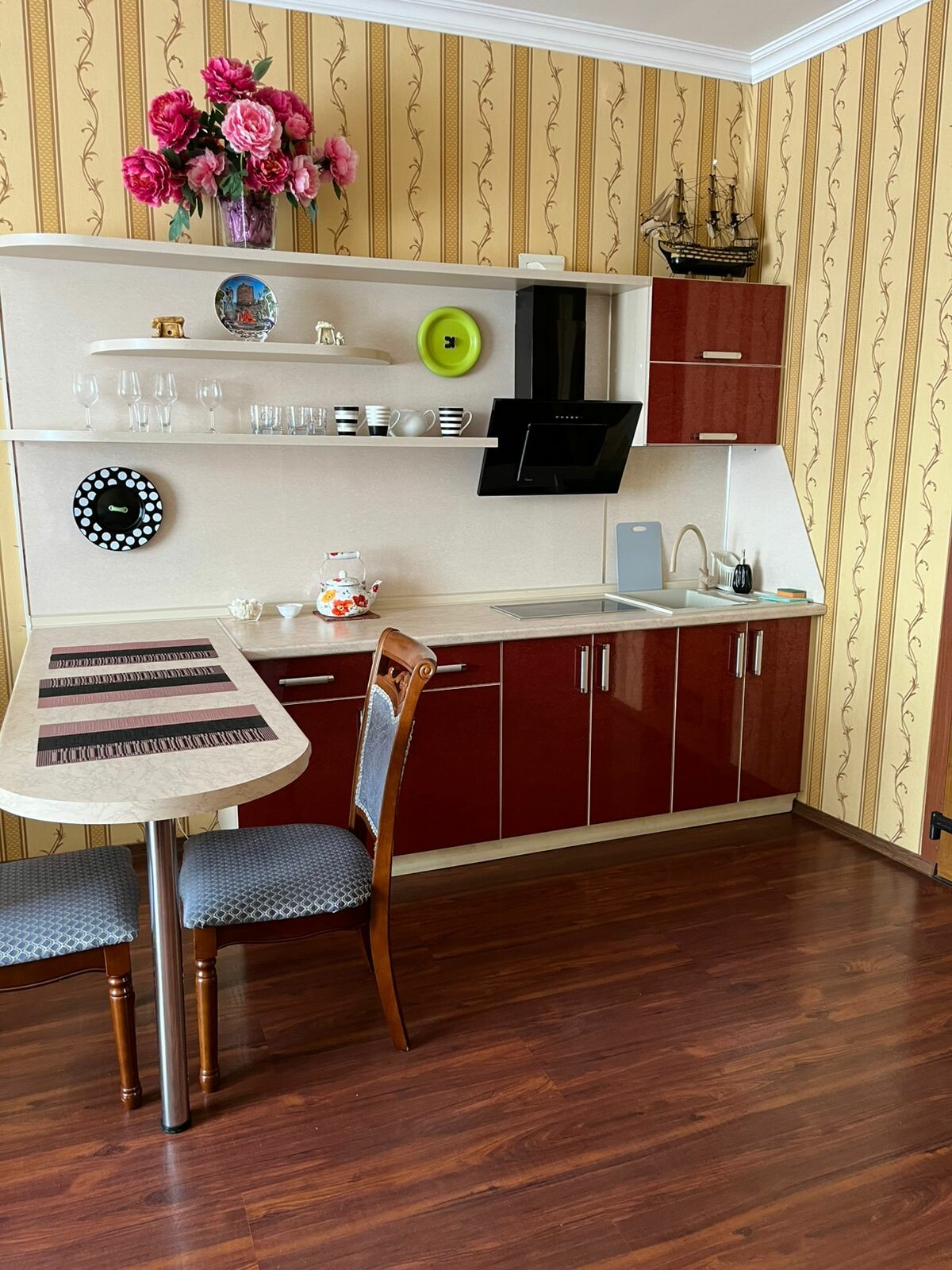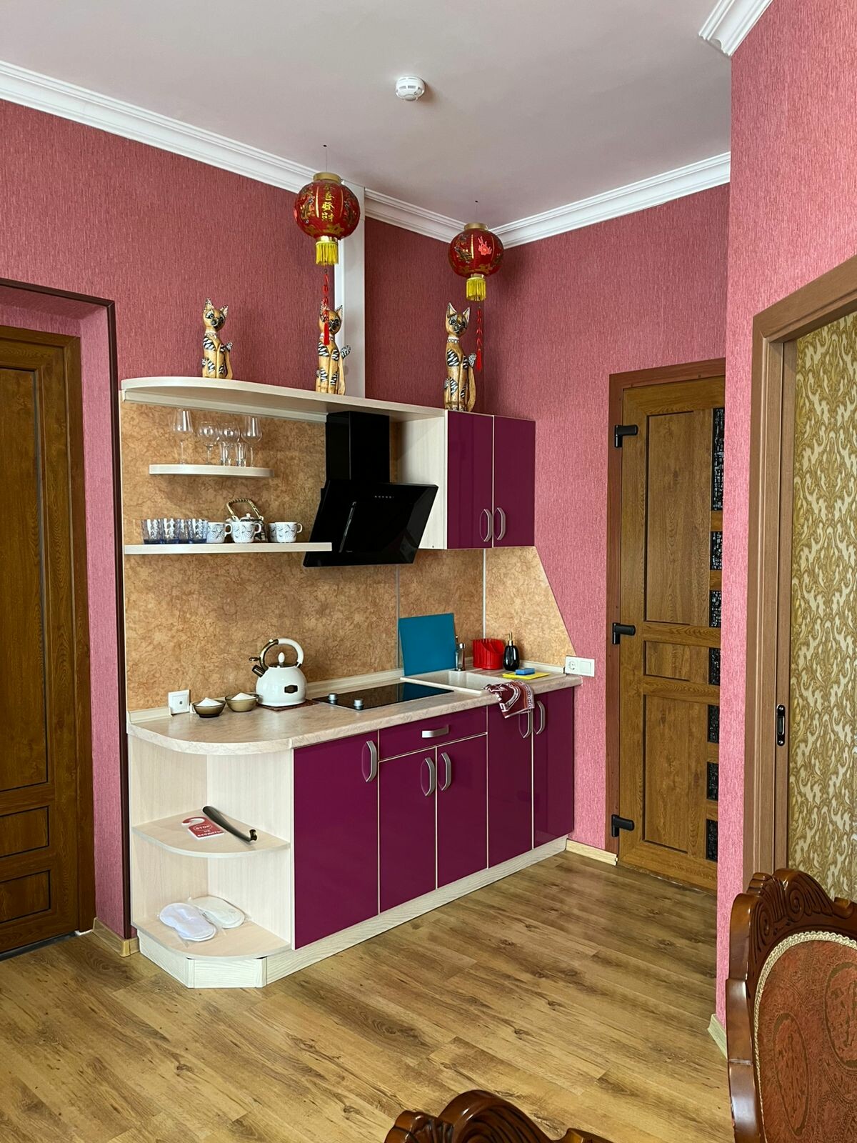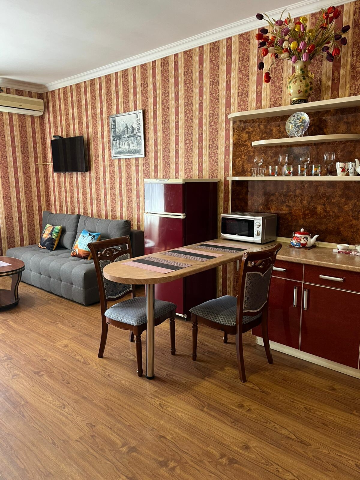 кондиционер: ; микроволновая печь: ; набор посуды: ; плита электрическая: ; телевизор: ; холодильник: ; чайник: ;