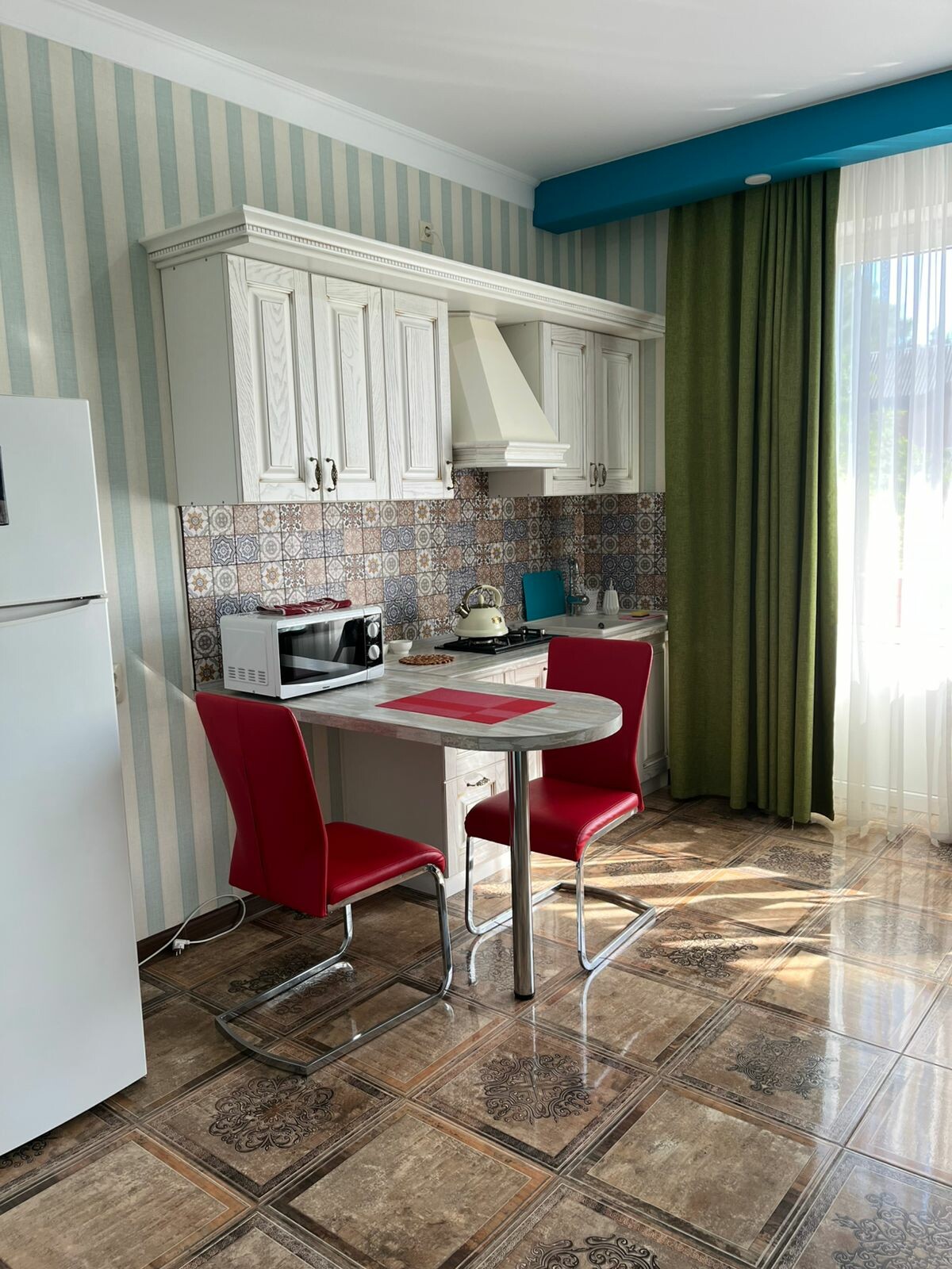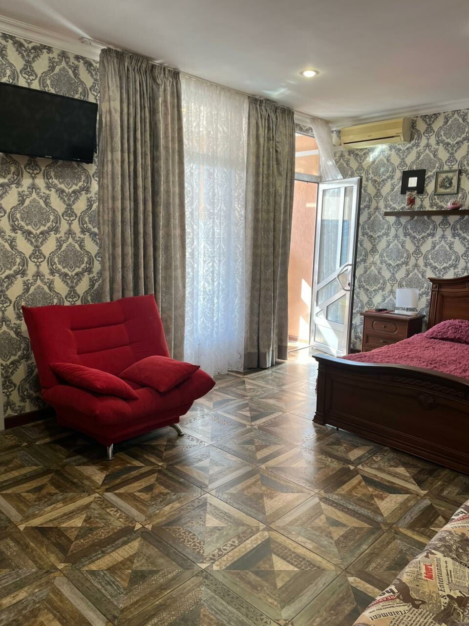 Номера разного уровня комфорта и вместимости расположились в 4-этажном здании. Комнаты оснащены удобной мебелью для отдыха, в них есть телевизор, кондиционер, чайник, холодильник. Санузел индивидуальный, с душем, туалетными принадлежностями. Некоторые номера оборудованы кухней для самостоятельного приготовления еды. Гладильные принадлежности, кулер предоставляются гостям на этаже. Личный транспорт можно оставить на парковке. Возможна установка детской кроватки в номер.