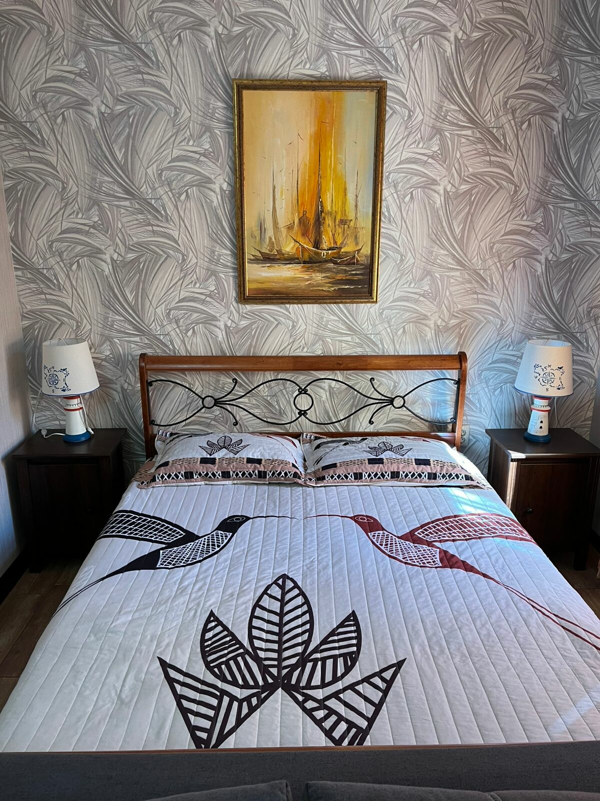 вешалка: ; диван раскладной: ; зеркало: ; кровать двуспальная: ; кухонная мебель: ; прикроватные тумбочки: ; стол: ; стулья: ; шкаф: ;