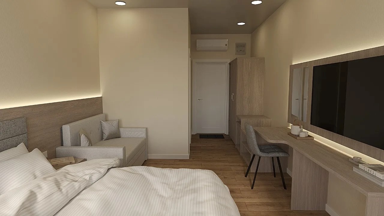 кондиционер: ; мини-холодильник: ; телевизор: ; чайный набор посуды: ; электрочайник: ;