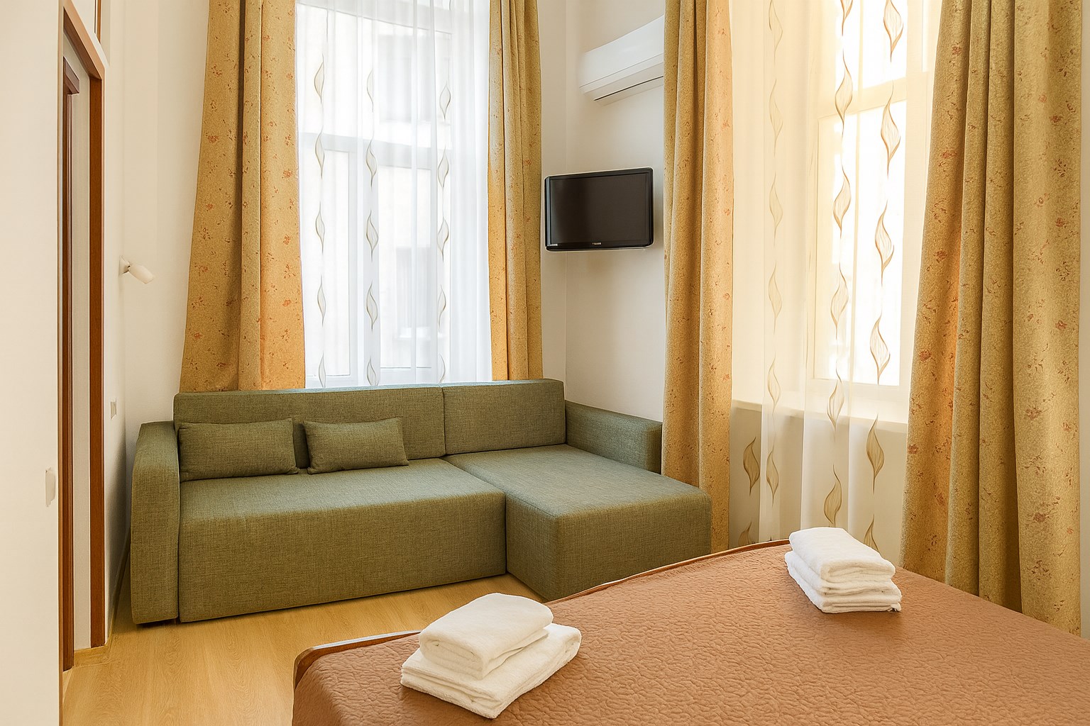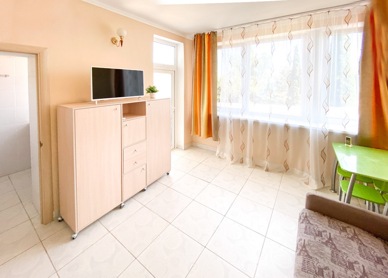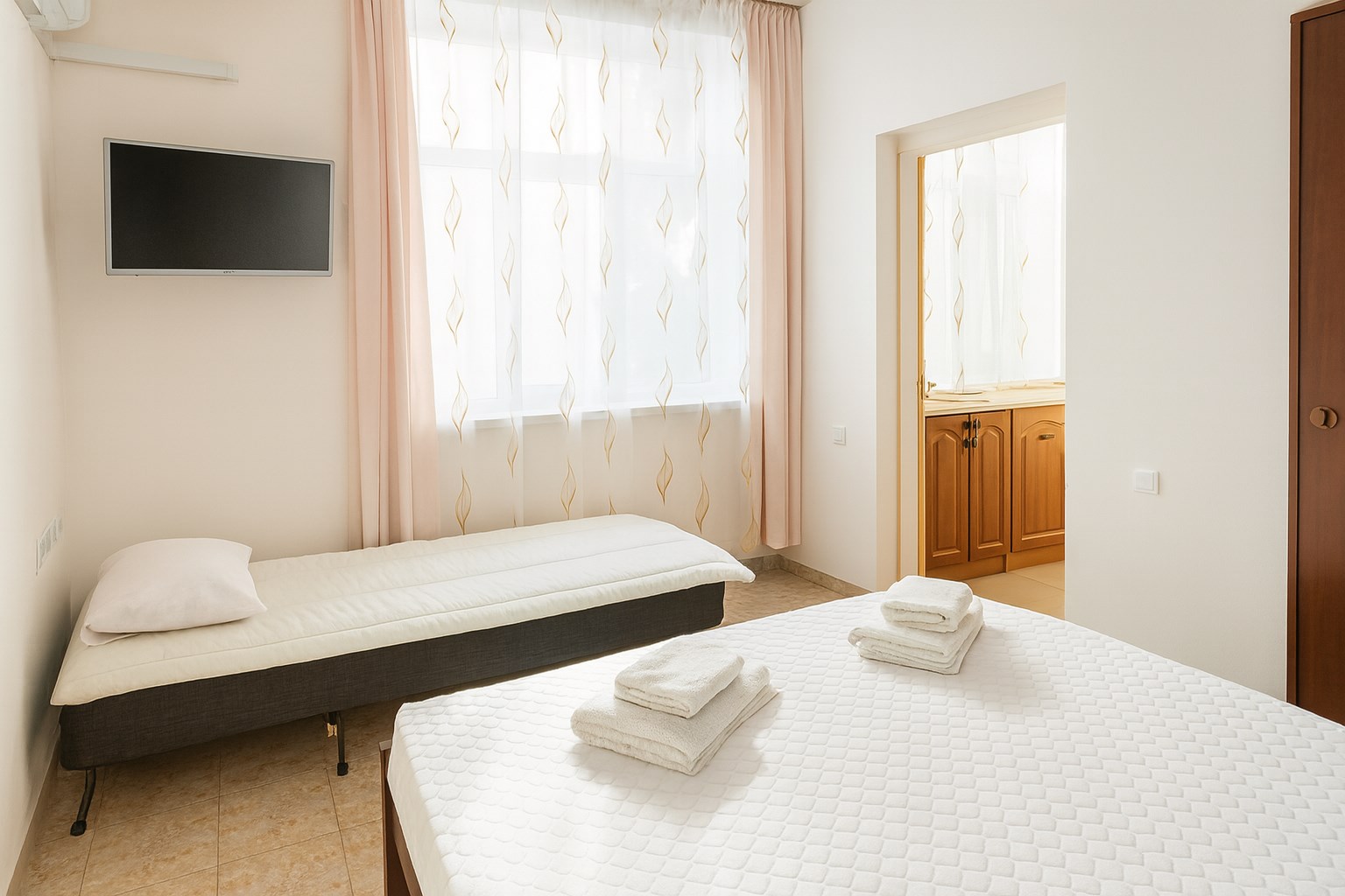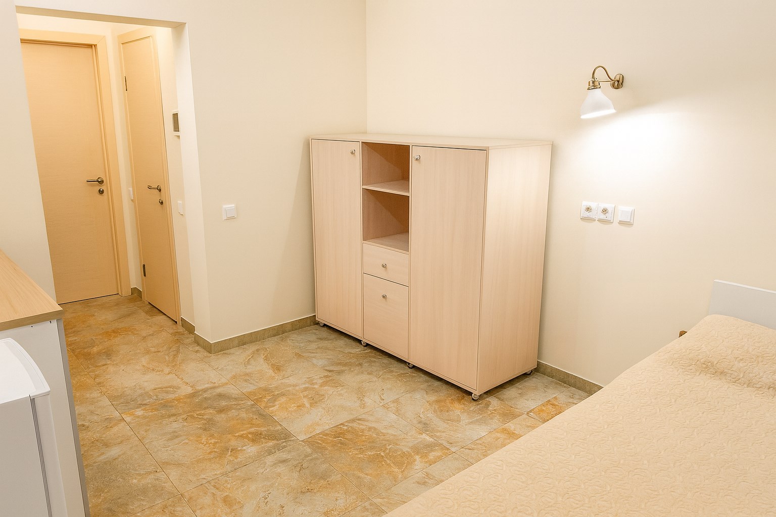 - Эконом. Базовый 3-местный 1-комнатный с мини-кухней. Площадь: 15. Осн. мест: 3. Доп. мест: 0. Всего таких номеров: 1.