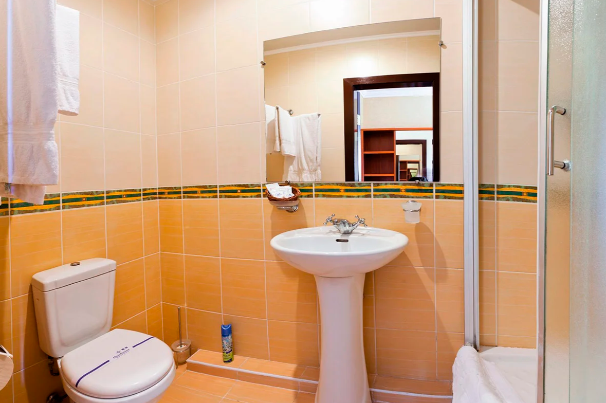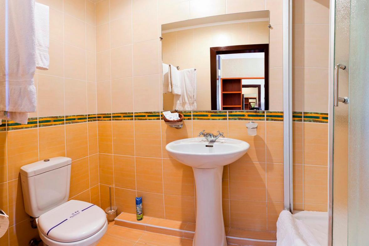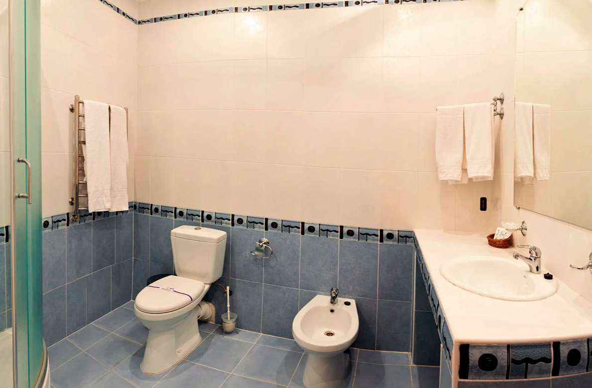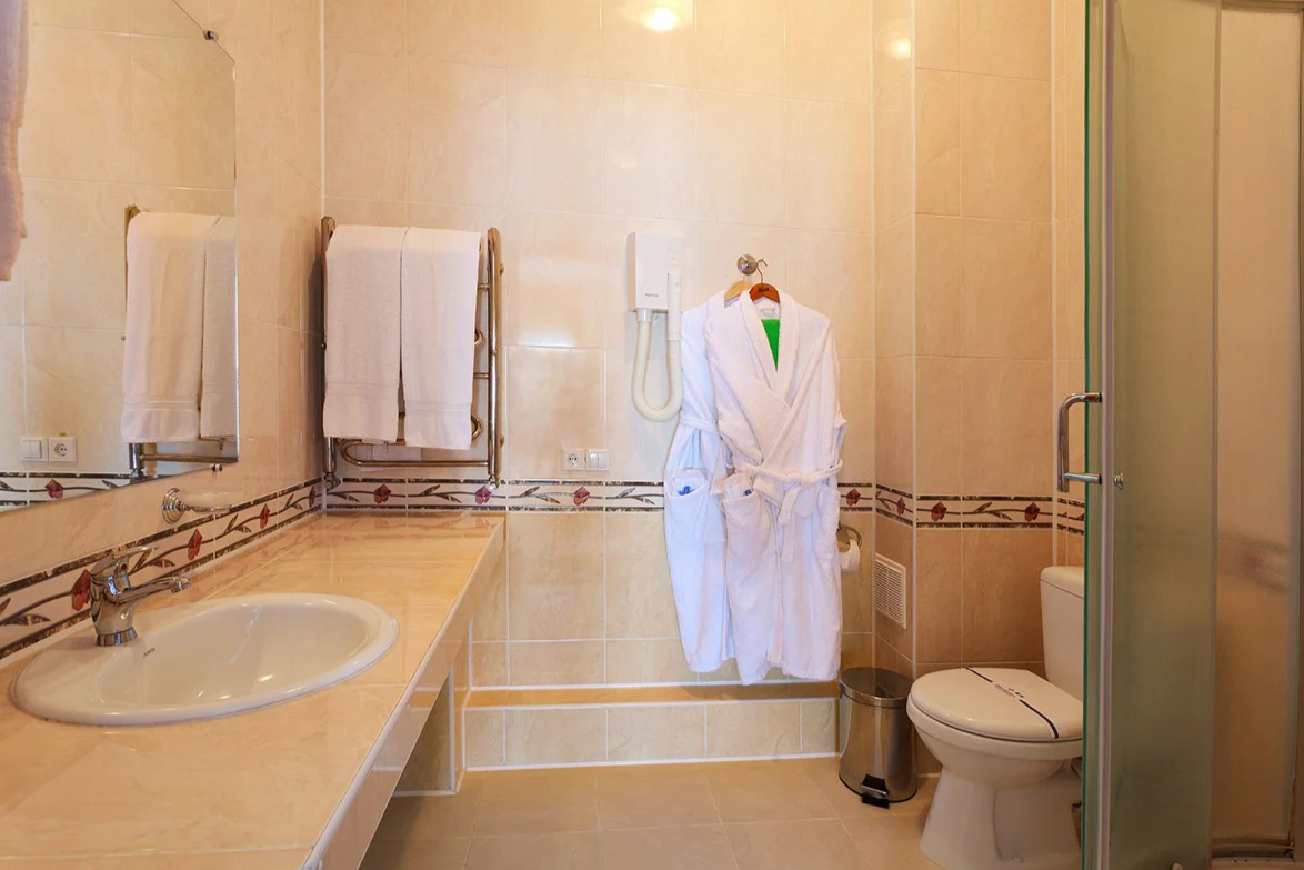 с душевой кабиной: ; туалетные принадлежности: ; фен: ;