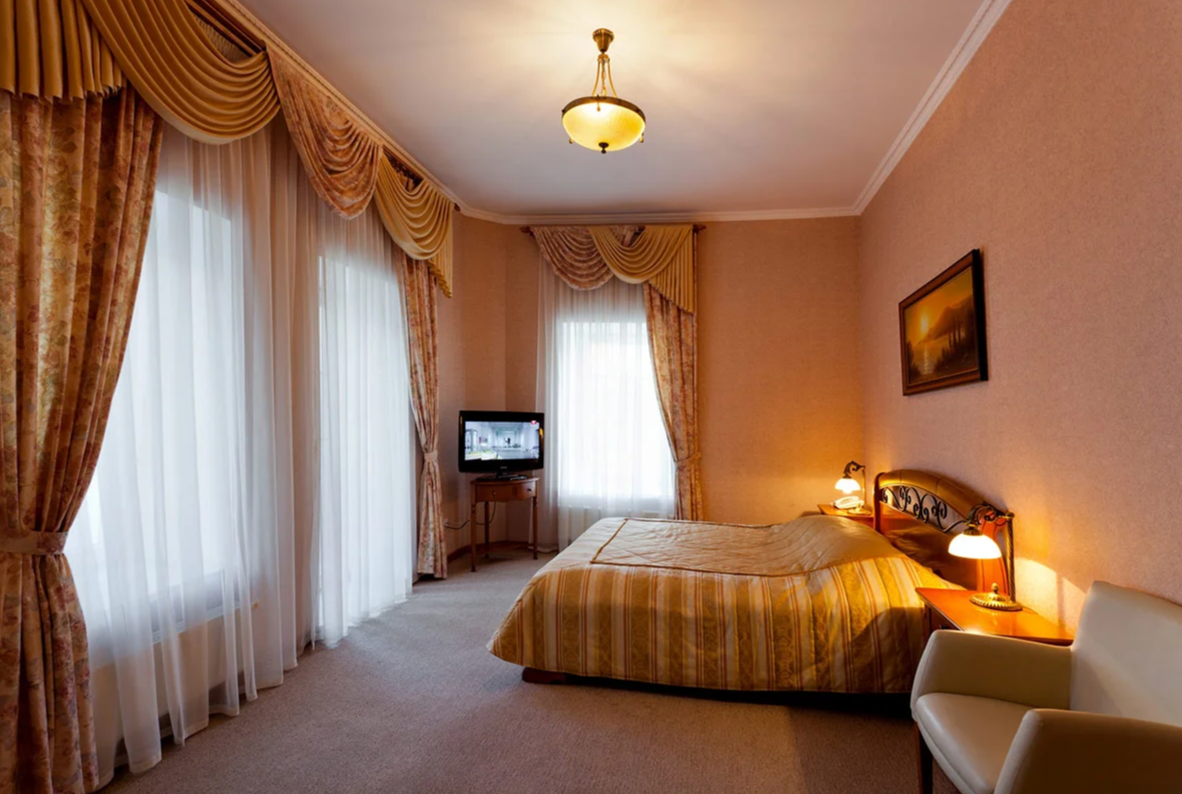 - Люкс. 2-местный 2-комнатный. Площадь: 45-70. Осн. мест: 2. Доп. мест: 2. Всего таких номеров: 2.