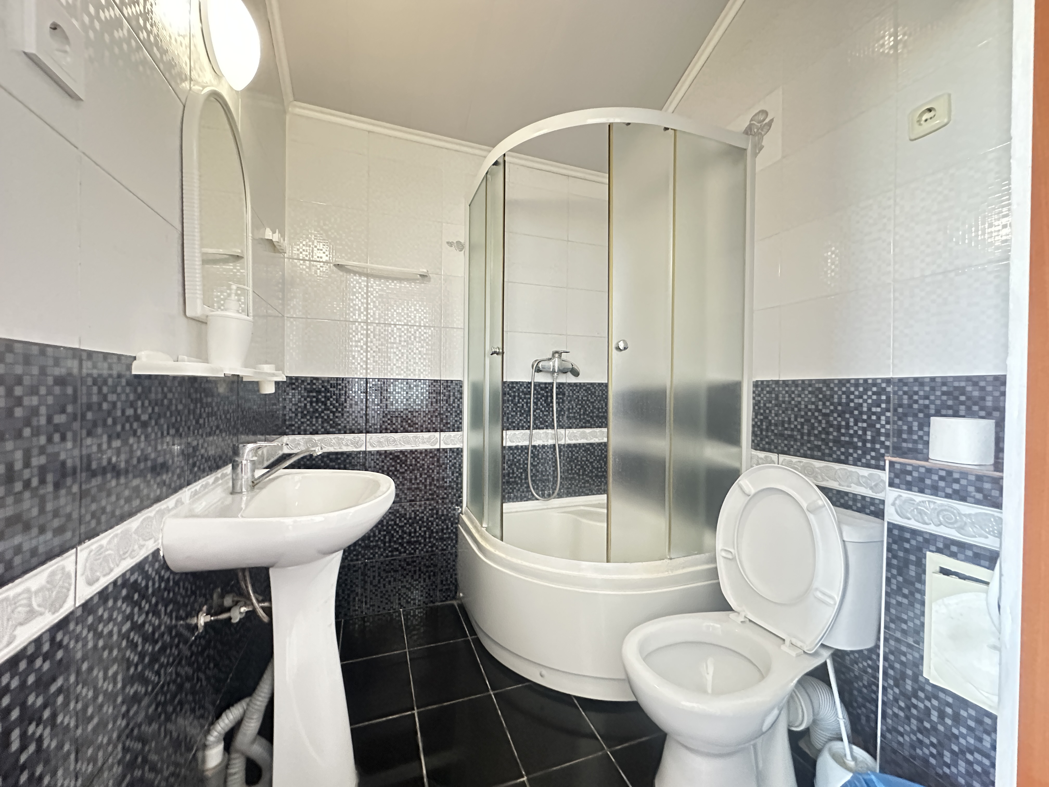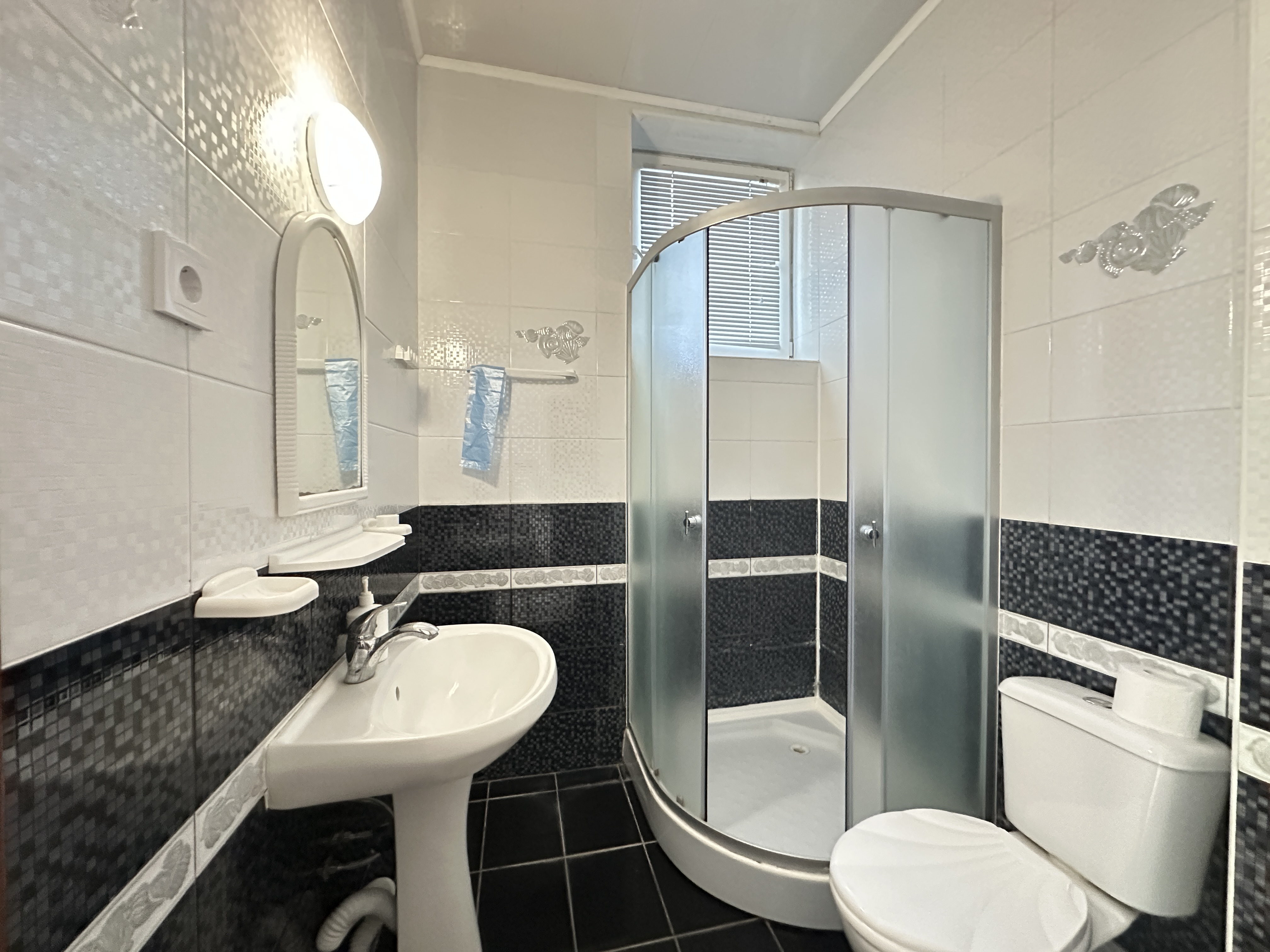 с душем: ; туалетные принадлежности: ;