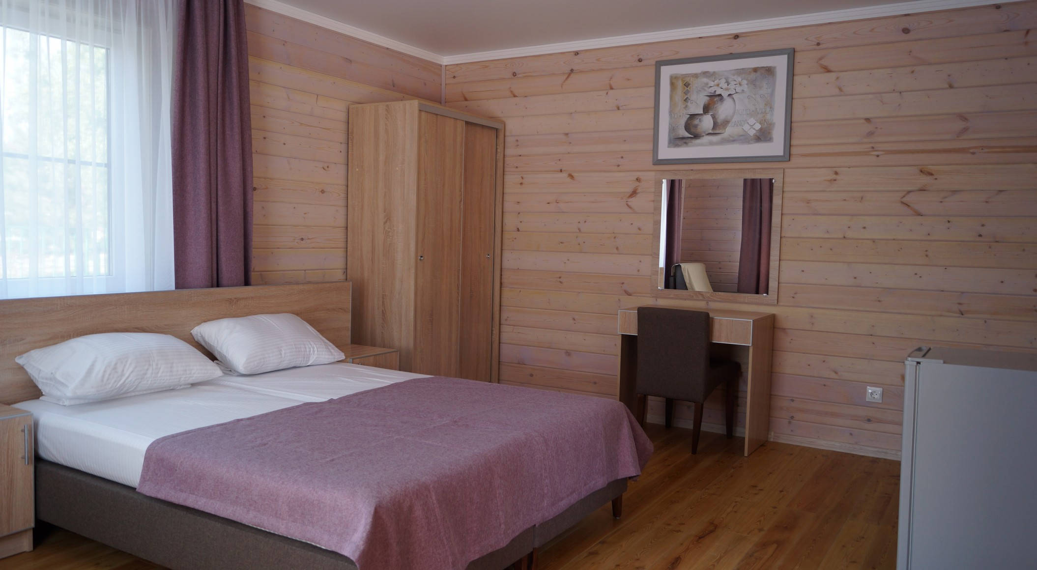 - Комфорт. 2-местный (финский домик). Площадь: 13-14. Осн. мест: 2. Доп. мест: 0. Всего таких номеров: 16.