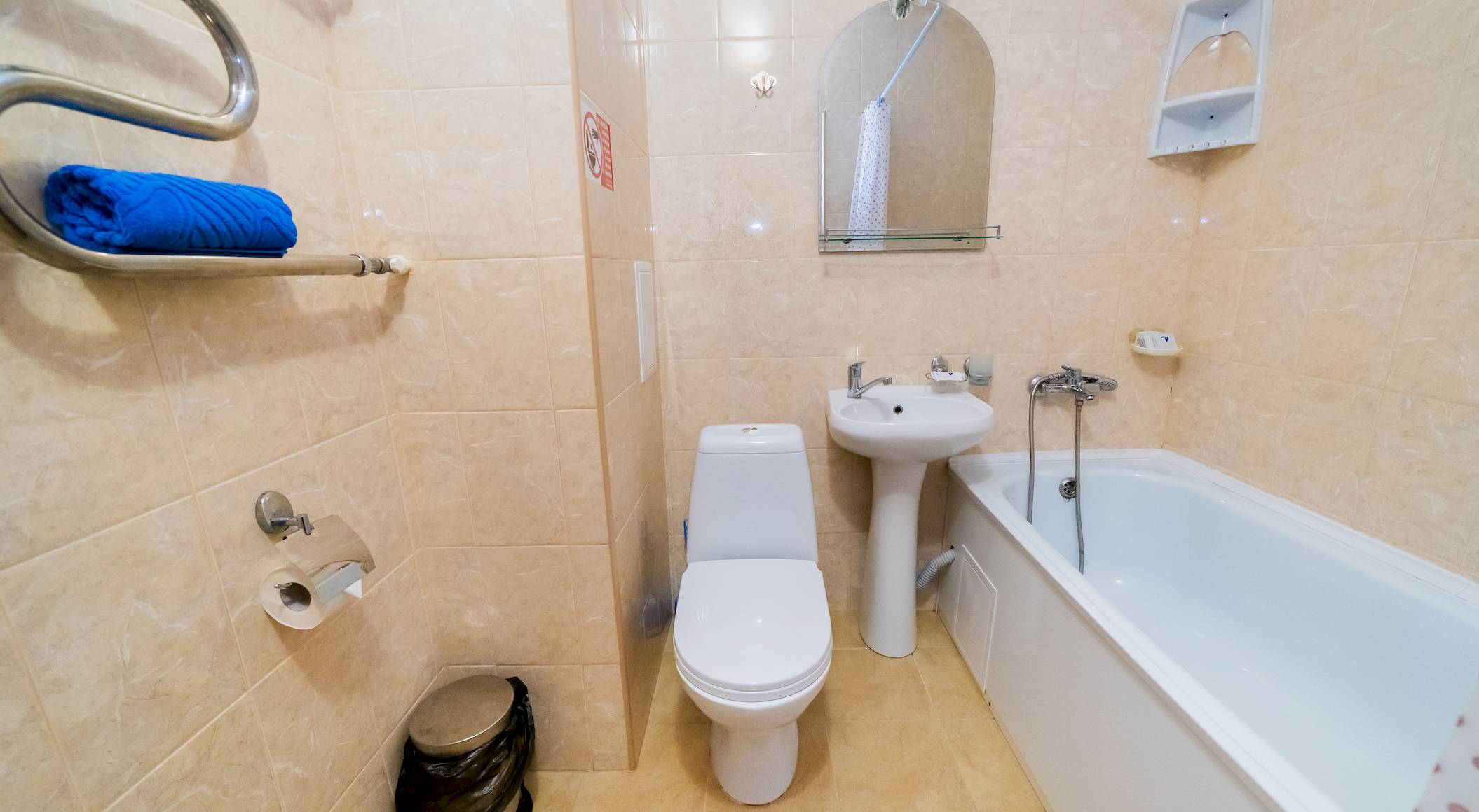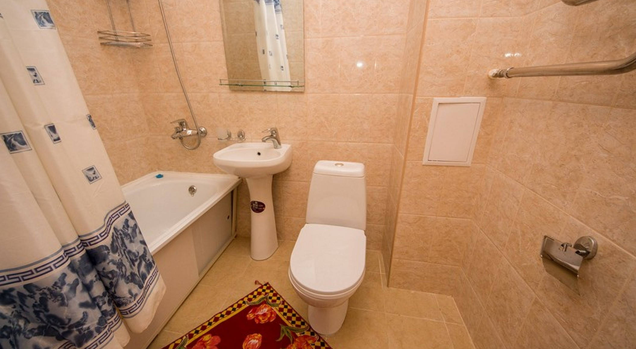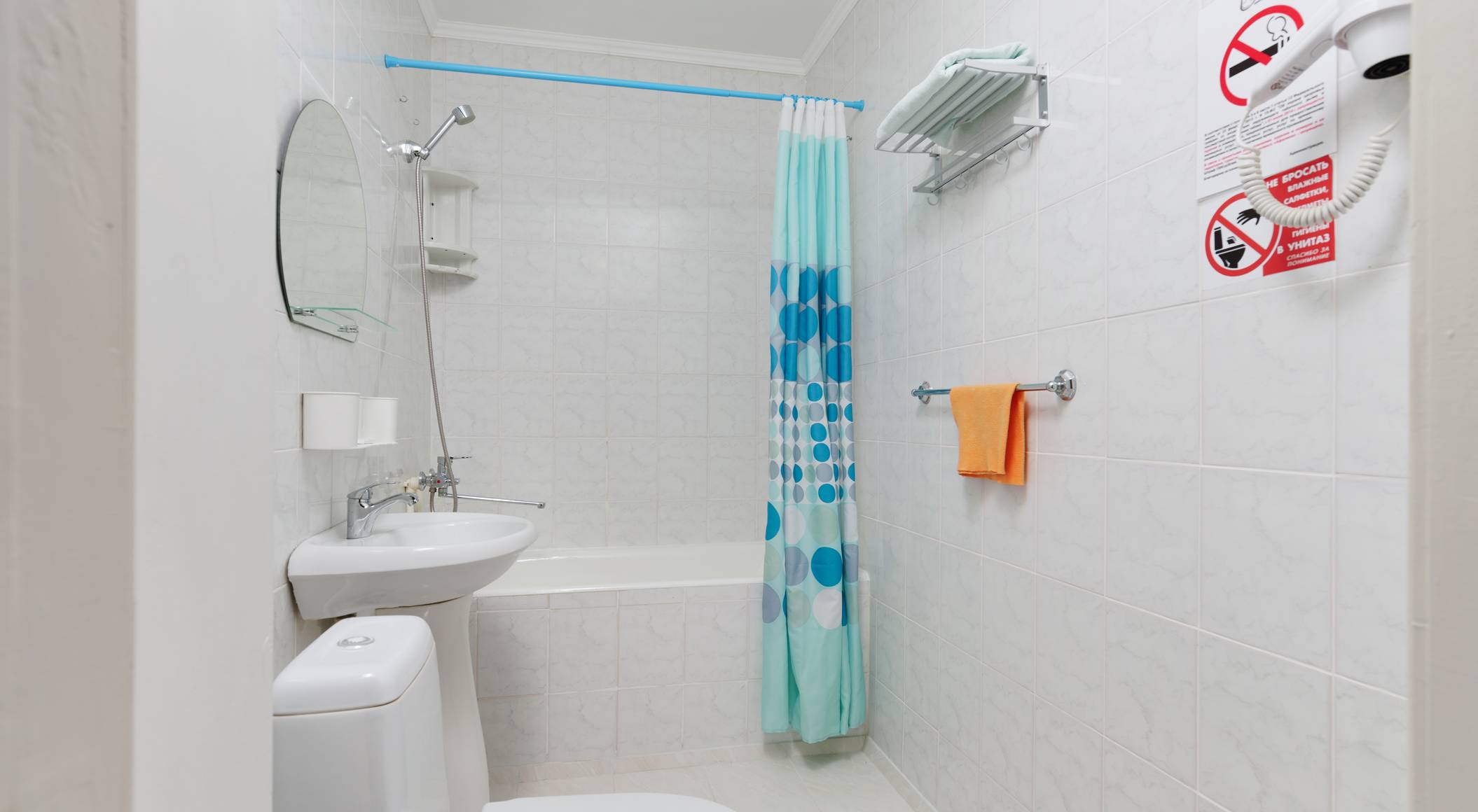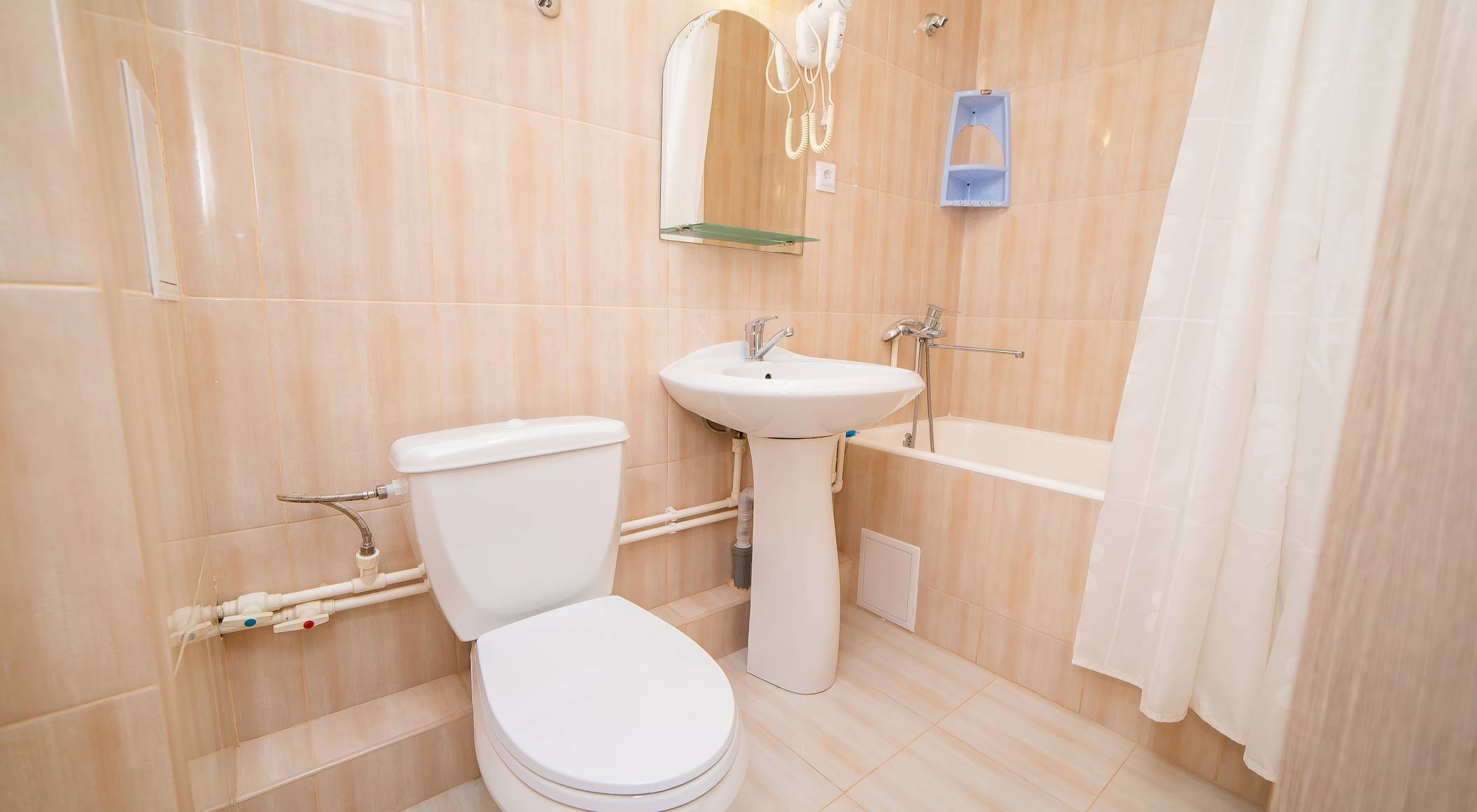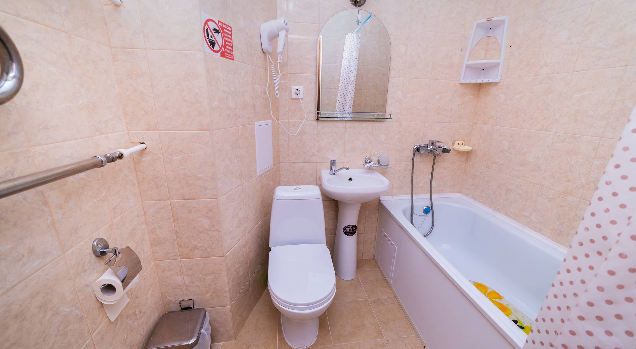с ванной: ; туалетные принадлежности: ; фен: ;