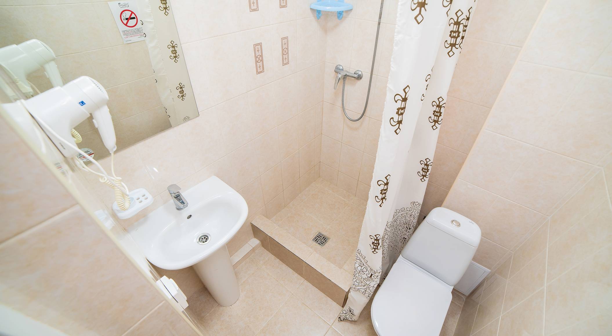 с душевой кабиной: ; туалетные принадлежности: ; фен: ;