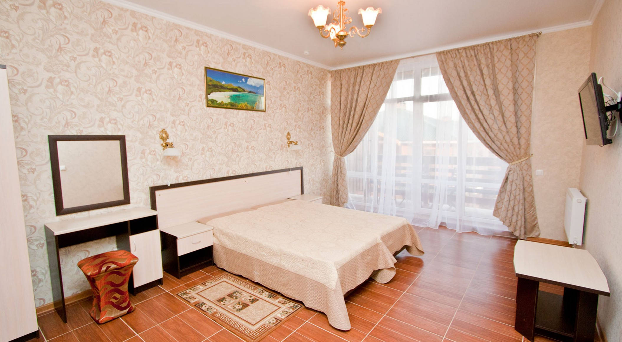 Номера туристического комплекса разной категории способны одновременно вместить более 300 человек. Они уютно меблированы и отделаны природными материалами, выдержанными в приятной золотистой гамме. В каждом номере есть собственный санузел с ванной или душевой кабиной, кондиционер и электрочайник, набор посуды, холодильник, и телевизор, другие удобства. Каждый имеет отдельный балкон с мебелью и сушилкой для полотенец и белья. Wi-Fi доступен на всей территории комплекса.