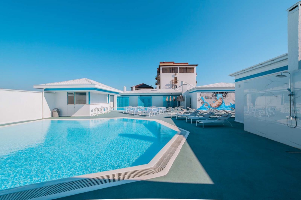 Изюминкой отеля являются бассейны с подогревом, которые расположены на крыше отеля (3 этаж) и имеют шикарный вид на море под открытым небом с релакс-зоной и баром. Для детей и взрослых в отеле проводится ежедневная анимация, различные мастер классы, интерактивные игры, викторины, караоке батлы и многое другое. Юным гостям полагаются льготы на пребывание в отеле. В отеле для детей имеется детская игровая площадка и детская игровая комната.