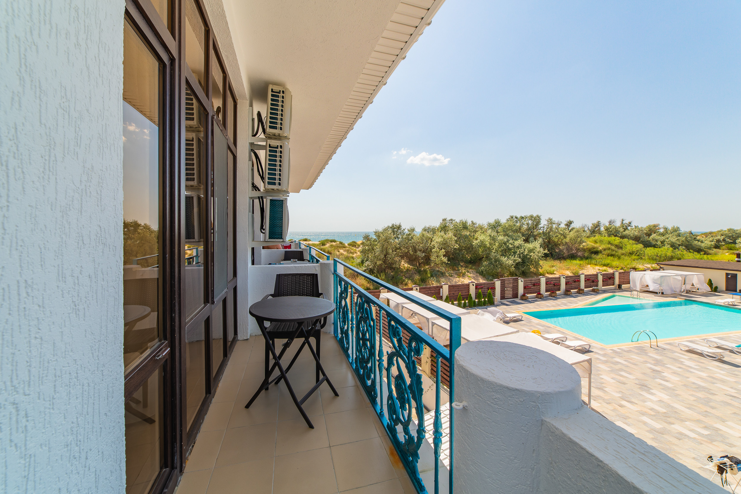 - Стандарт. 2-местный DBL с видом на море. Площадь: 25. Осн. мест: 2. Доп. мест: 1. Всего таких номеров: 8.