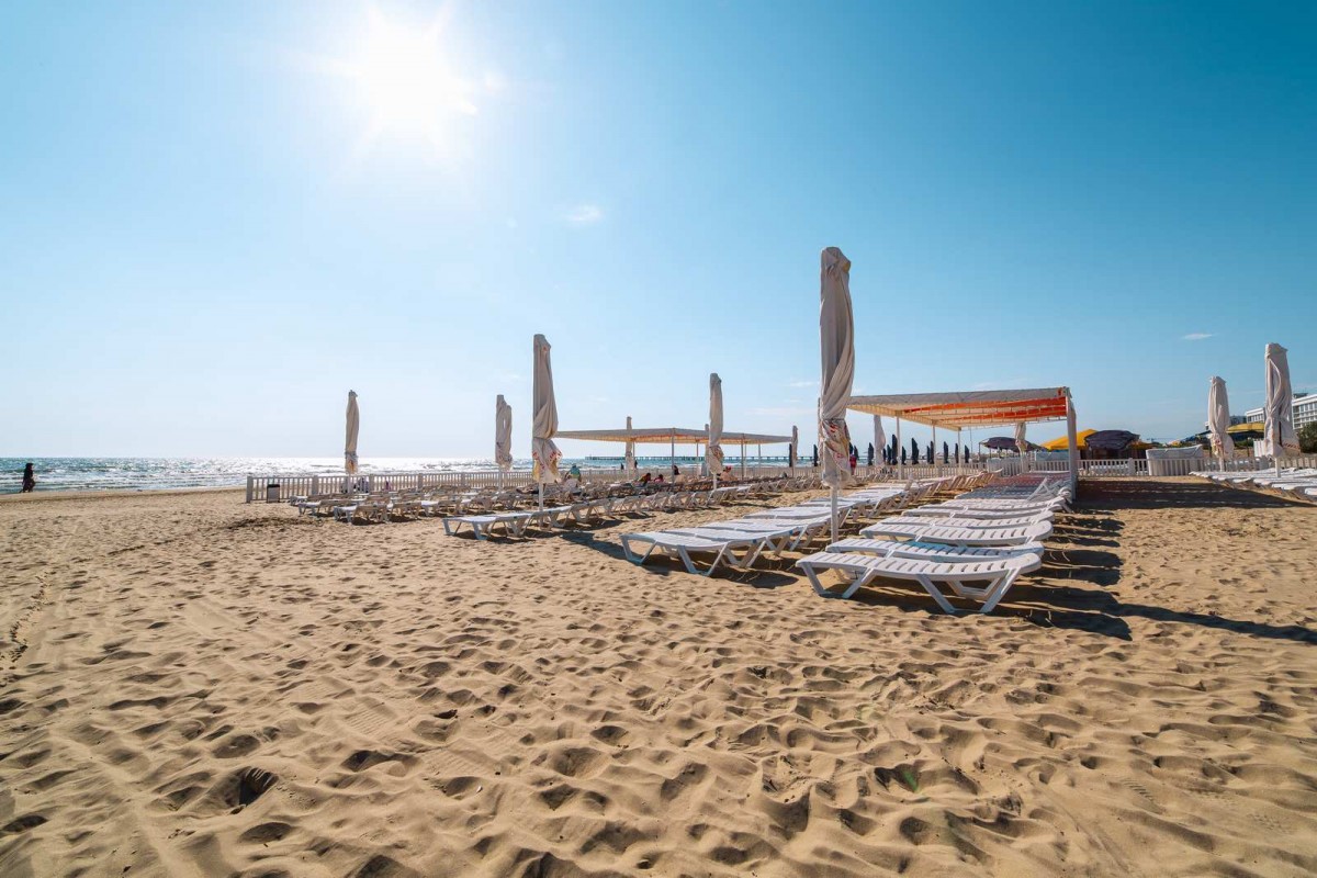 Отель расположен на 1 береговой линии, сразу за отелем в 50 метрах имеется оборудованный собственный пляж