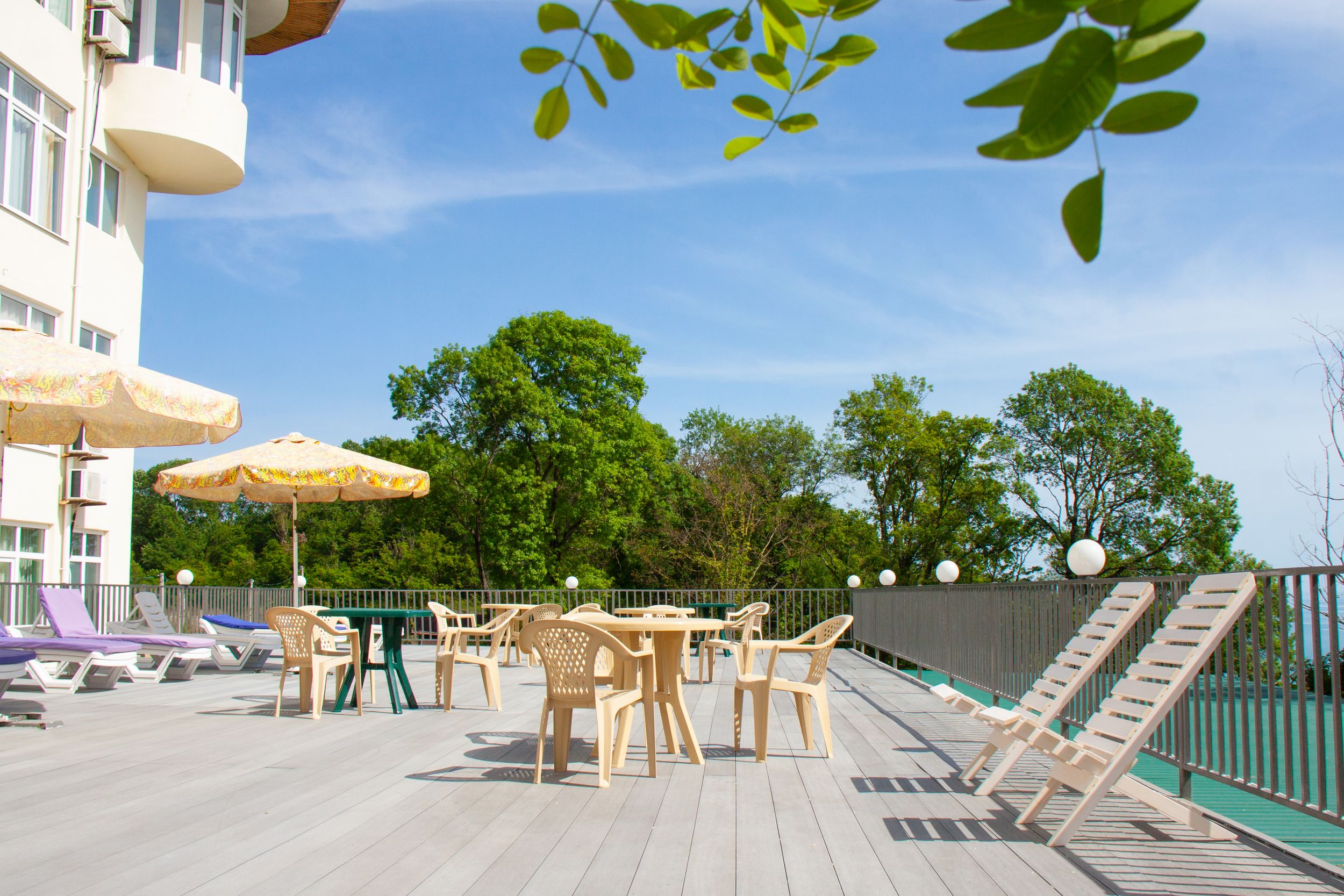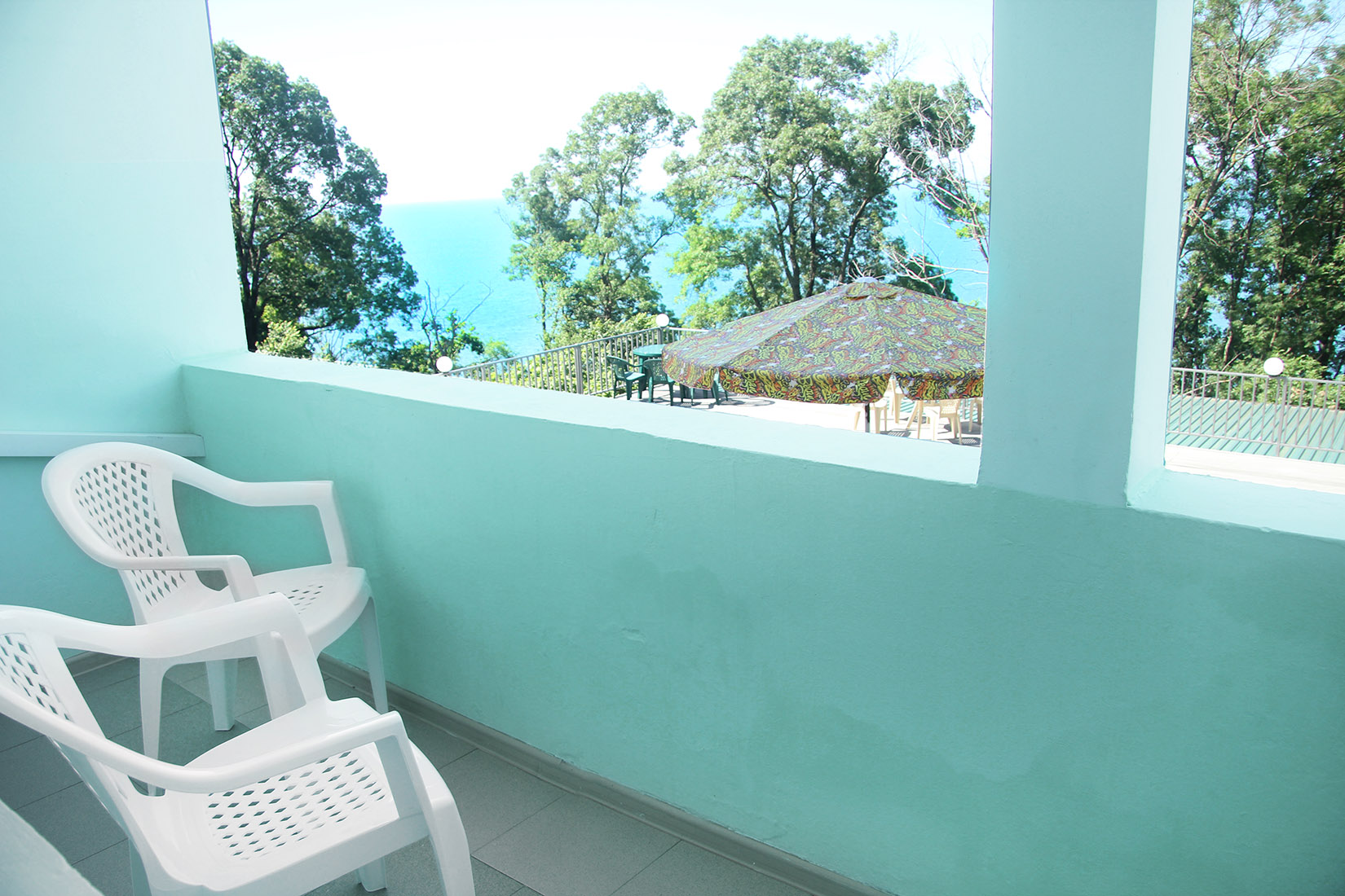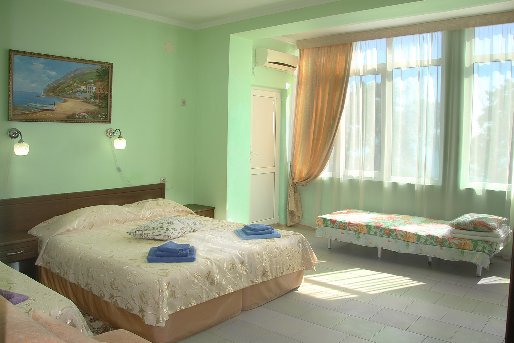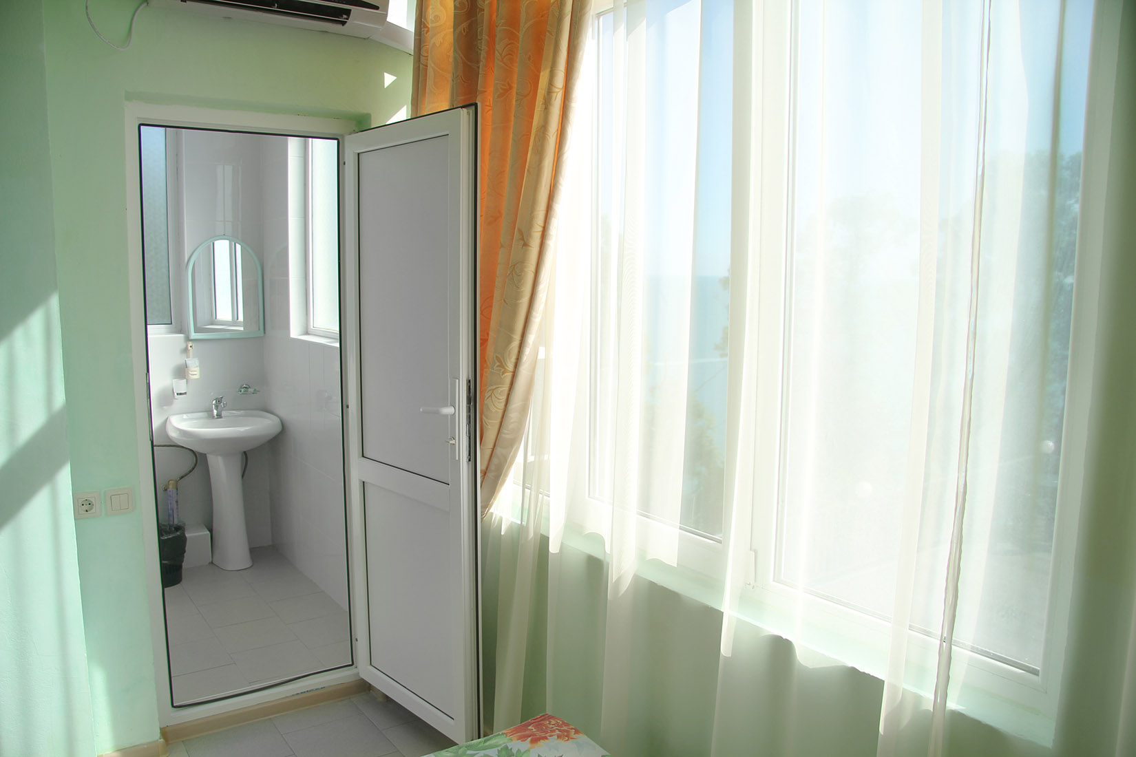 Номера с ванными комнатами оснащены душем. Из обустройства – мебель и спутниковое телевидение, холодильник и сплит-кондиционирование. В каждом номере можно организовать дополнительное место. Всего в пансионате 69 номеров.