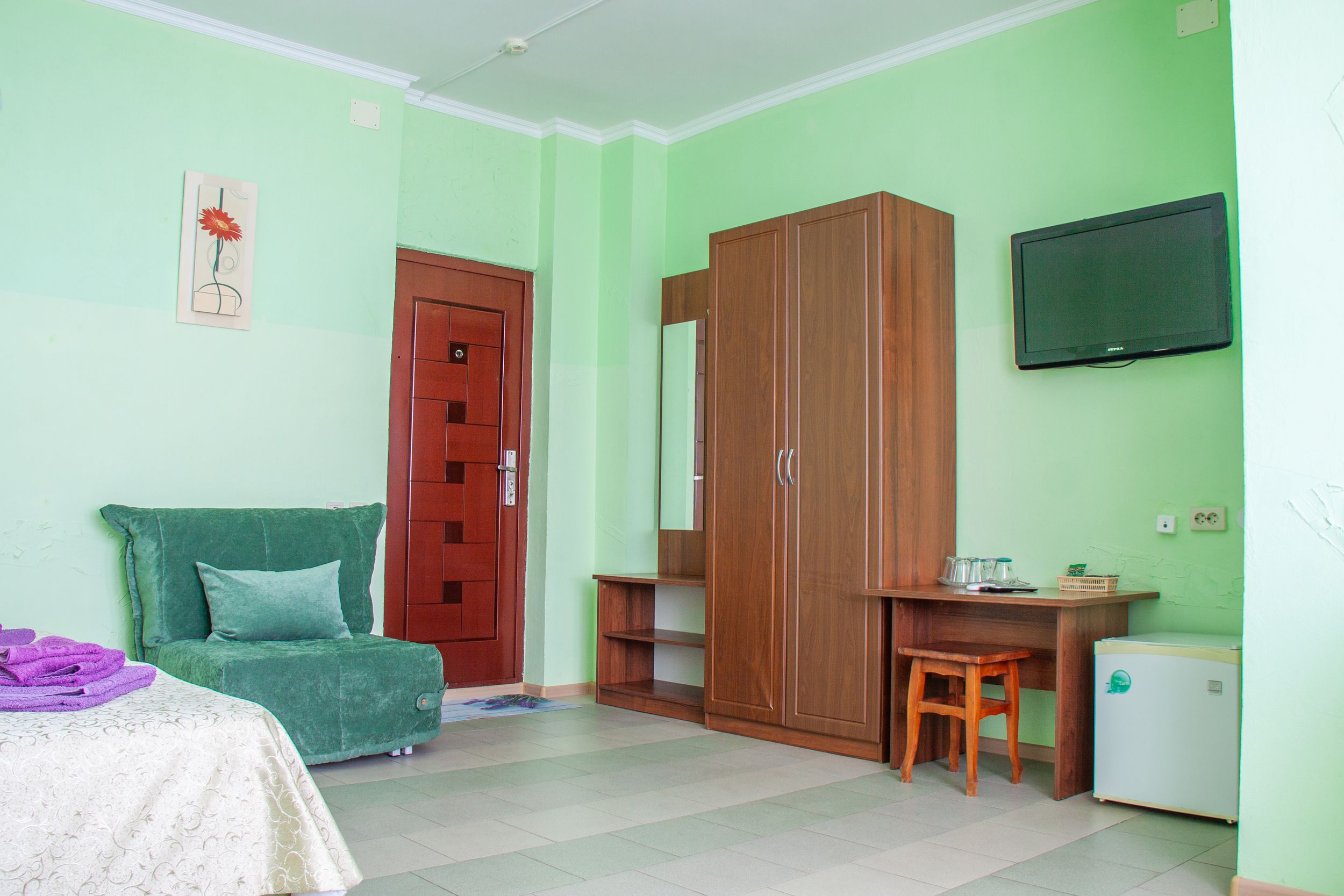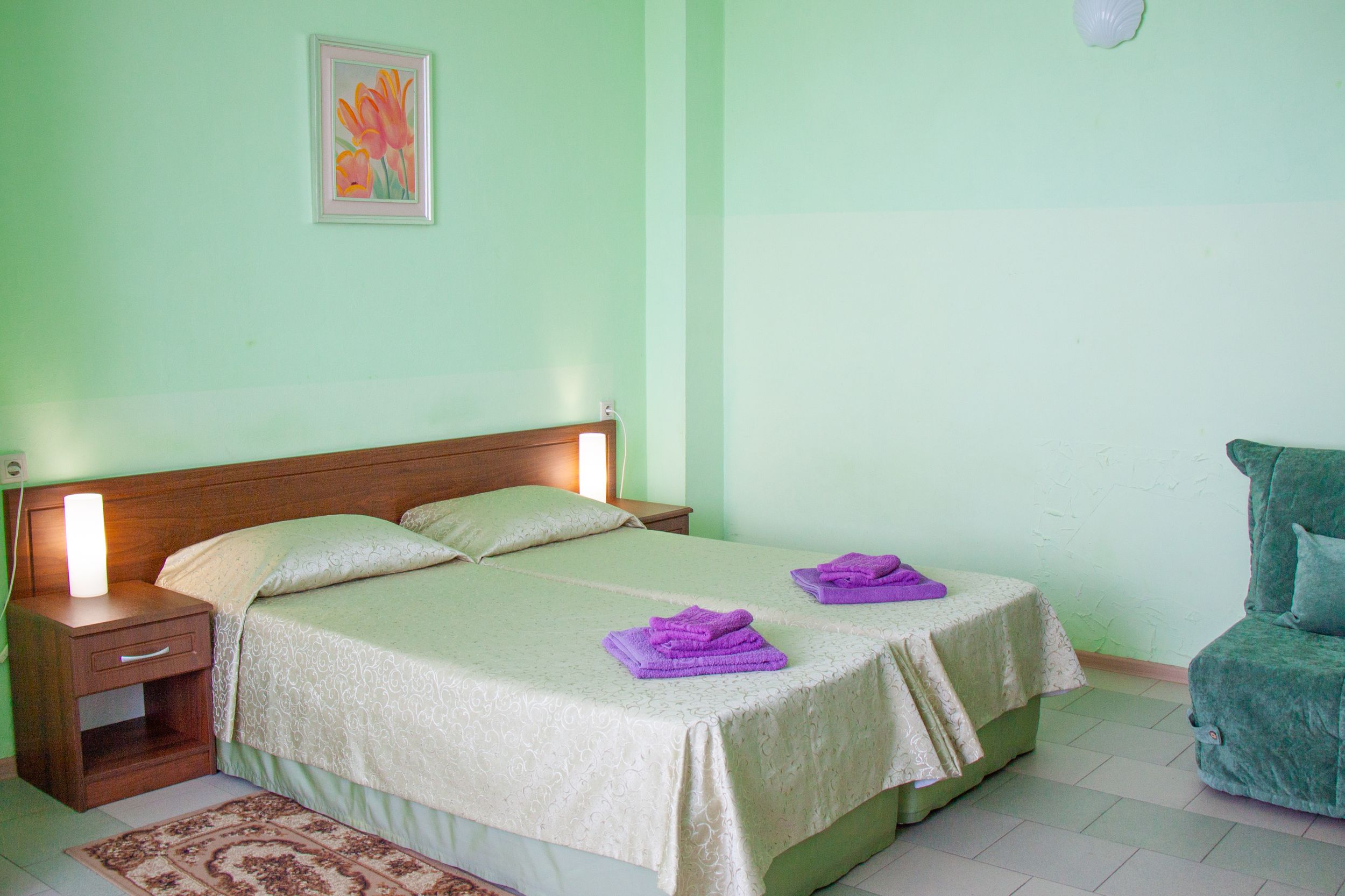 Wi-Fi бесплатно: ; смена полотенец: 1 раз в 3 дня; смена постельного белья: 1 раз в 3 дня; уборка номера: ежедневно;