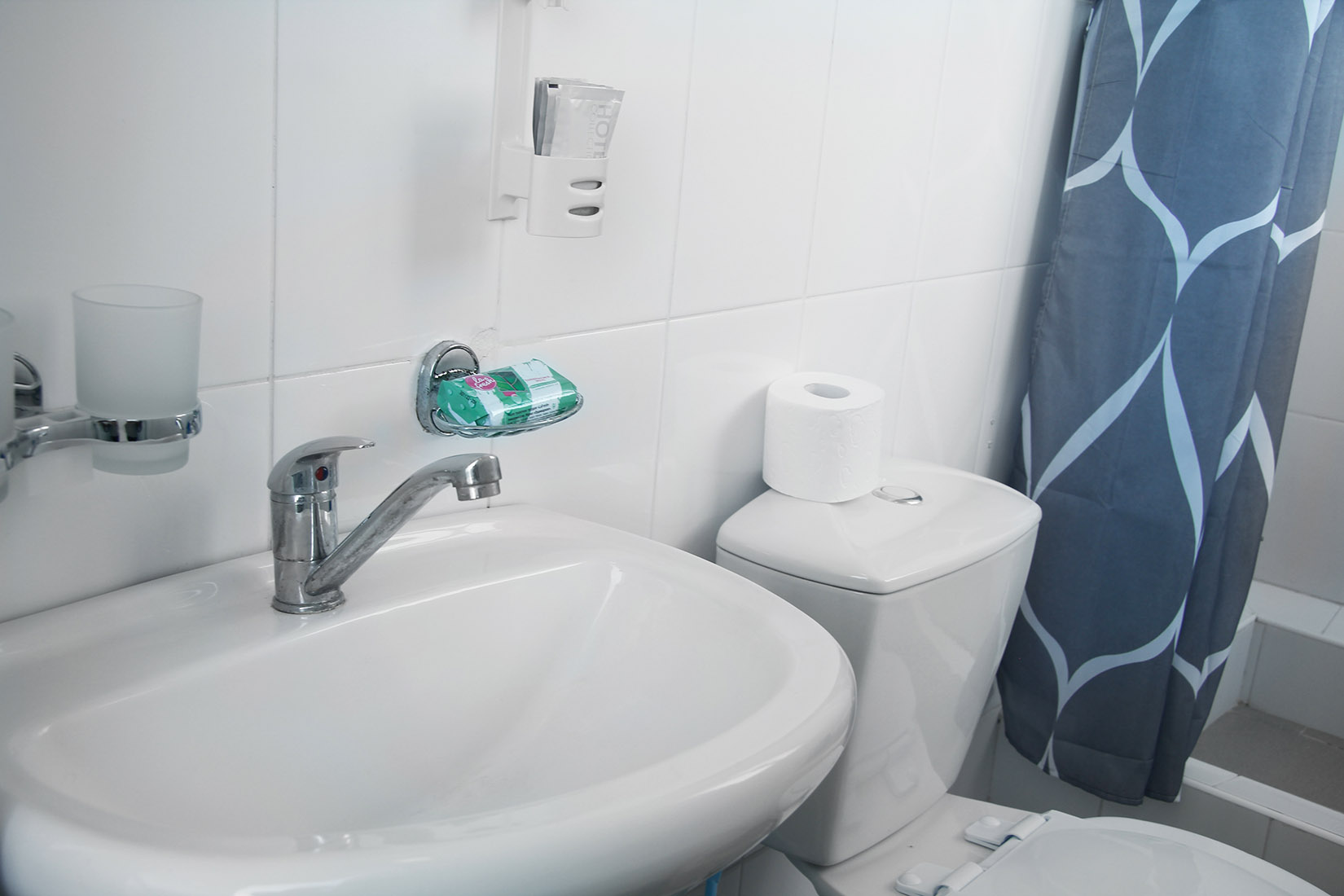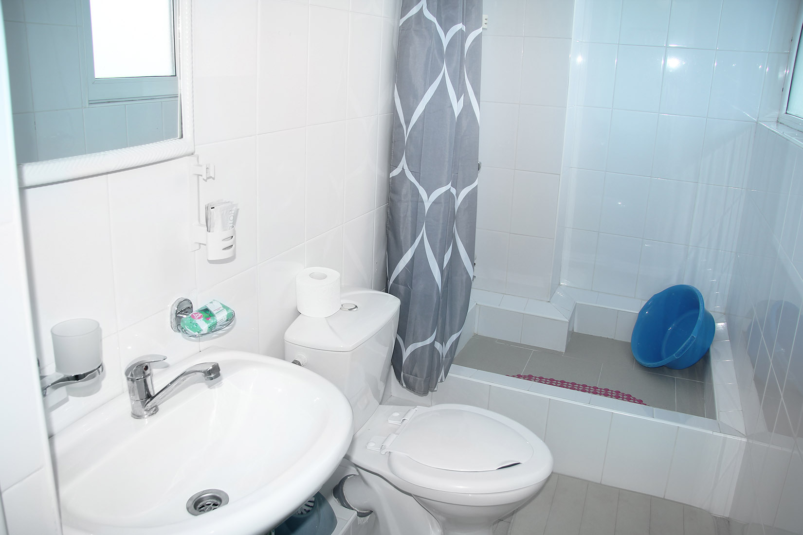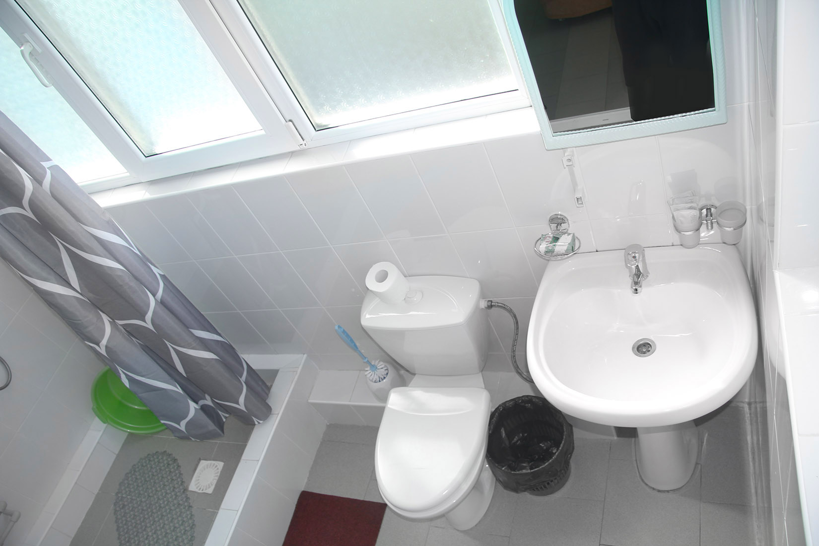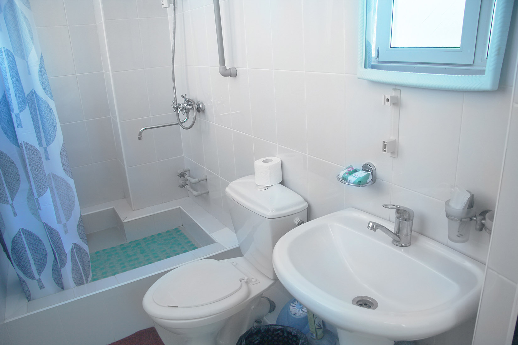 с душем (поддон): ; туалетные принадлежности: ; фен: ;