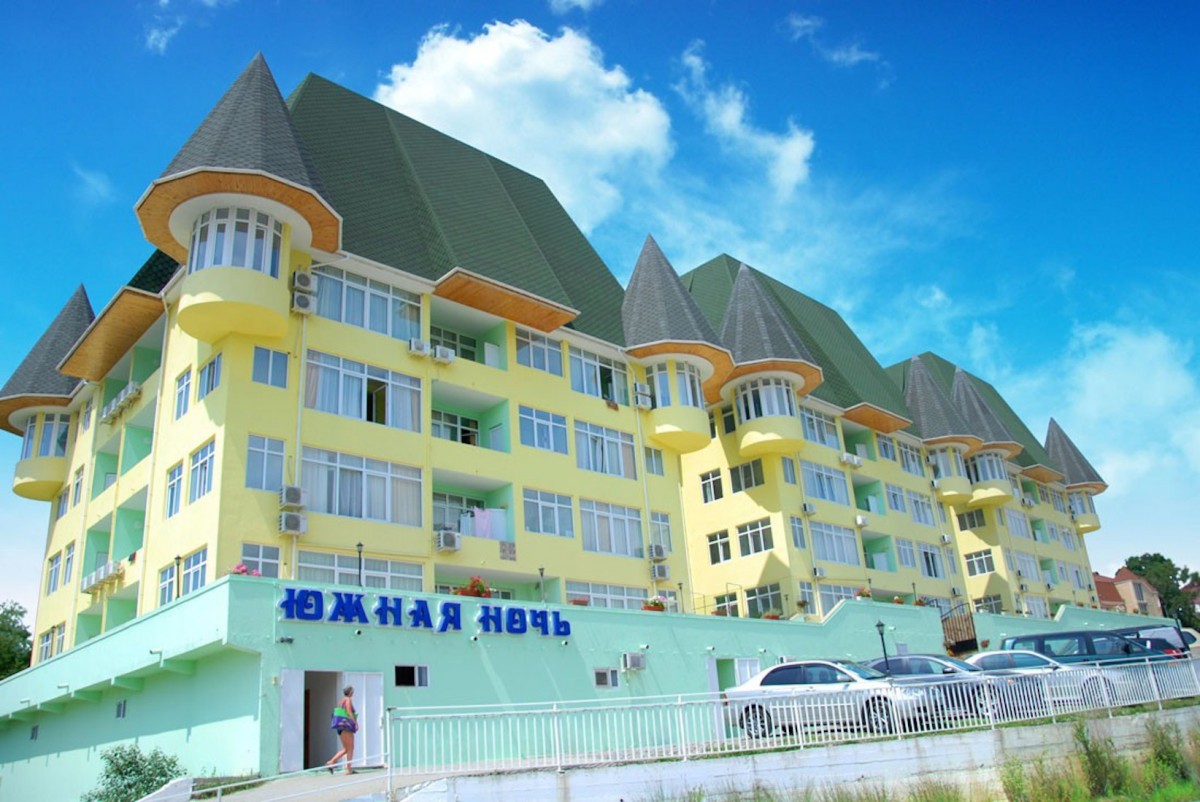 Пансионат «Южная ночь» расположена в стороне от автотрасс, чтобы шум машин не беспокоил отдыхающих. А вот городской мелкогалечный пляж – близко, в 100 метрах. Он оборудован зонтами и шезлонгами.Период работы: в период