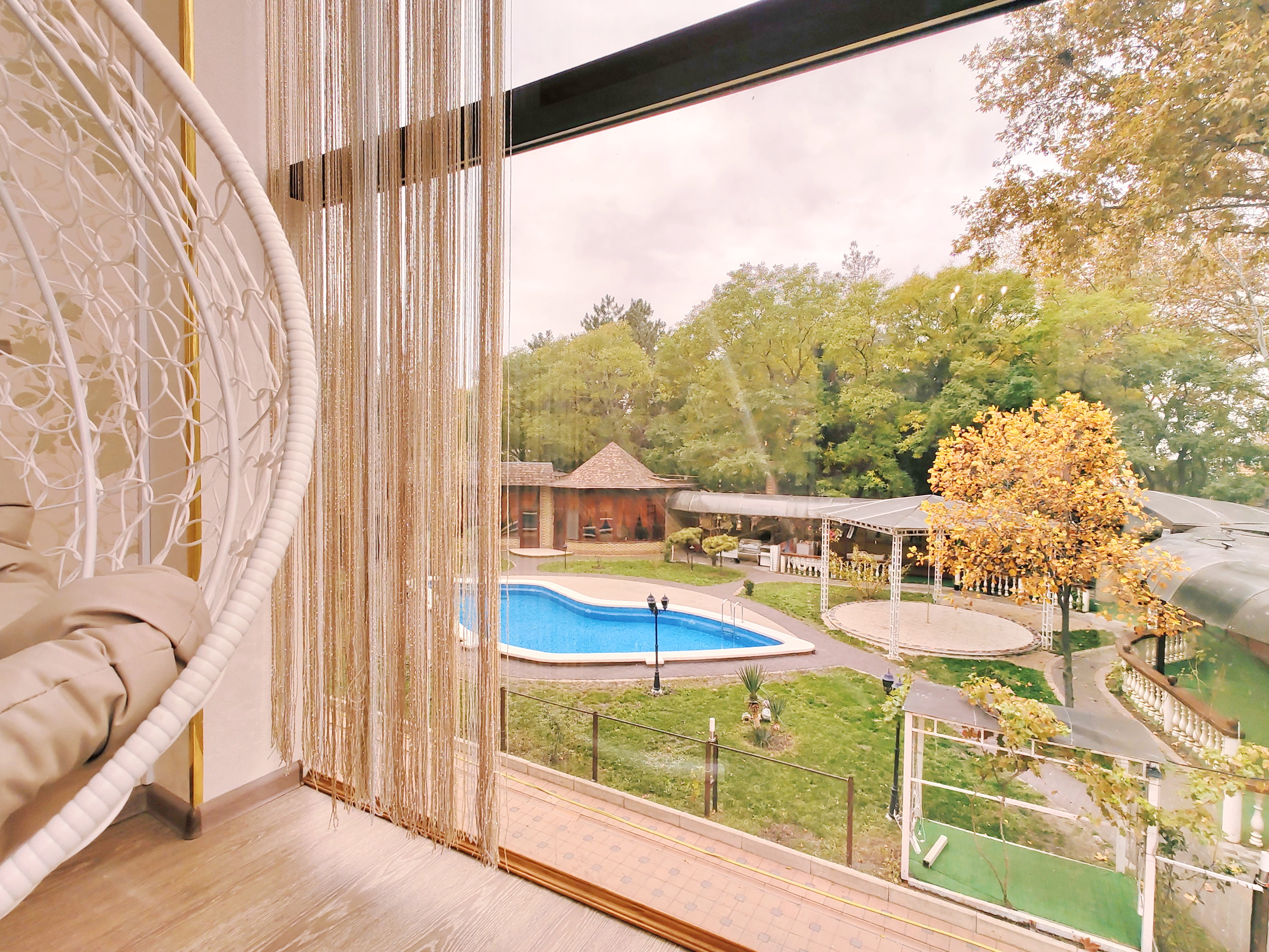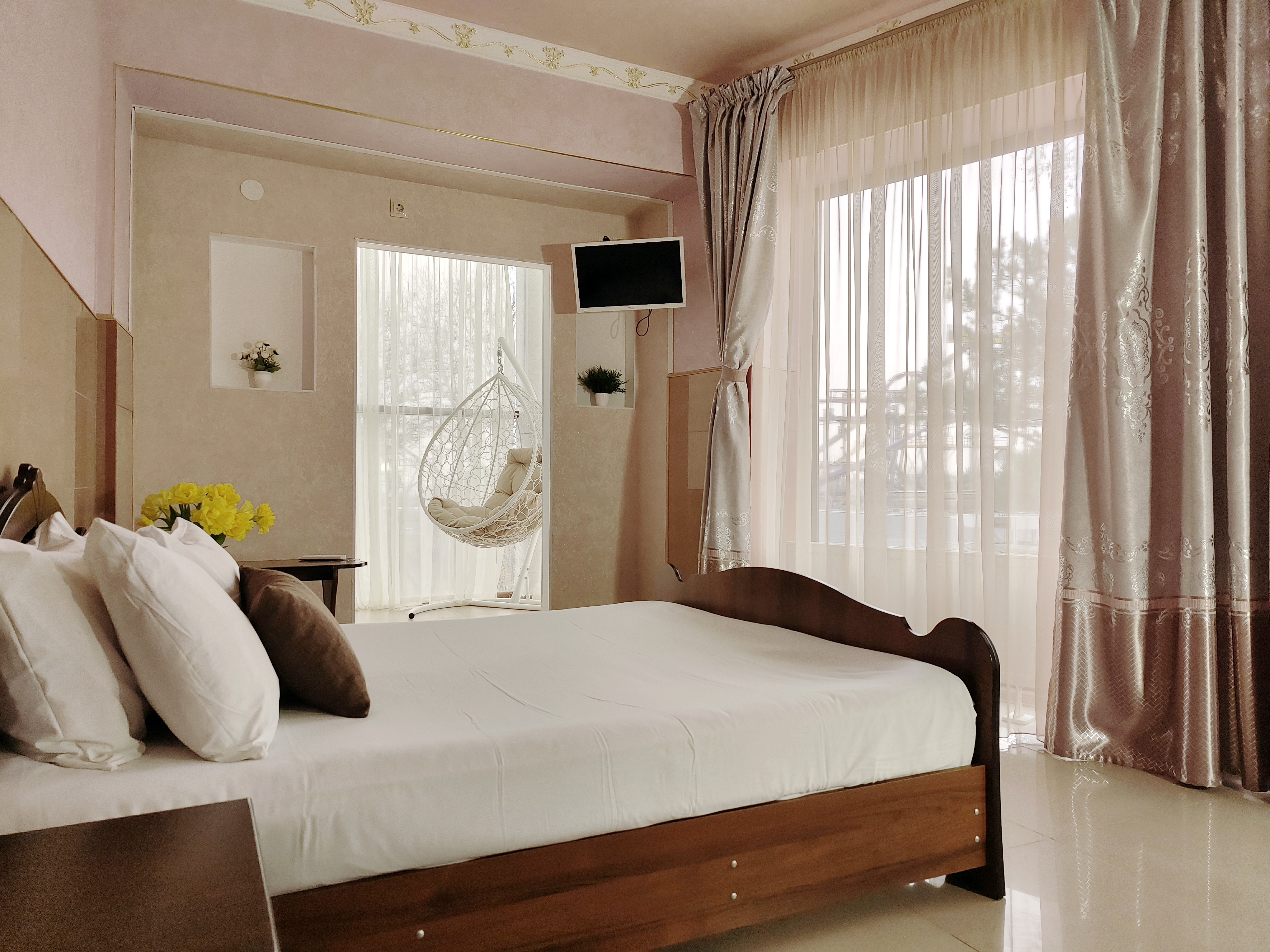Номера оснащены современными телевизорами с плоским экраном и доступом к спутниковым каналам. В отдельных апартаментах предусмотрена уютная зона отдыха с гостиным уголком. Каждый номер имеет собственную ванную комнату, где установлены душ или ванна, а также предоставляются фен и туалетные принадлежности. Беспроводной интернет Wi-Fi доступен во всех помещениях и на всей территории отеля. Для гостей оборудована беседка с мангалом, где можно приготовить шашлык. Рядом с бассейном расположен бар, предлагающий освежающие напитки, закуски и салаты из свежих морепродуктов. Также функционирует ресторан с разнообразием блюд и напитков.