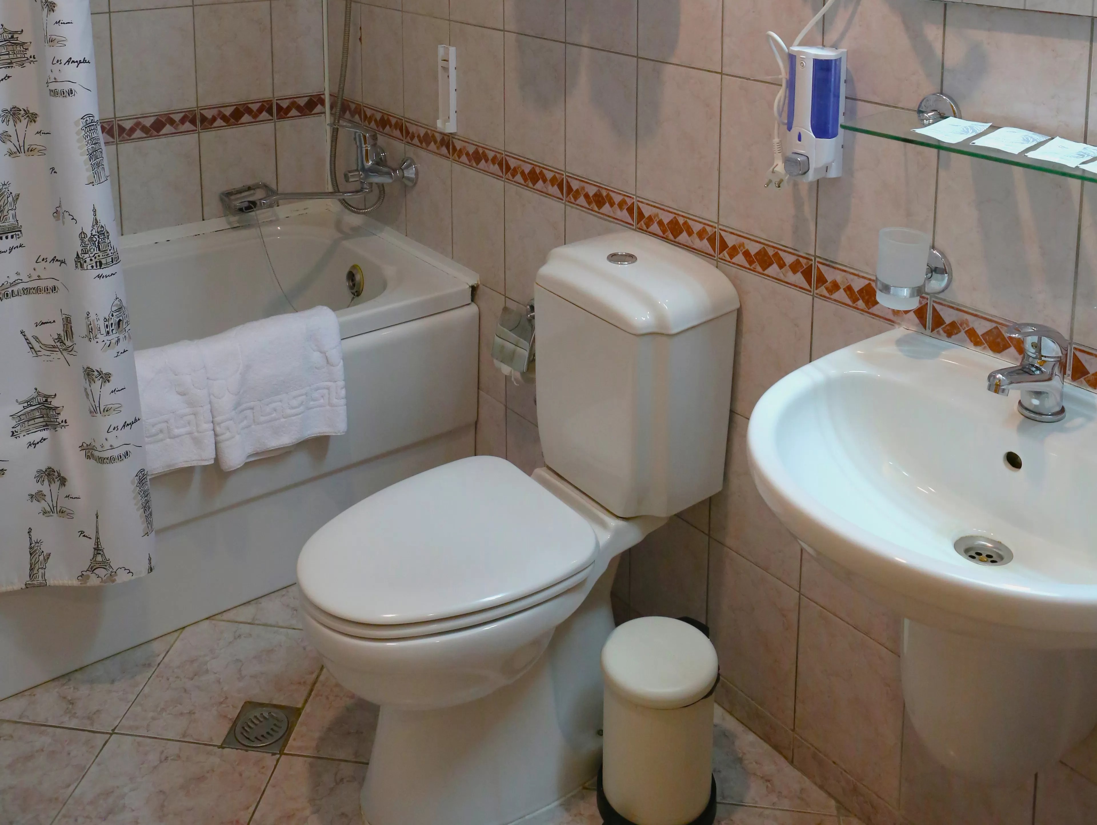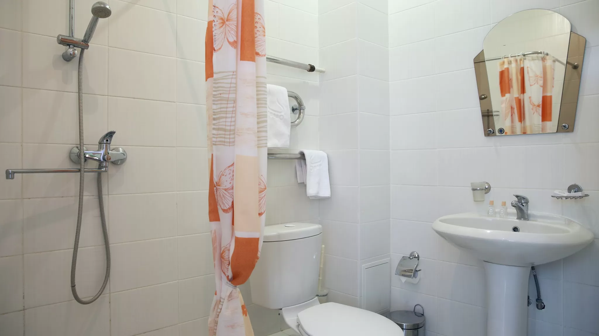 с душевой кабиной: ; туалетные принадлежности: ; фен: ;