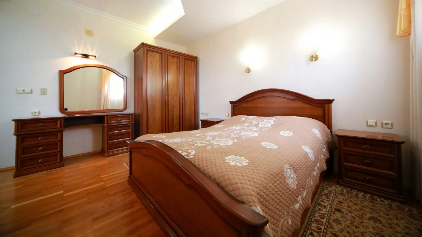 диван: ; зеркало: ; кресло: ; кровать двуспальная: ; прикроватные тумбочки: ; стол: ; столик журнальный: ; стул: ; шкаф: ;